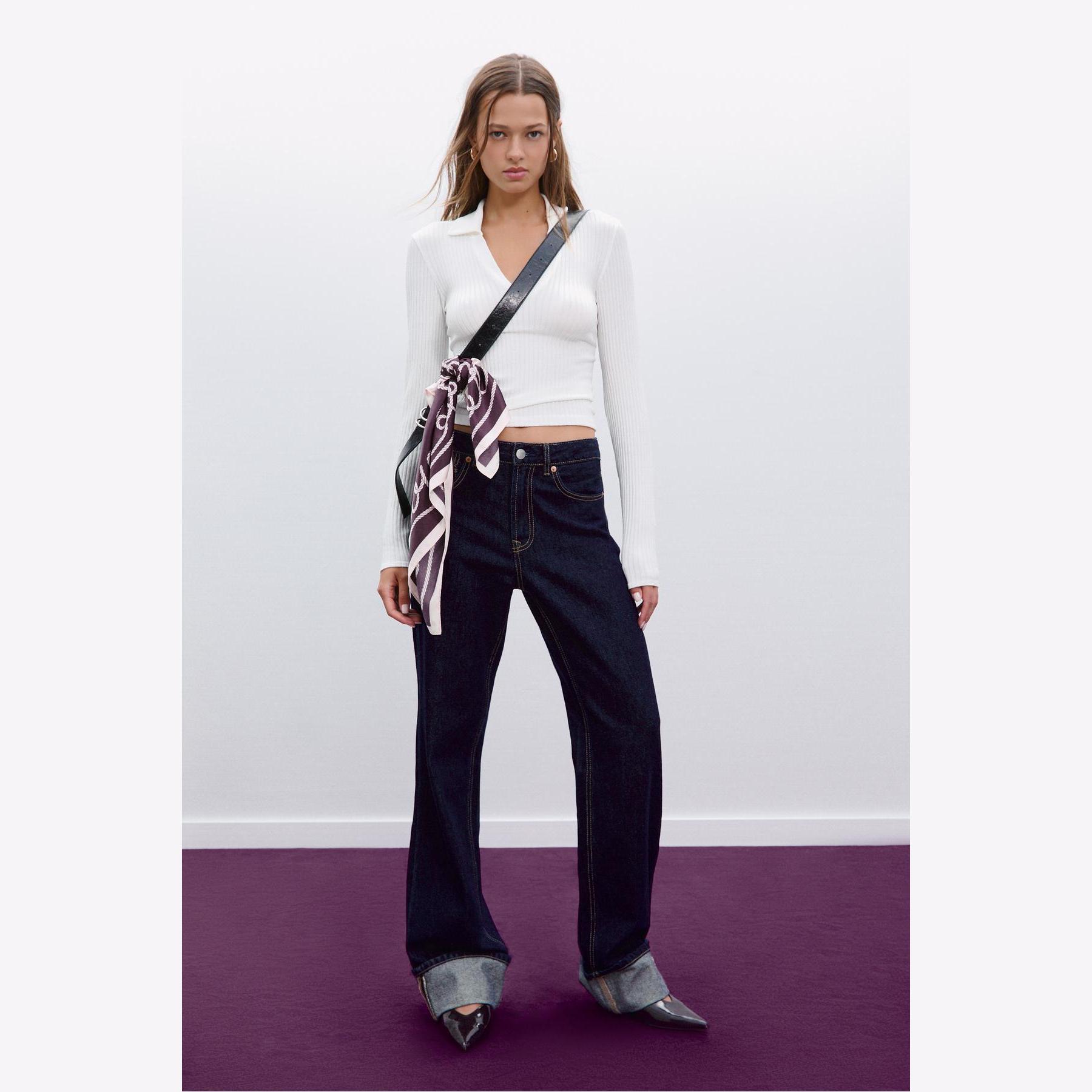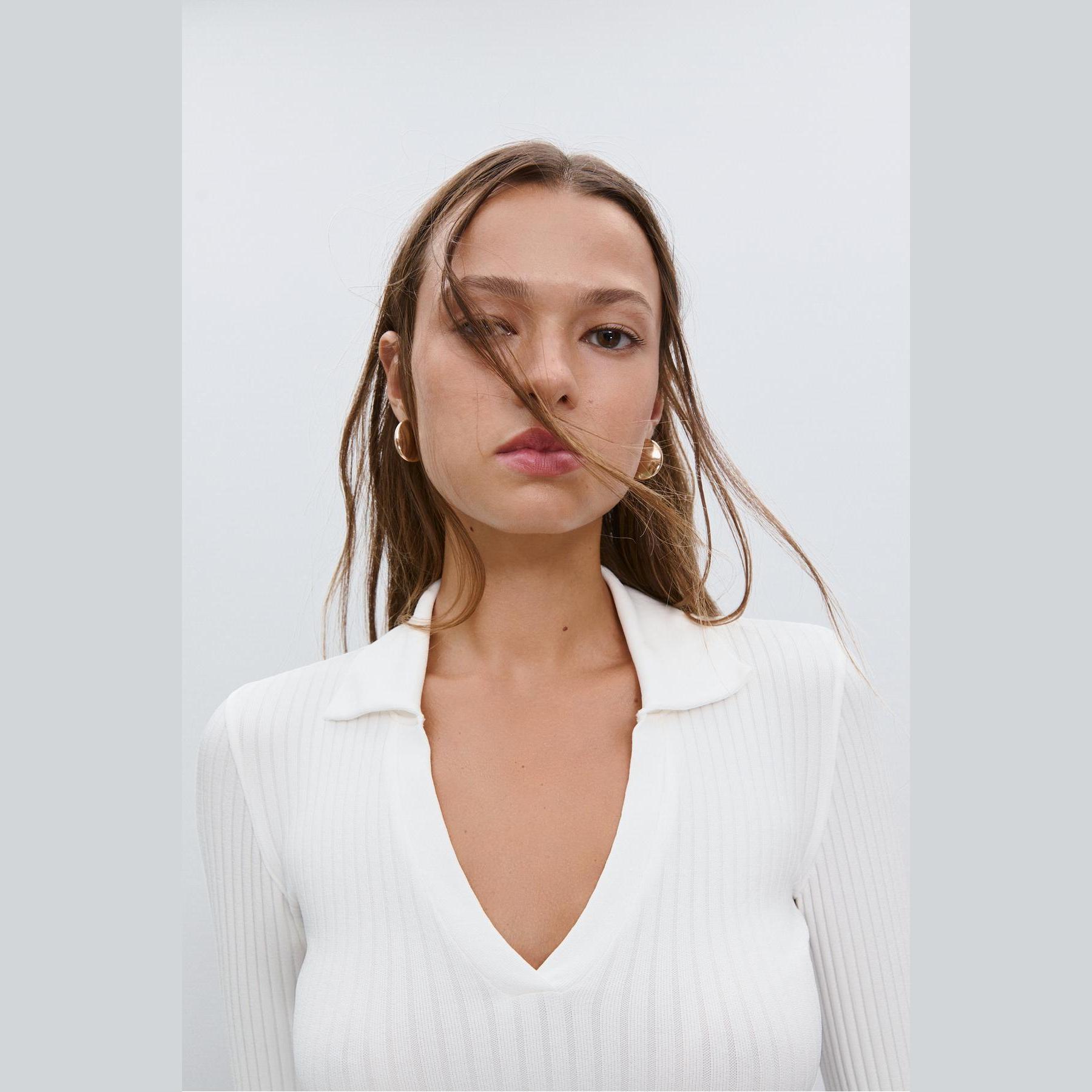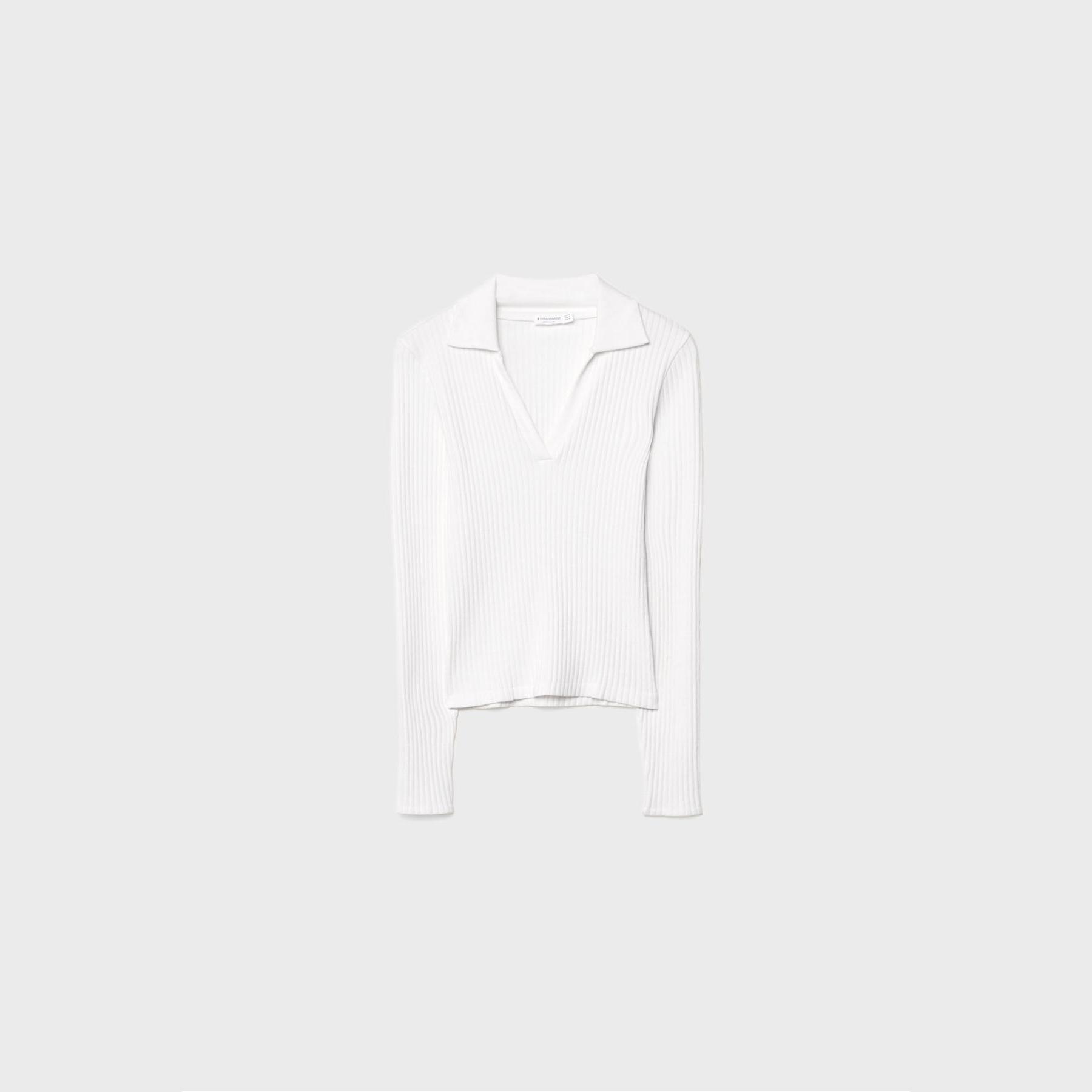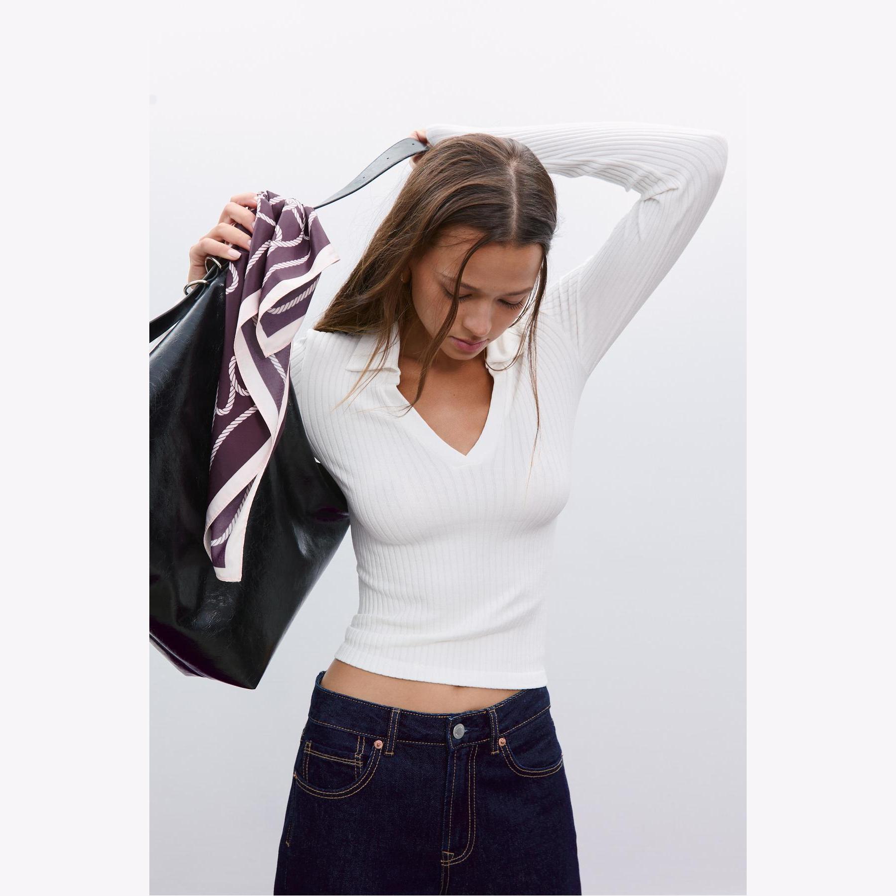 تيشيرت أنيق من Stradivarius بلون إكرو، مصنوع من خامة دكيشsiz مرنة بدون خياطة، بتصميم Regular Fit وياقة بولو، مزود بأكمام طويلة وقصة ناعمة تبرز القوام، يمنحك إطلالة رياضية وعصرية مثالية للاستخدام اليومي أو أثناء الحركة.