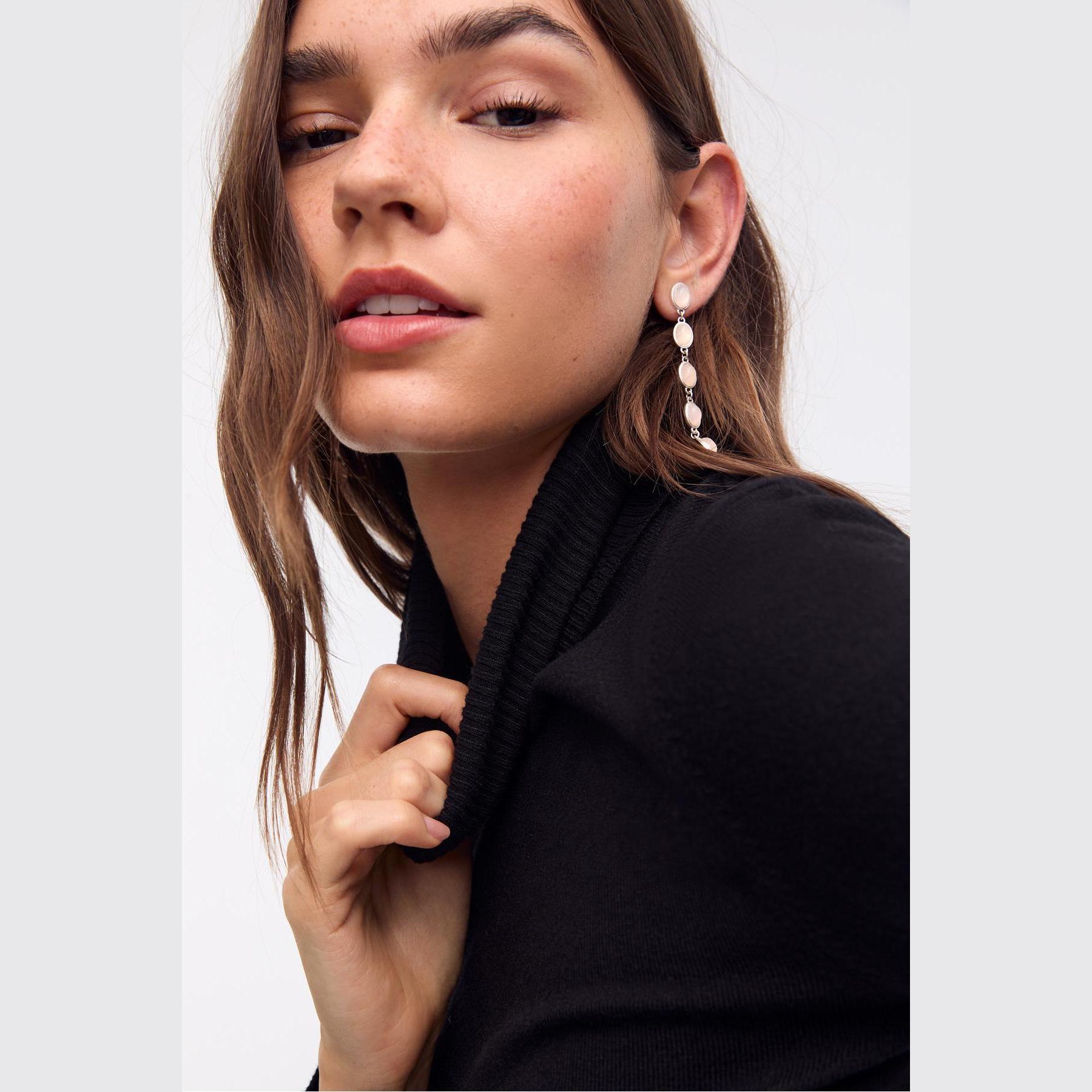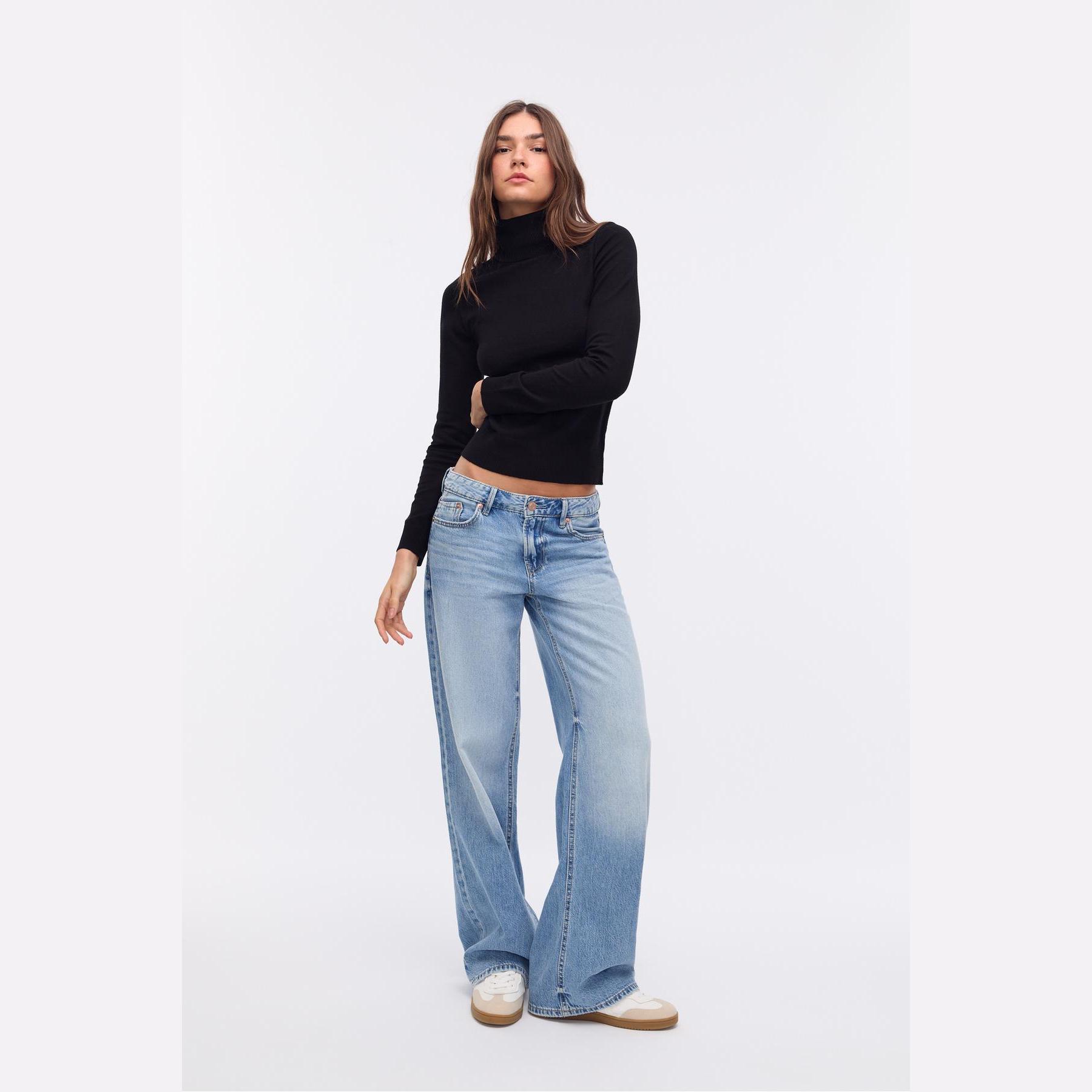 كنزة أنيقة من Stradivarius بلون أسود، مصنوعة من خامة تريكو ناعمة ومريحة، بتصميم Slim Fit وياقة عالية، مزودة بأكمام طويلة وقصة ضيقة تبرز القوام، تمنحك إطلالة دافئة وعصرية مثالية للاستخدام اليومي أو المكتبي.
