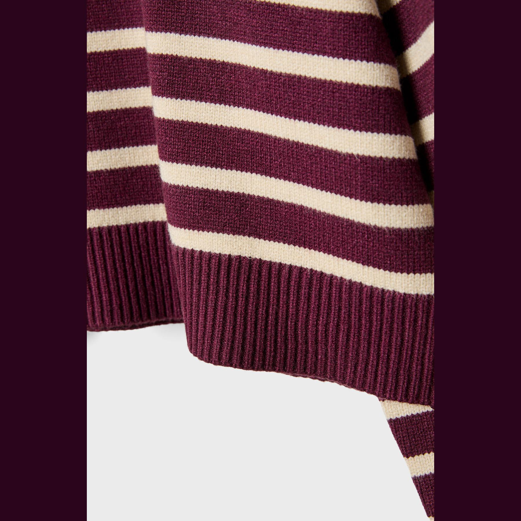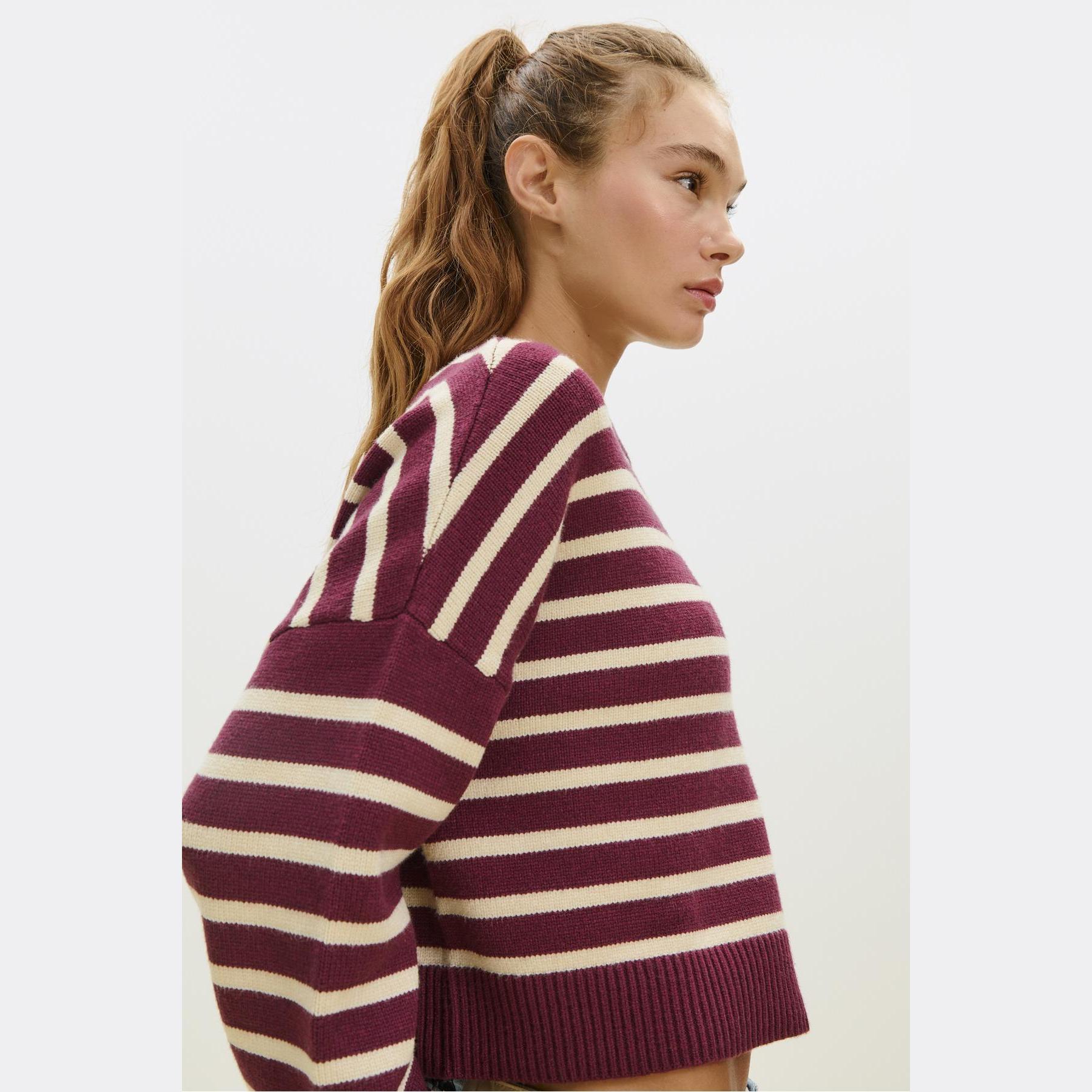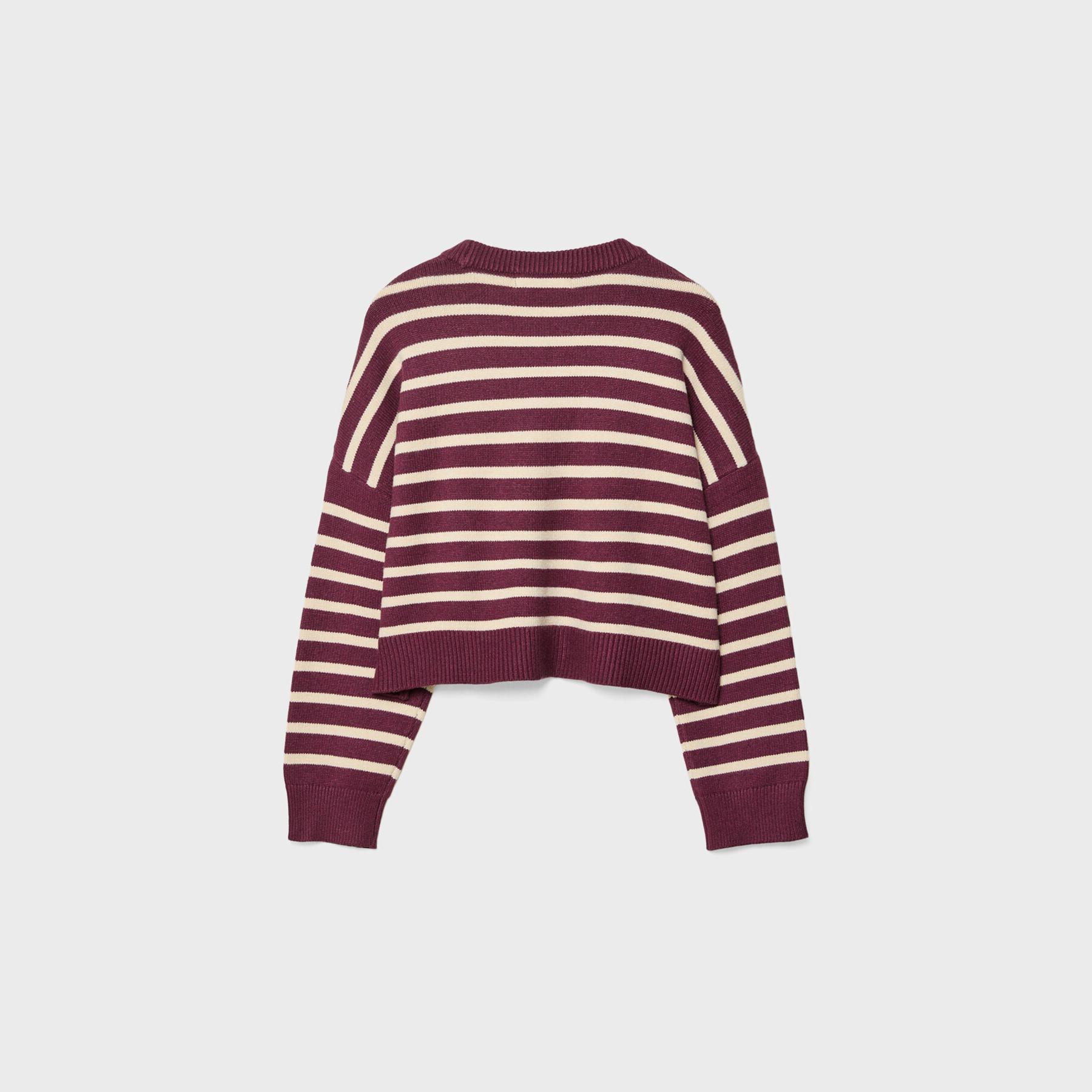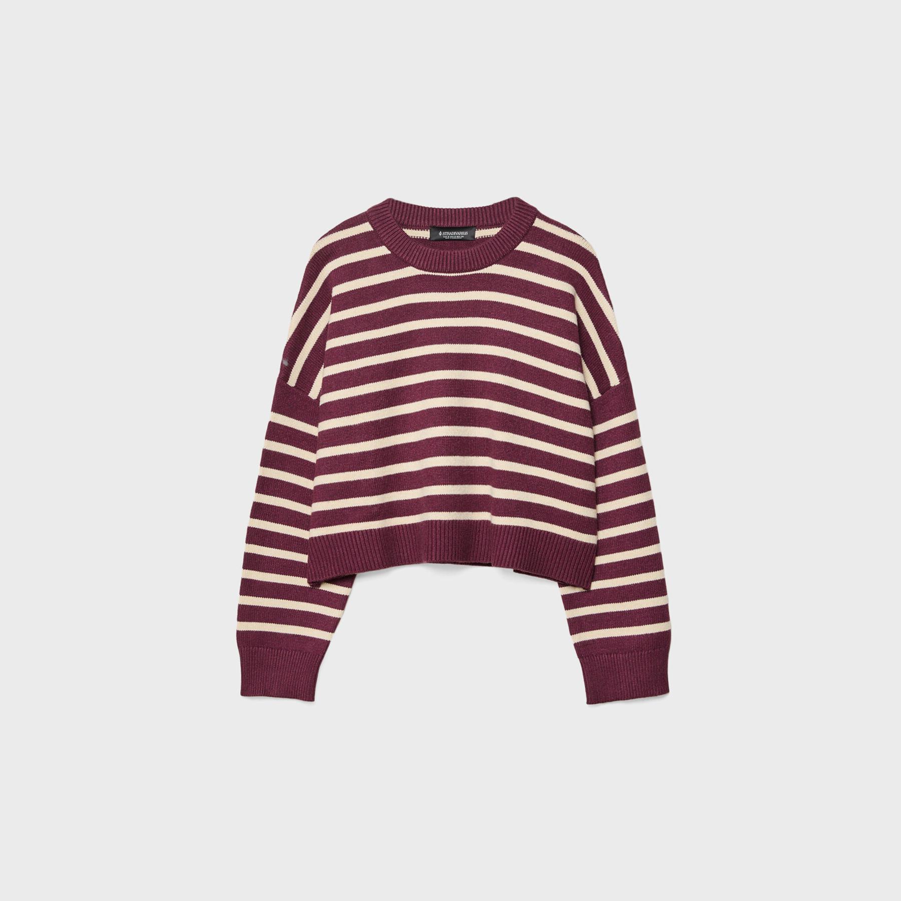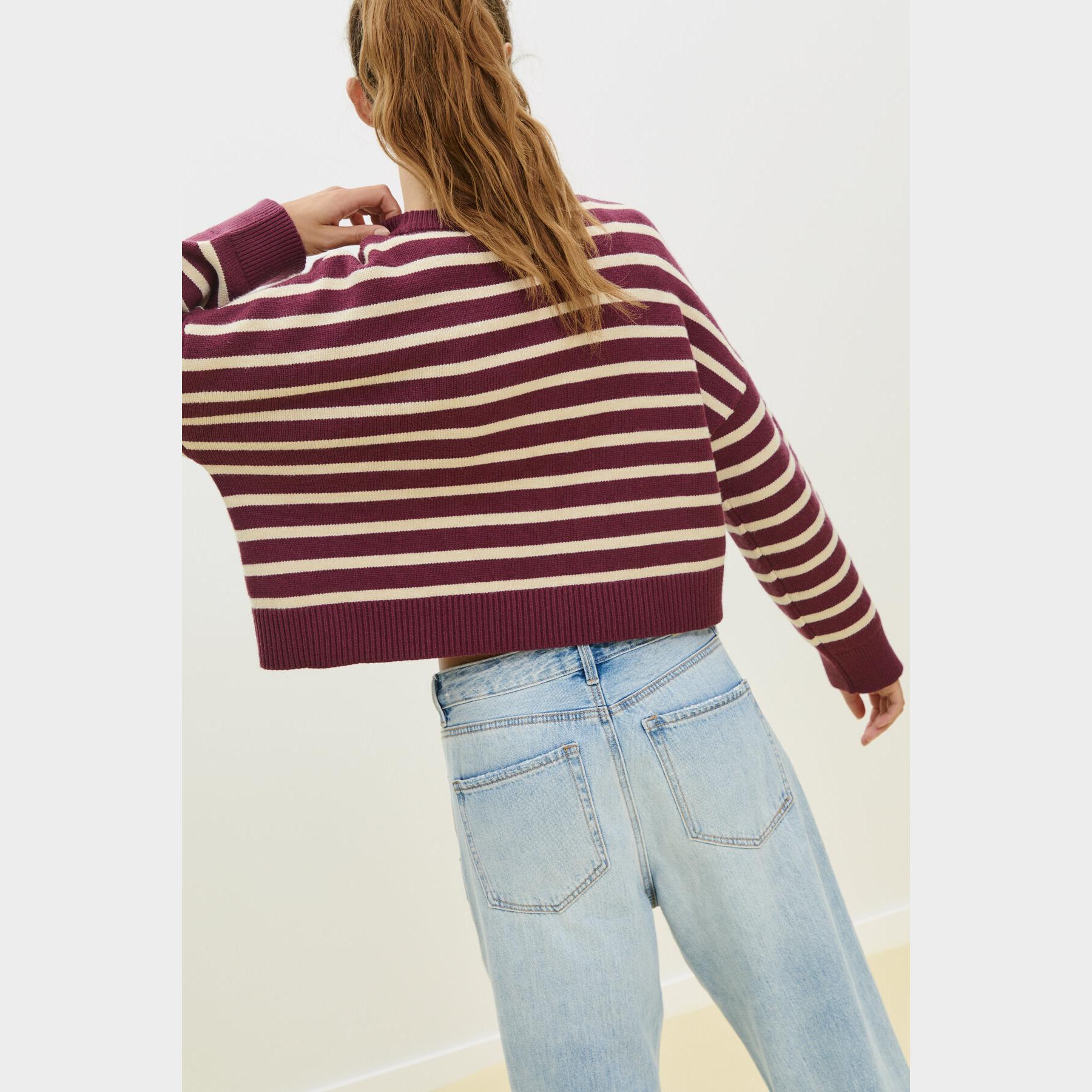 كنزة تريكو قصيرة بنقشة مخططة وياقة مستديرة – بنفسجي من Stradivarius