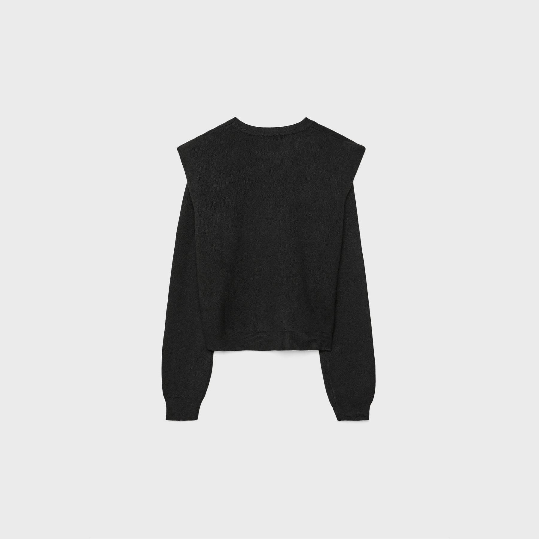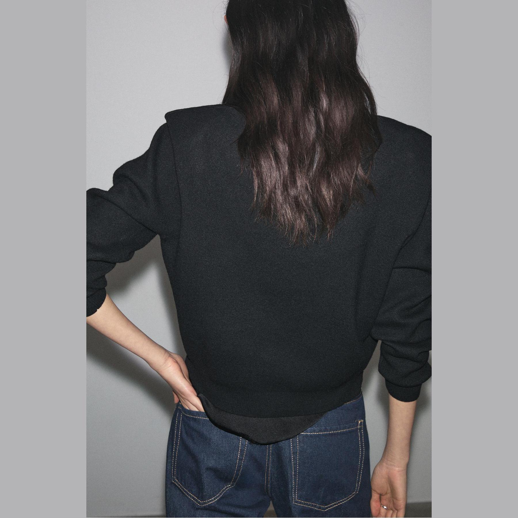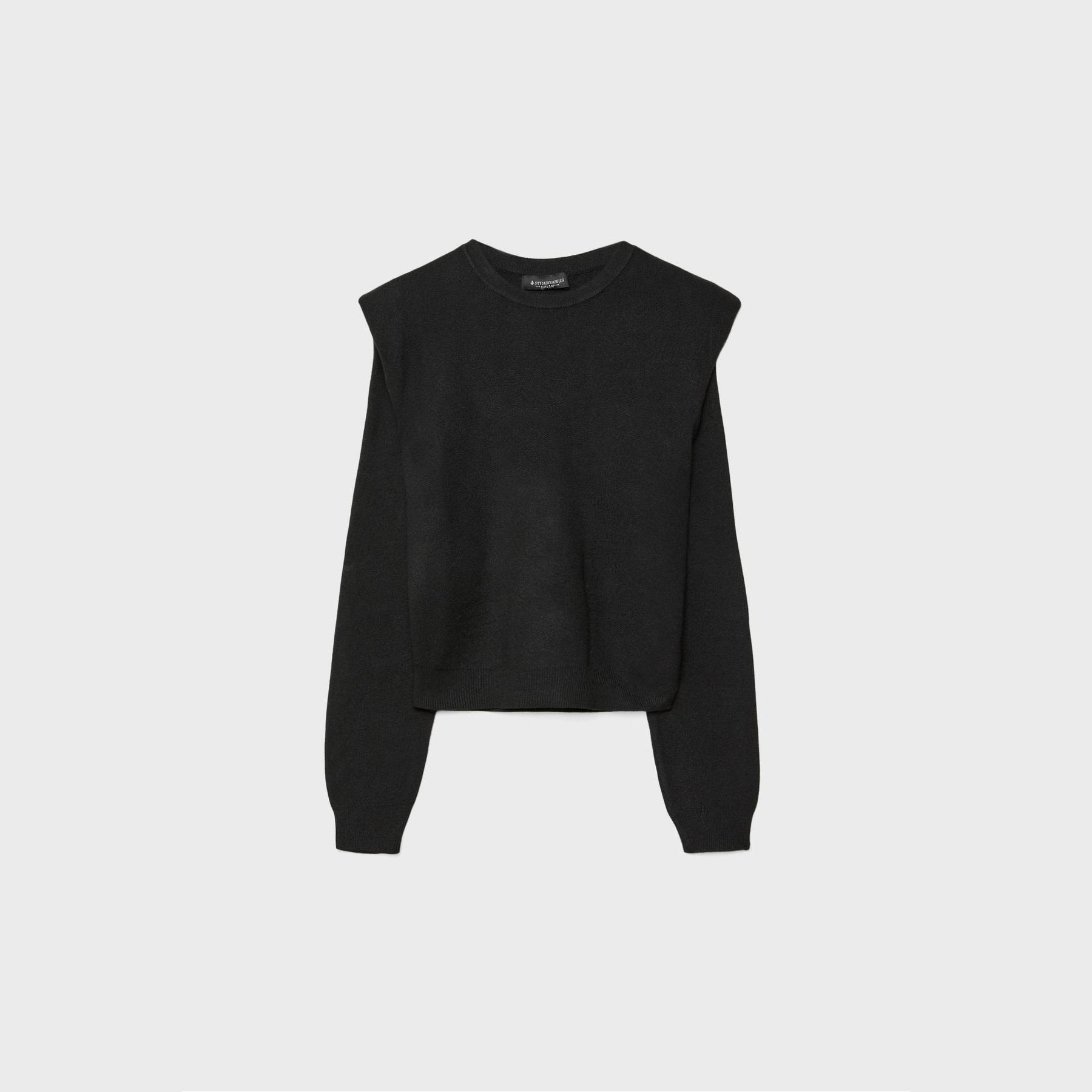 كنزة تريكو بكتف مبطن وياقة مستديرة – أسود من Stradivarius