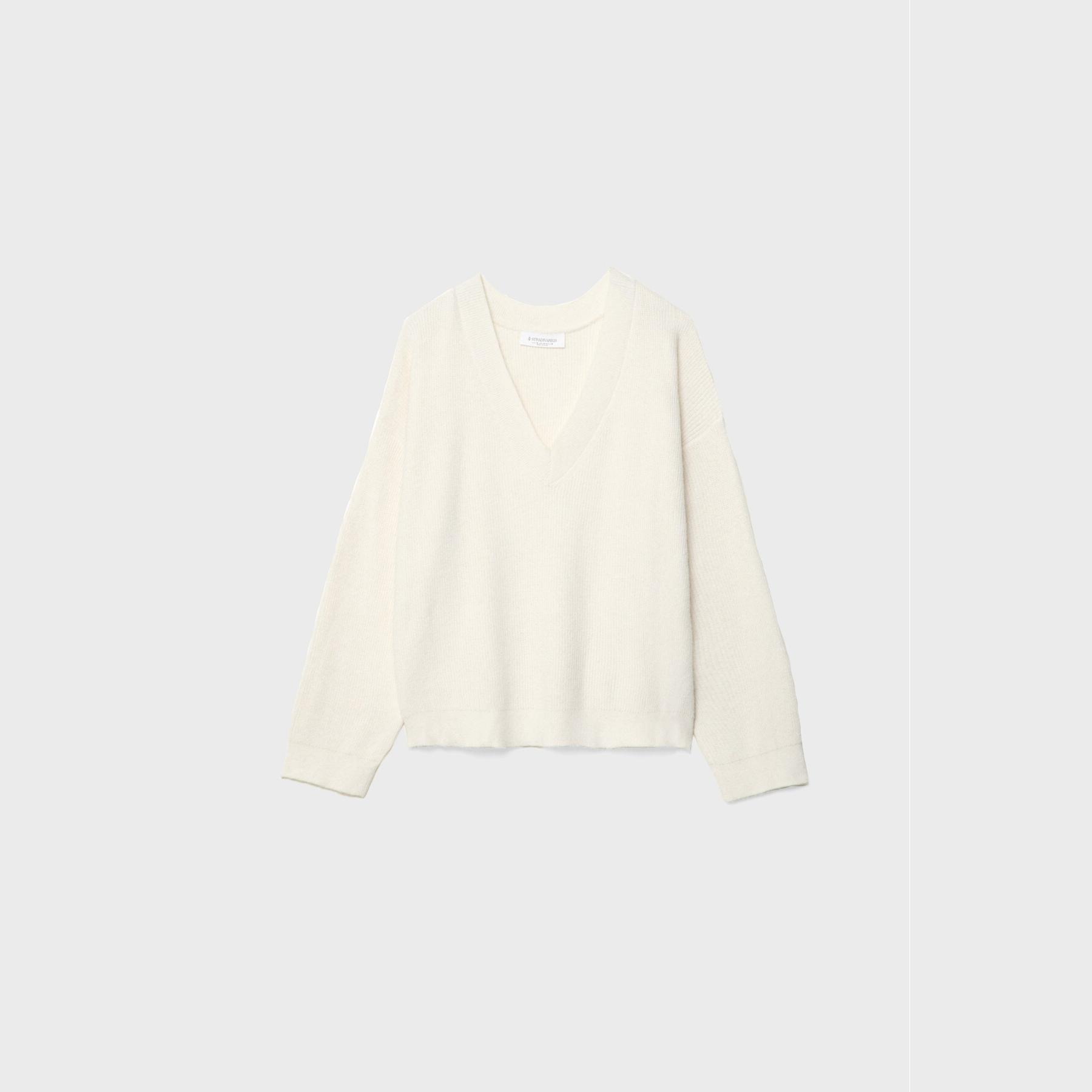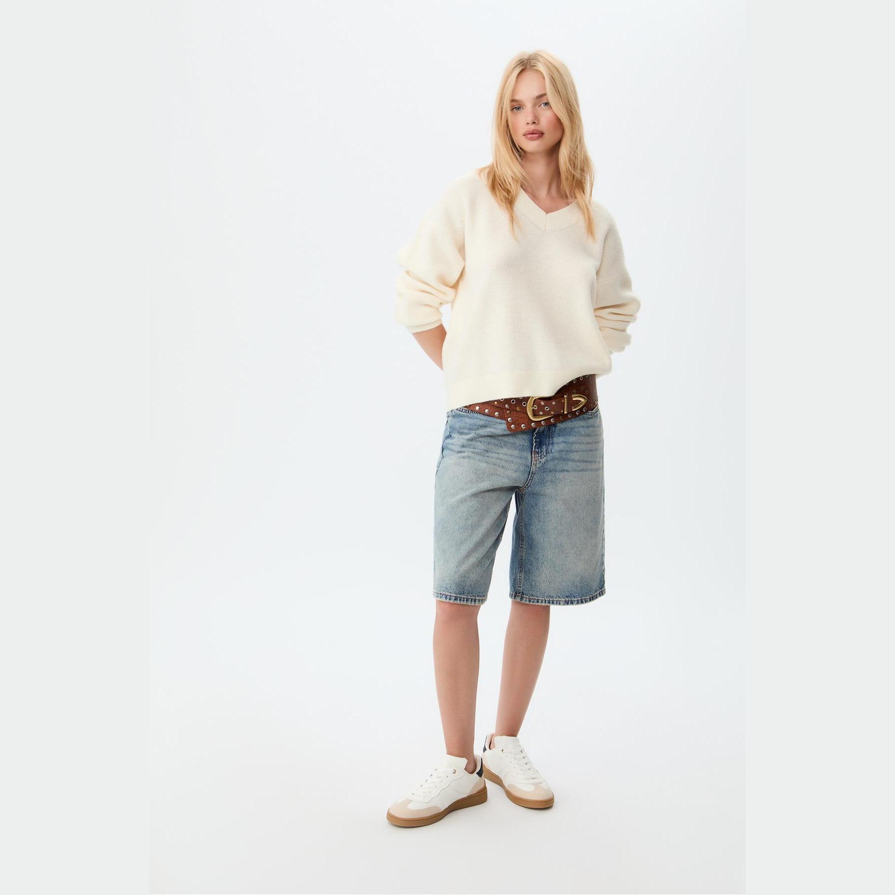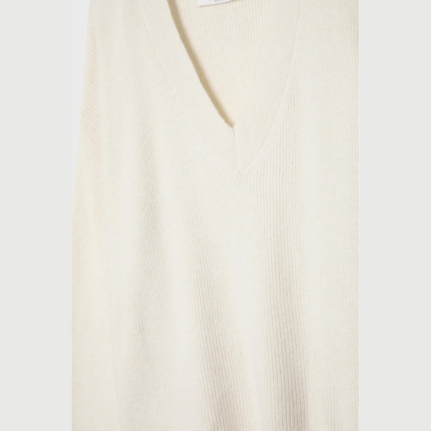 كنزة تريكو بلمسة ملبدة وياقة V – إكرو من Stradivarius