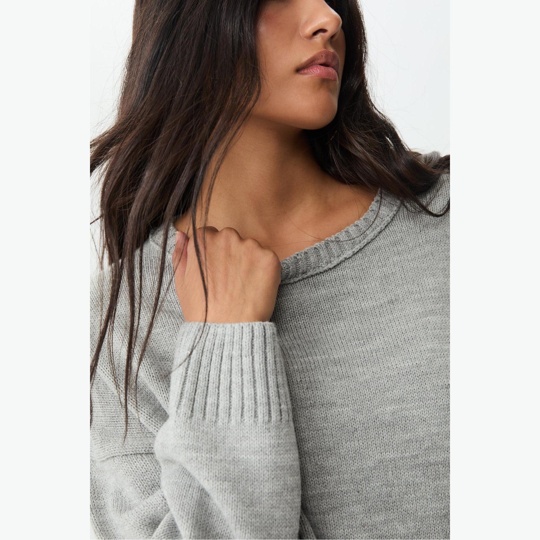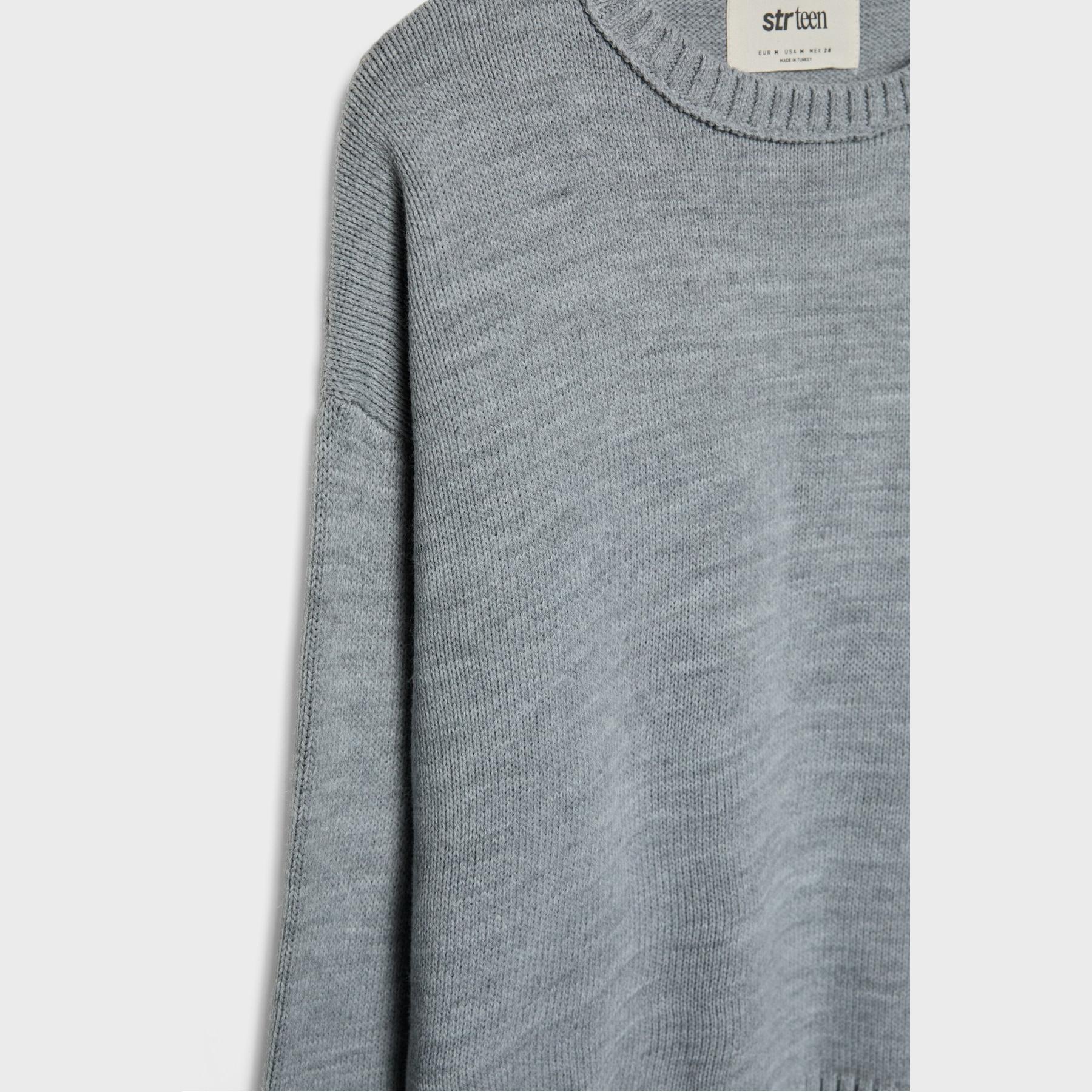 كنزة تريكو بياقة مستديرة – رمادي فاتح من Stradivarius