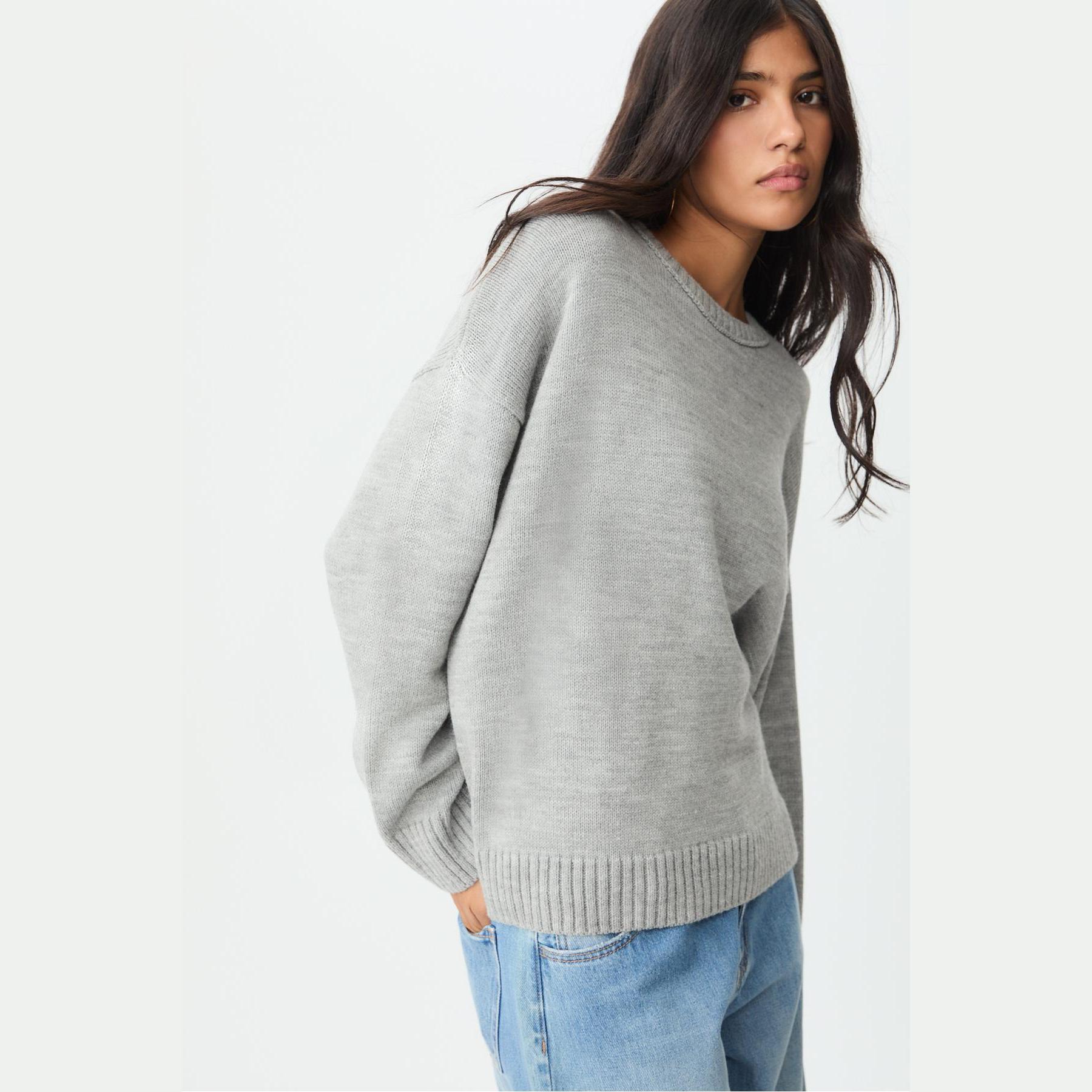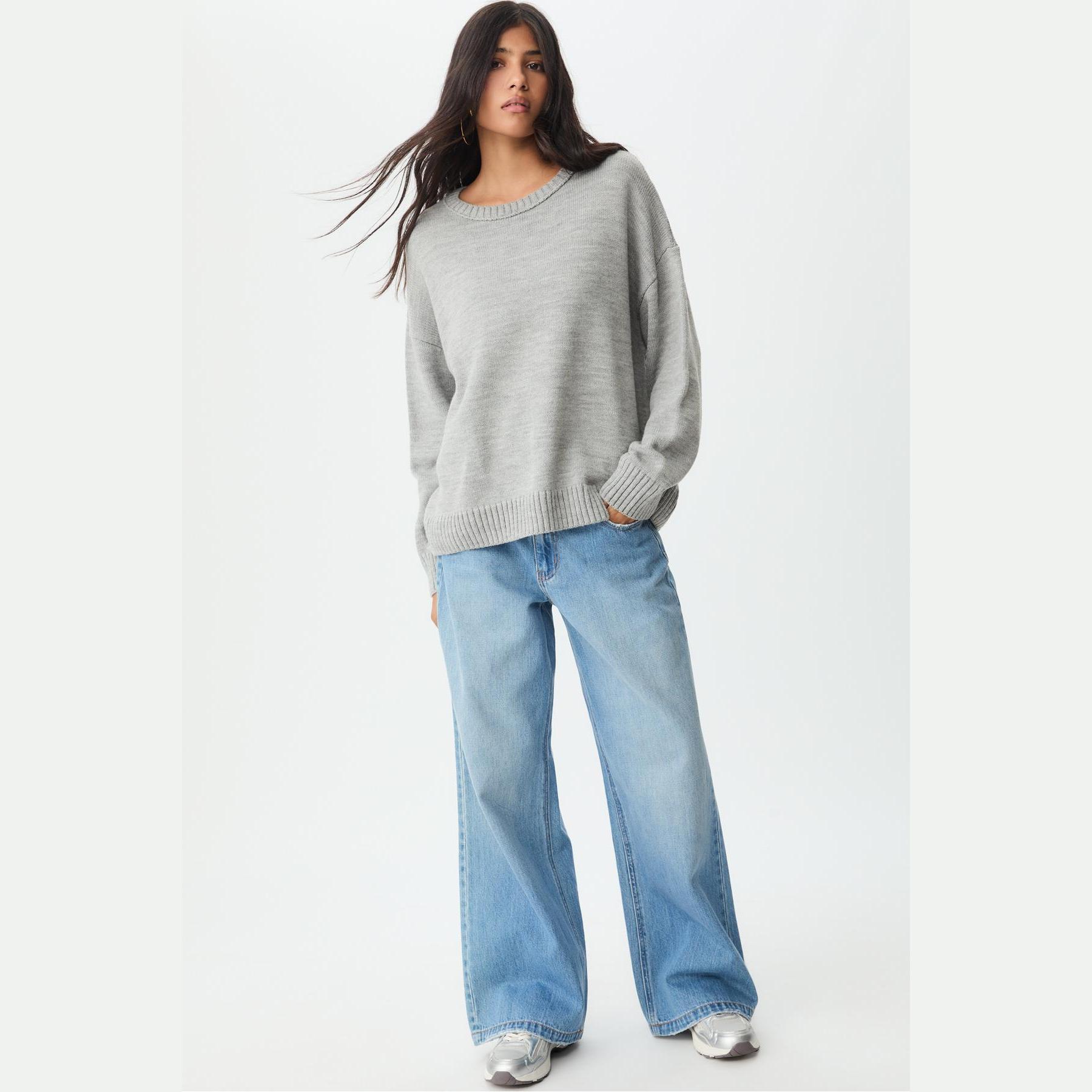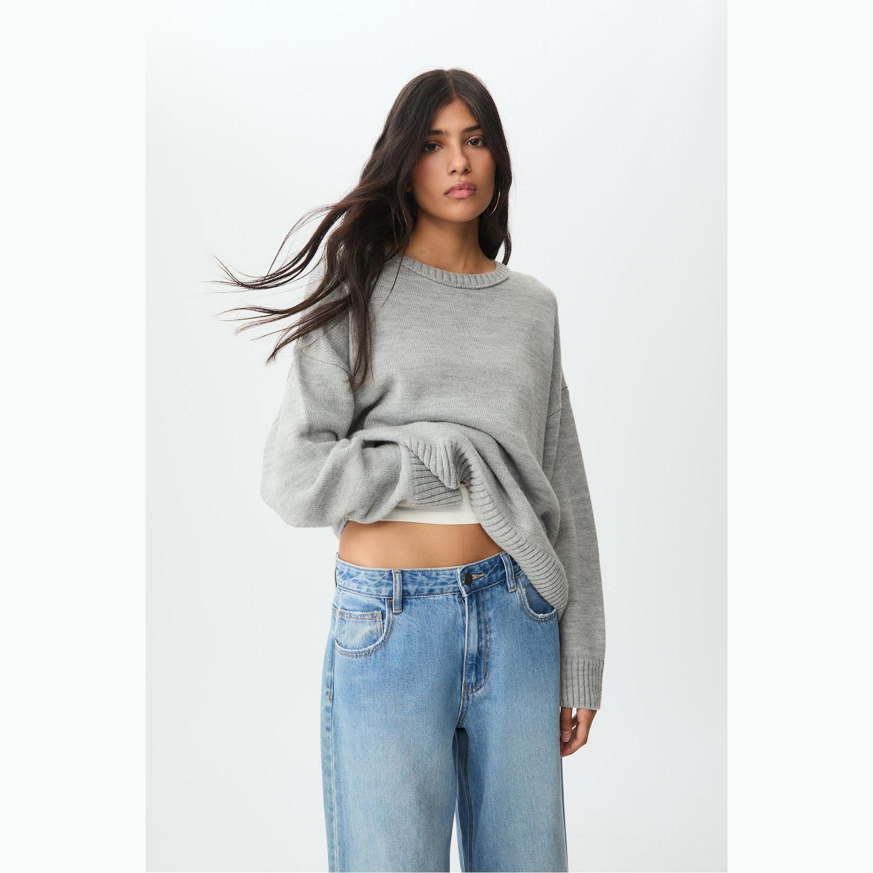 كنزة أنيقة من Stradivarius بلون رمادي فاتح، مصنوعة من خامة تريكو ناعمة 100% أكرليك، بتصميم Comfort Fit وياقة مستديرة، مزودة بأكمام طويلة وأطراف مضلعة، تمنحك إطلالة دافئة وعصرية مثالية للاستخدام اليومي أو الكاجوال.