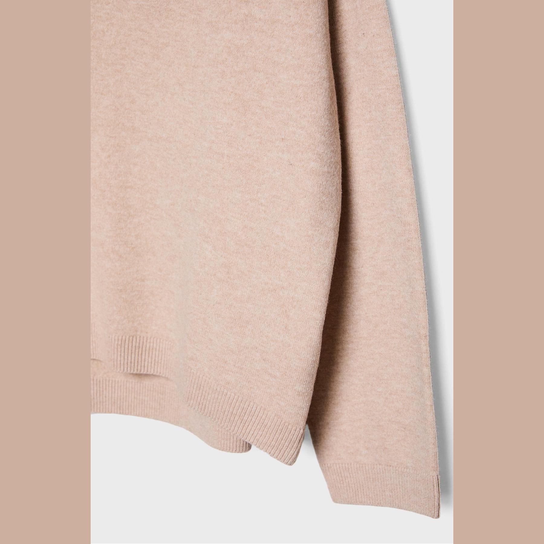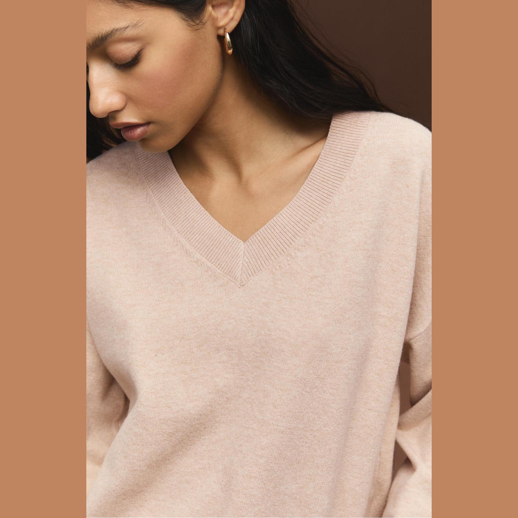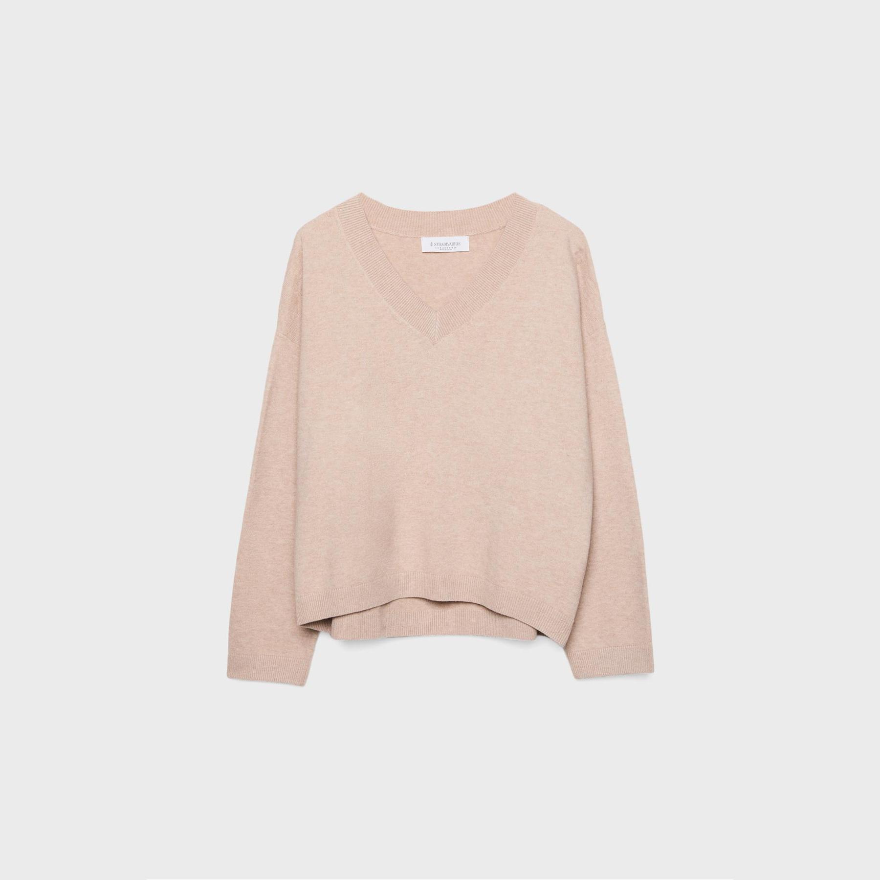 كنزة تريكو ناعمة بلمسة مريحة وياقة V – بيج من Stradivarius