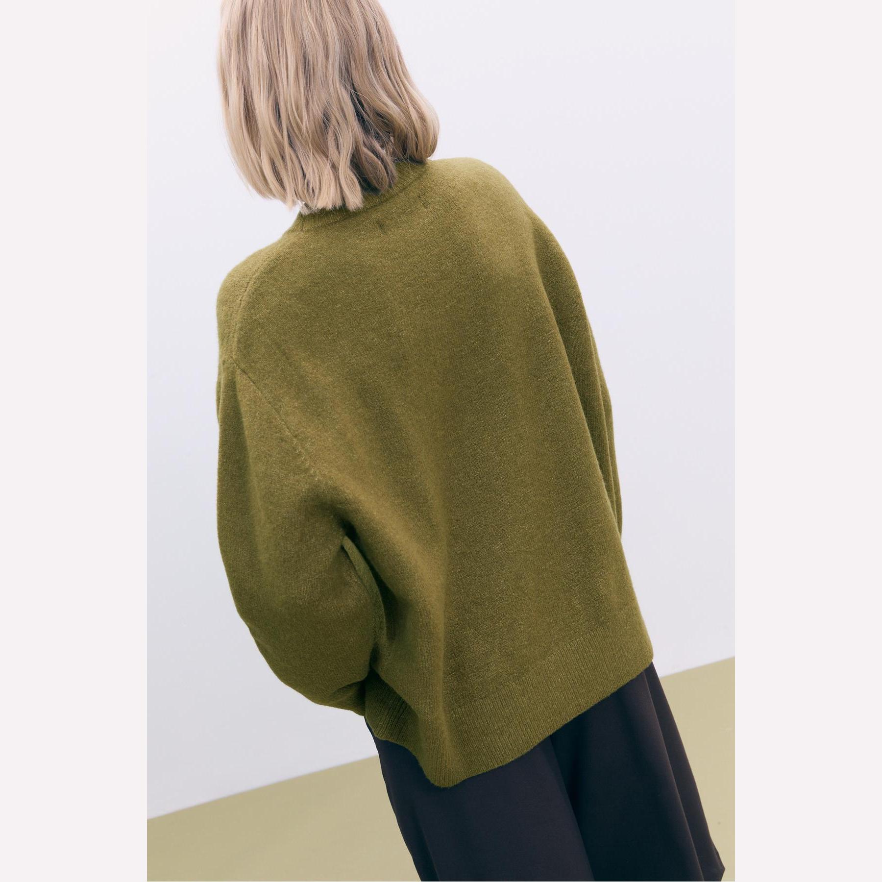 كنزة تريكو ناعمة بملمس مريح وياقة مستديرة – أخضر زيتي من Stradivarius