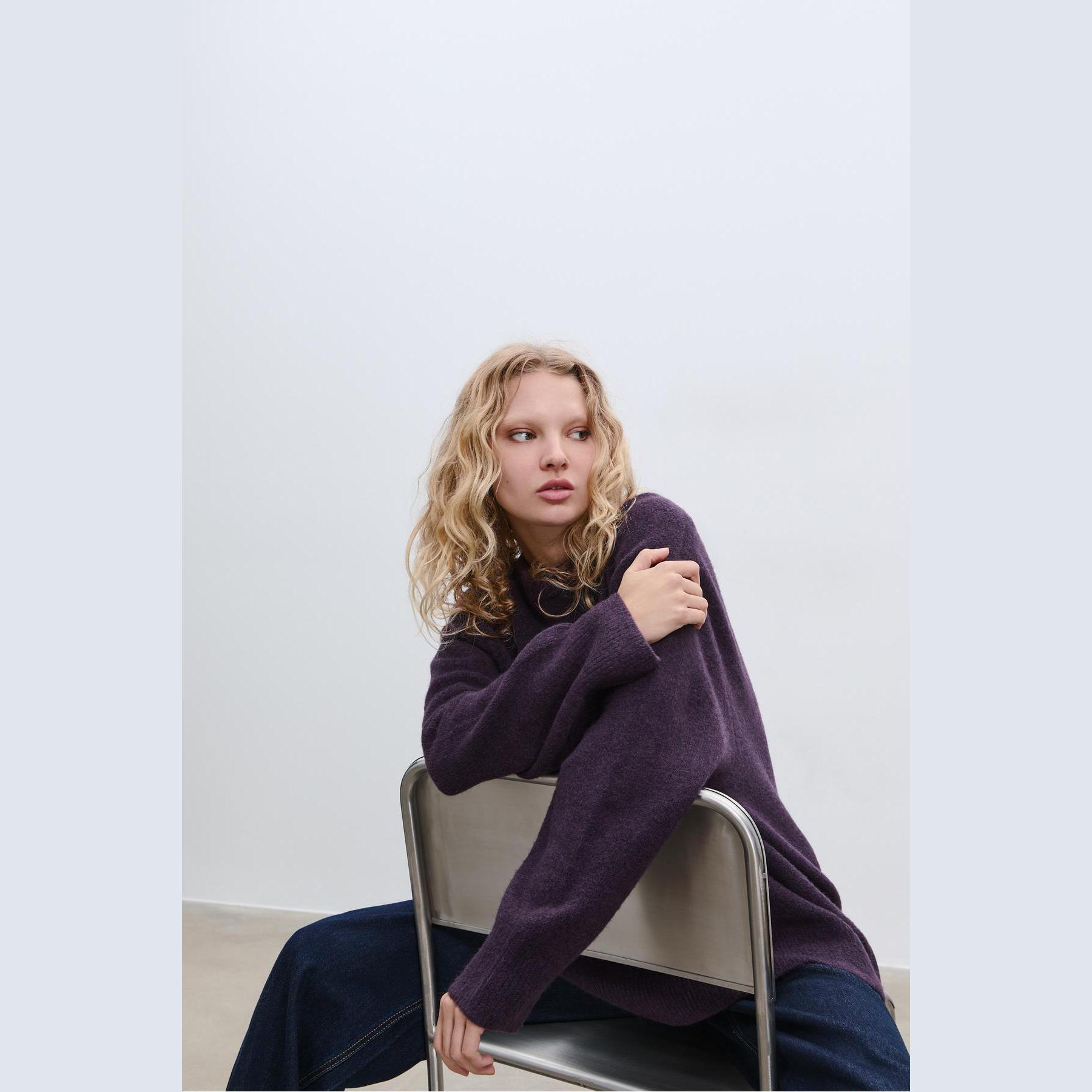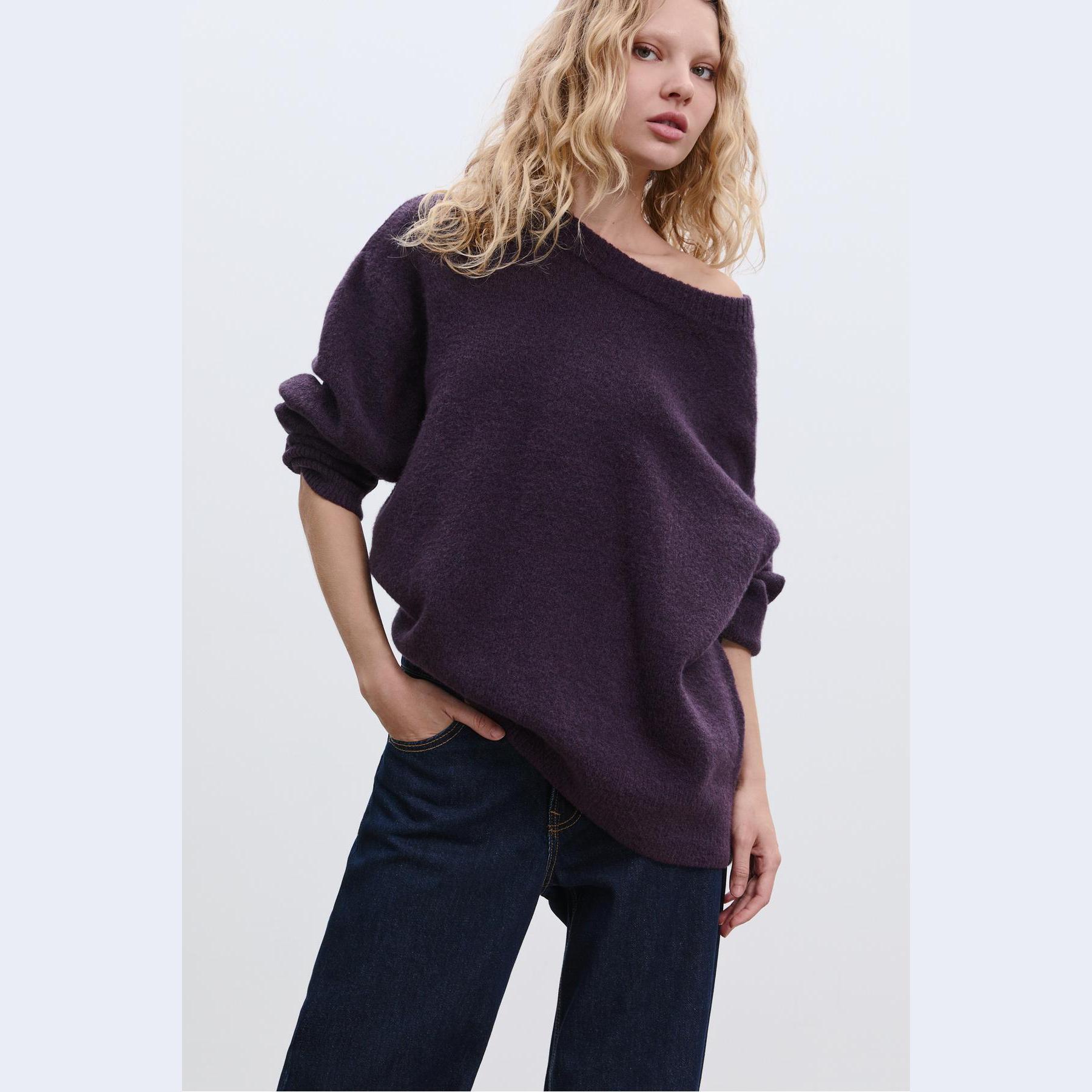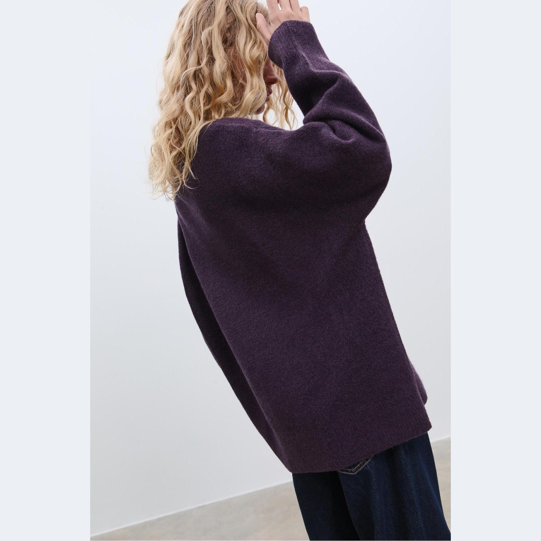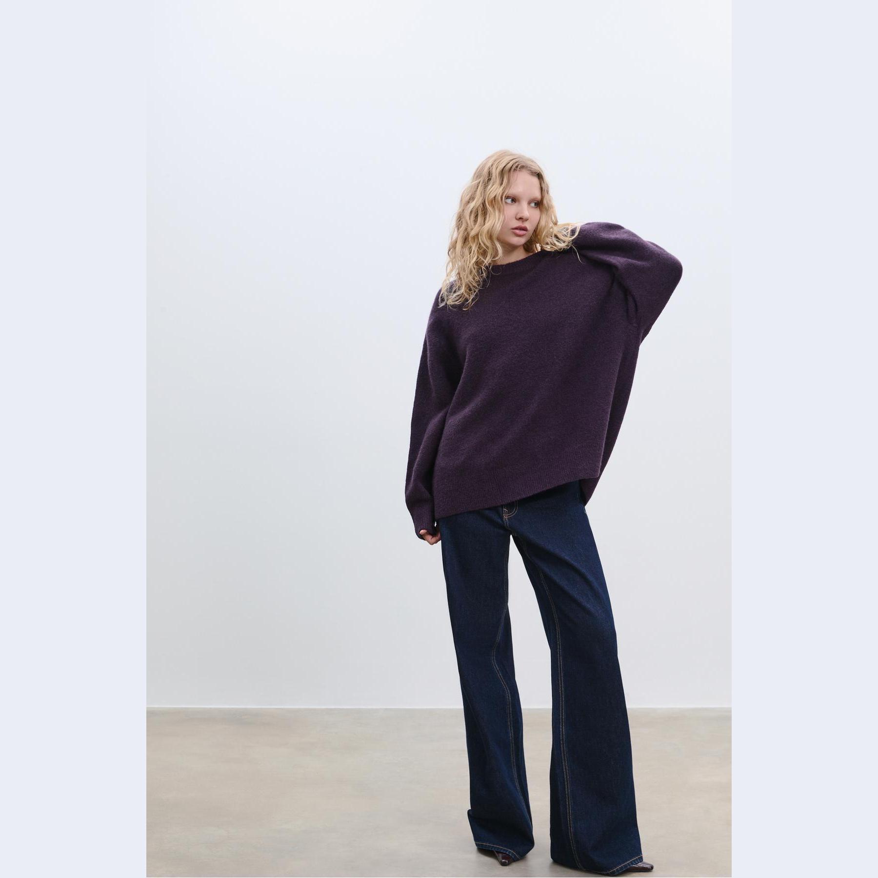 كنزة أنيقة من Stradivarius بلون بنفسجي غني، مصنوعة من خامة تريكو ناعمة بتركيبة دافئة، بتصميم Oversize Fit وياقة مستديرة، مزودة بأكمام طويلة وأطراف مضلعة، تمنحك إطلالة مريحة وعصرية مثالية للاستخدام اليومي أو المكتبي.