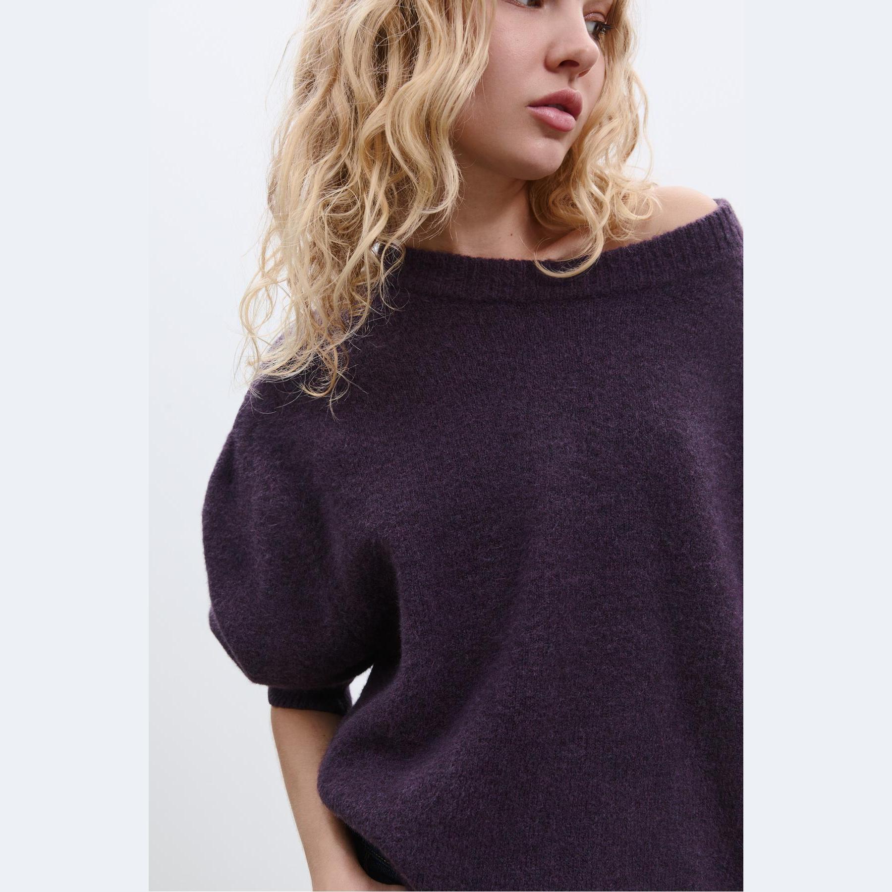 كنزة تريكو ناعمة بملمس مريح وياقة مستديرة – بنفسجي من Stradivarius