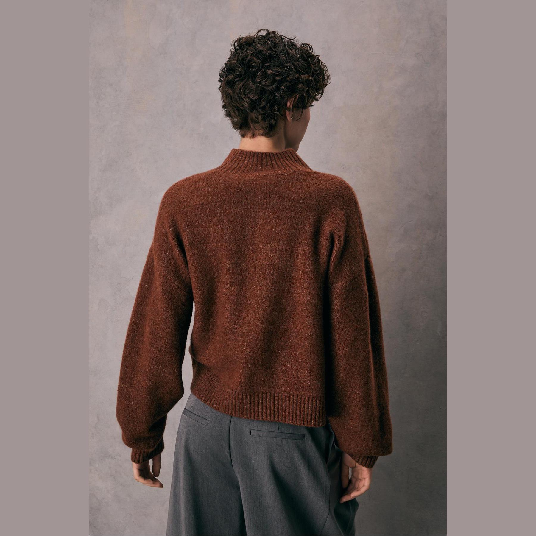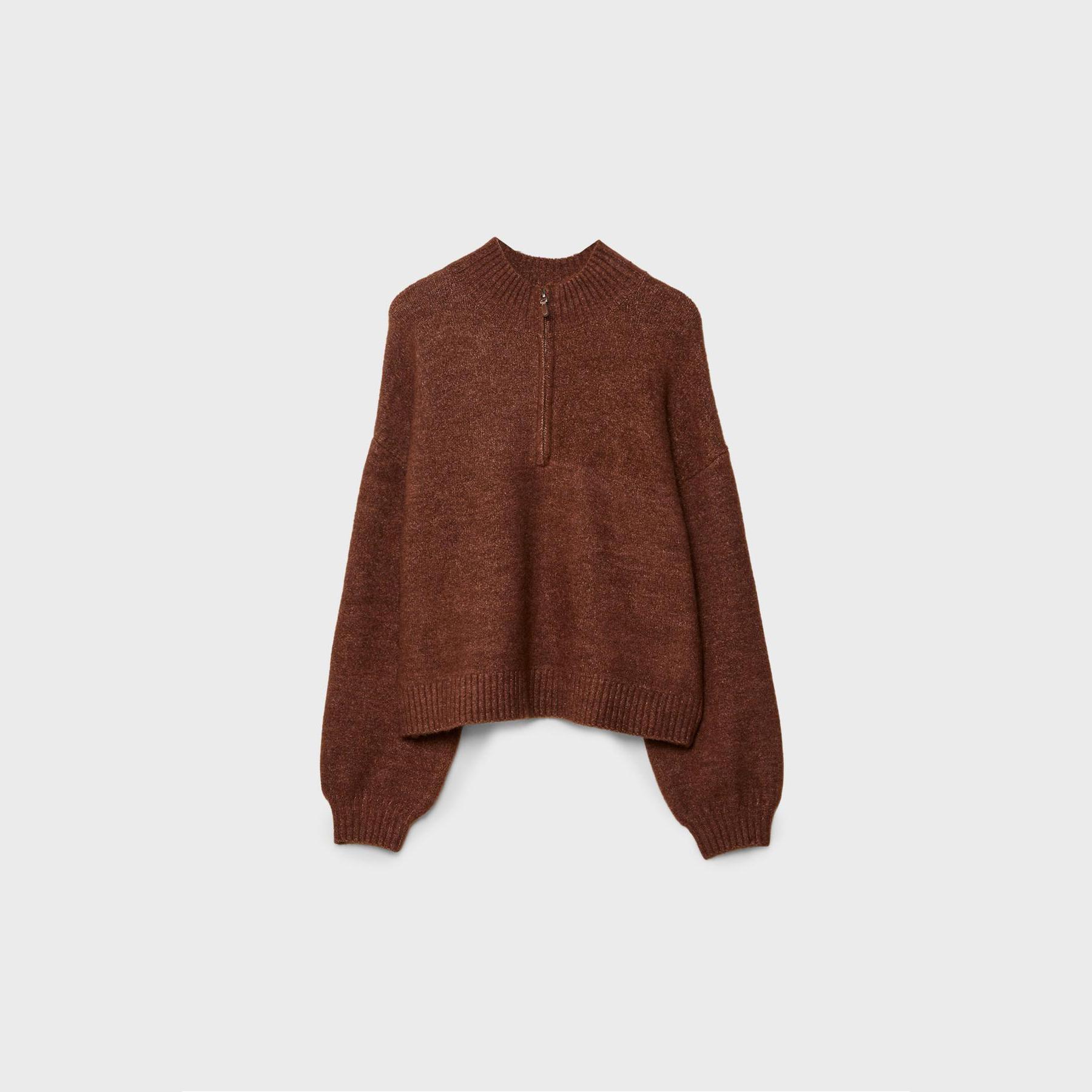كنزة تريكو بياقة قابلة للطي وسحاب أمامي – بني من Stradivarius