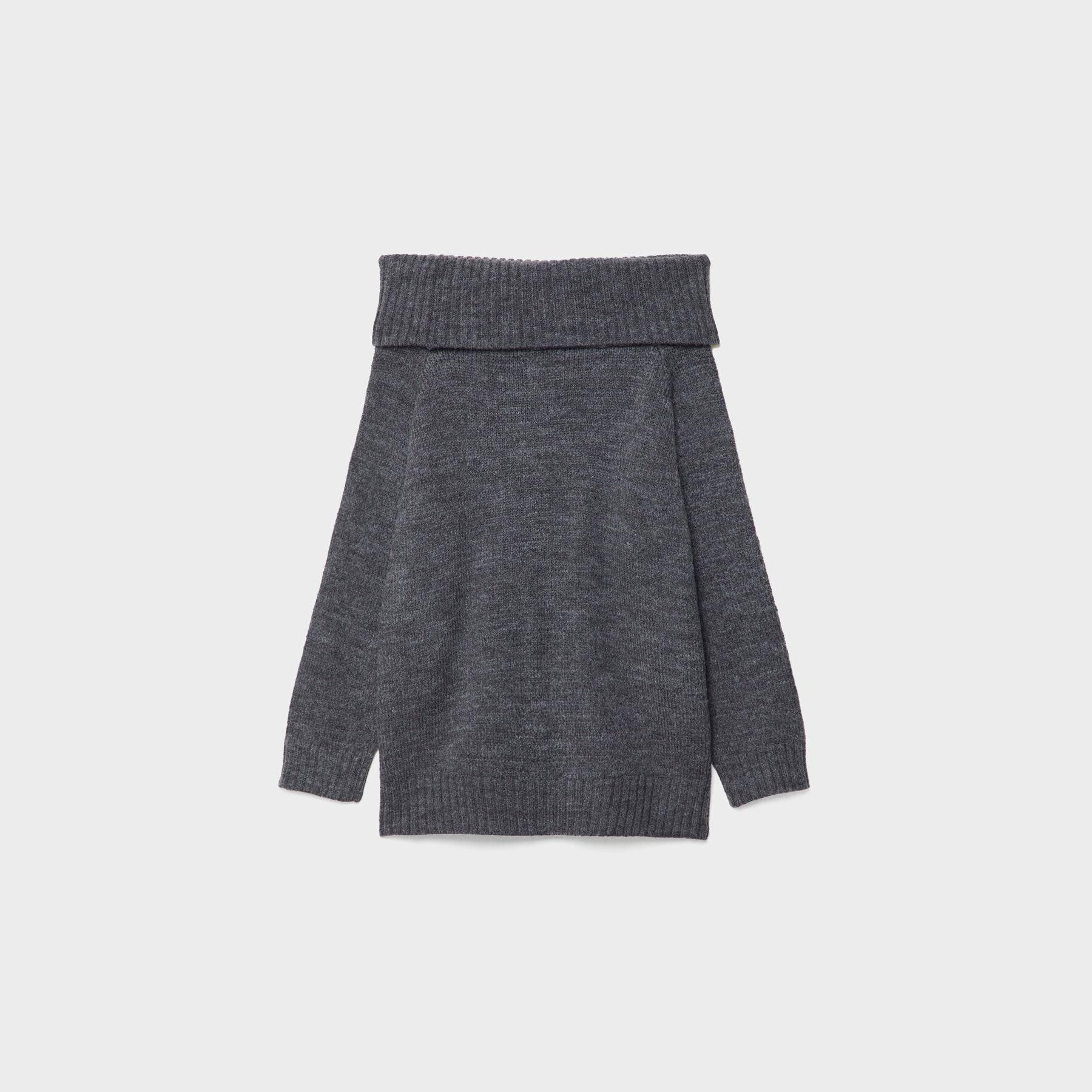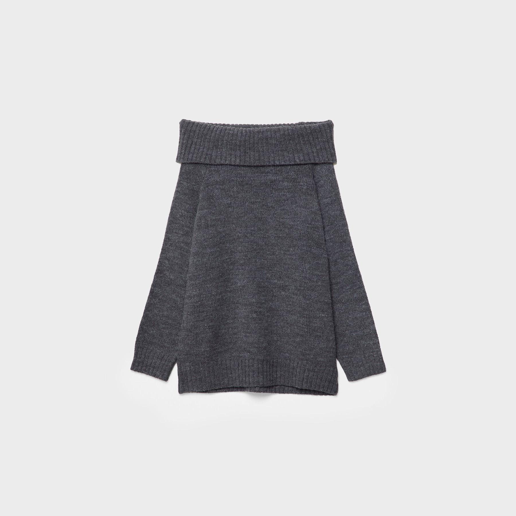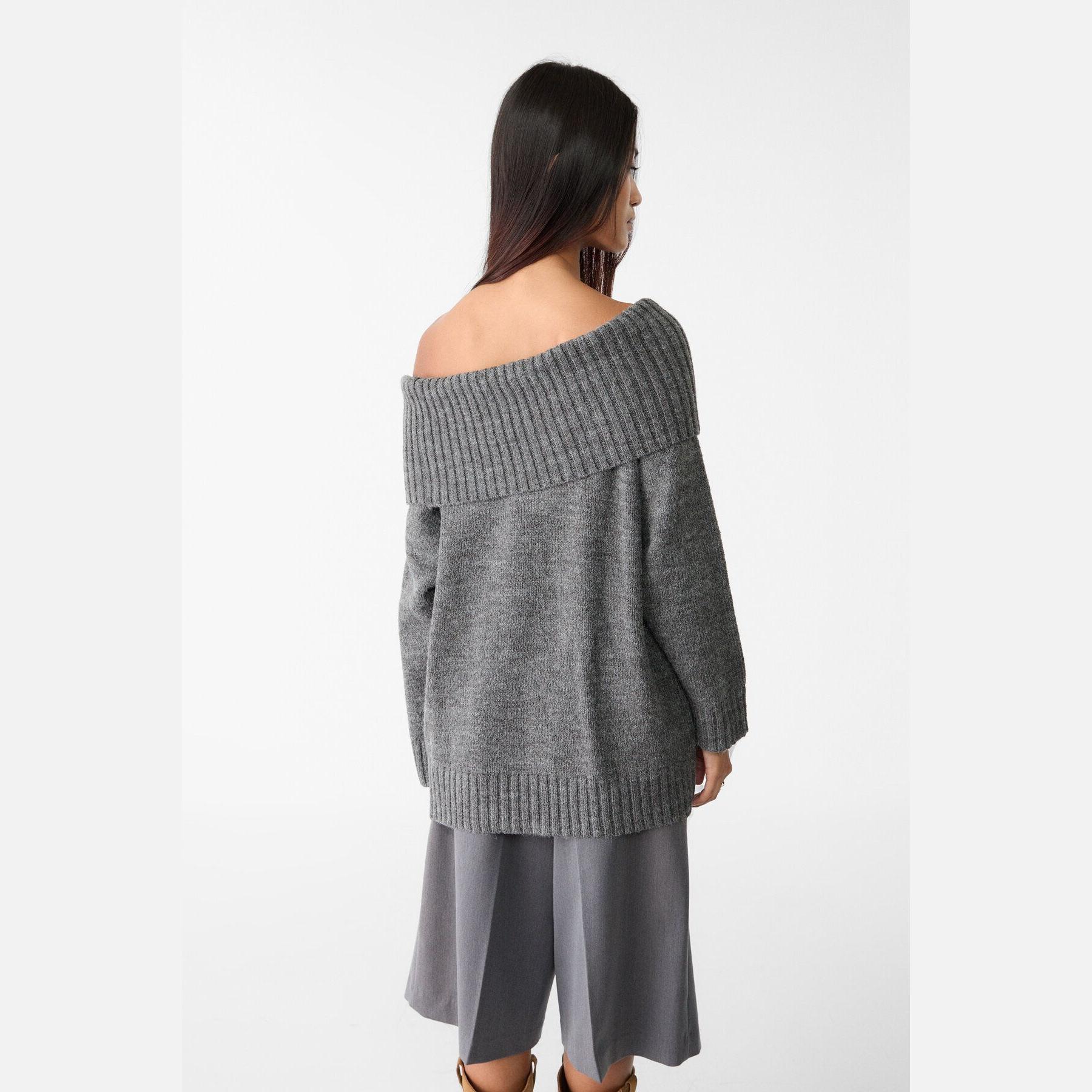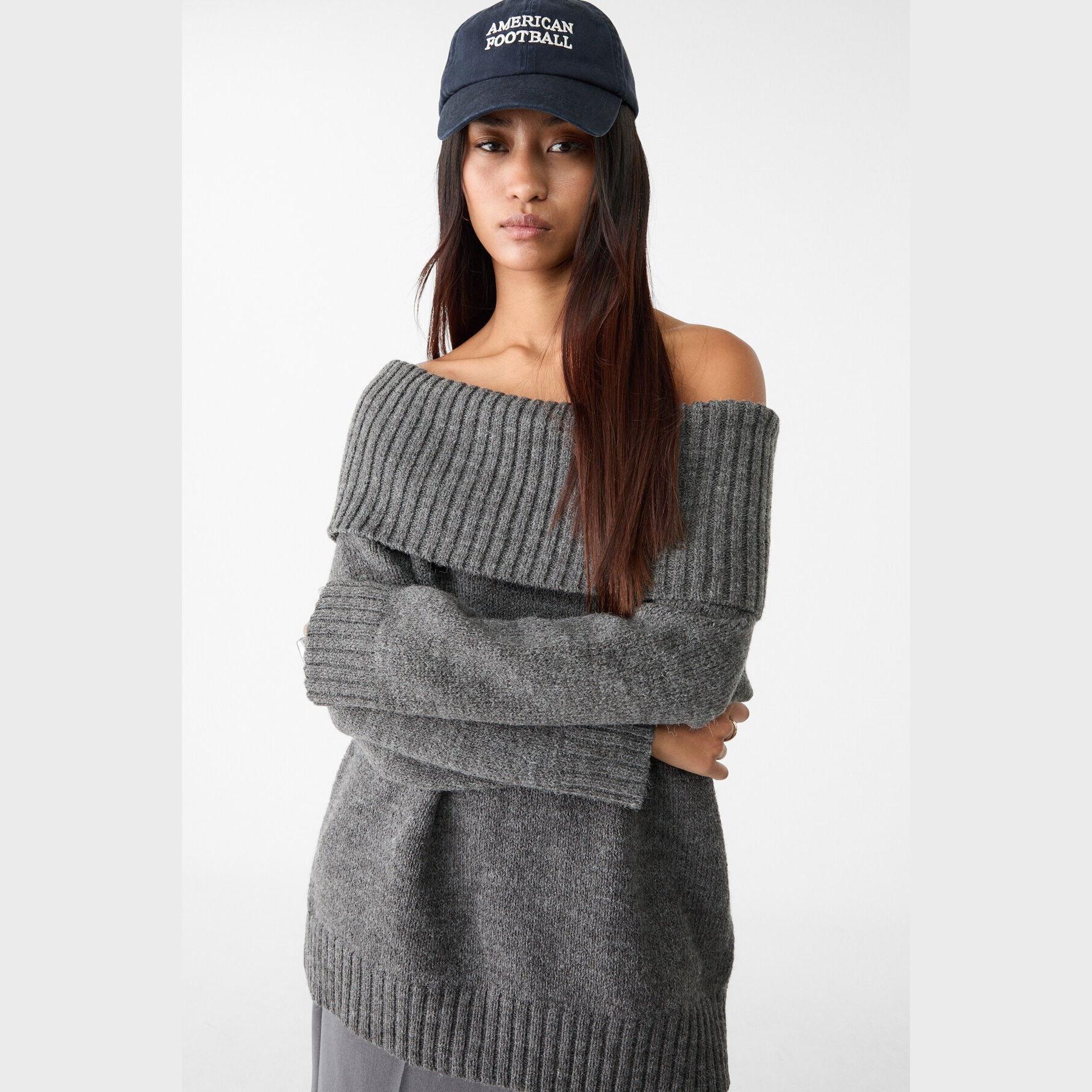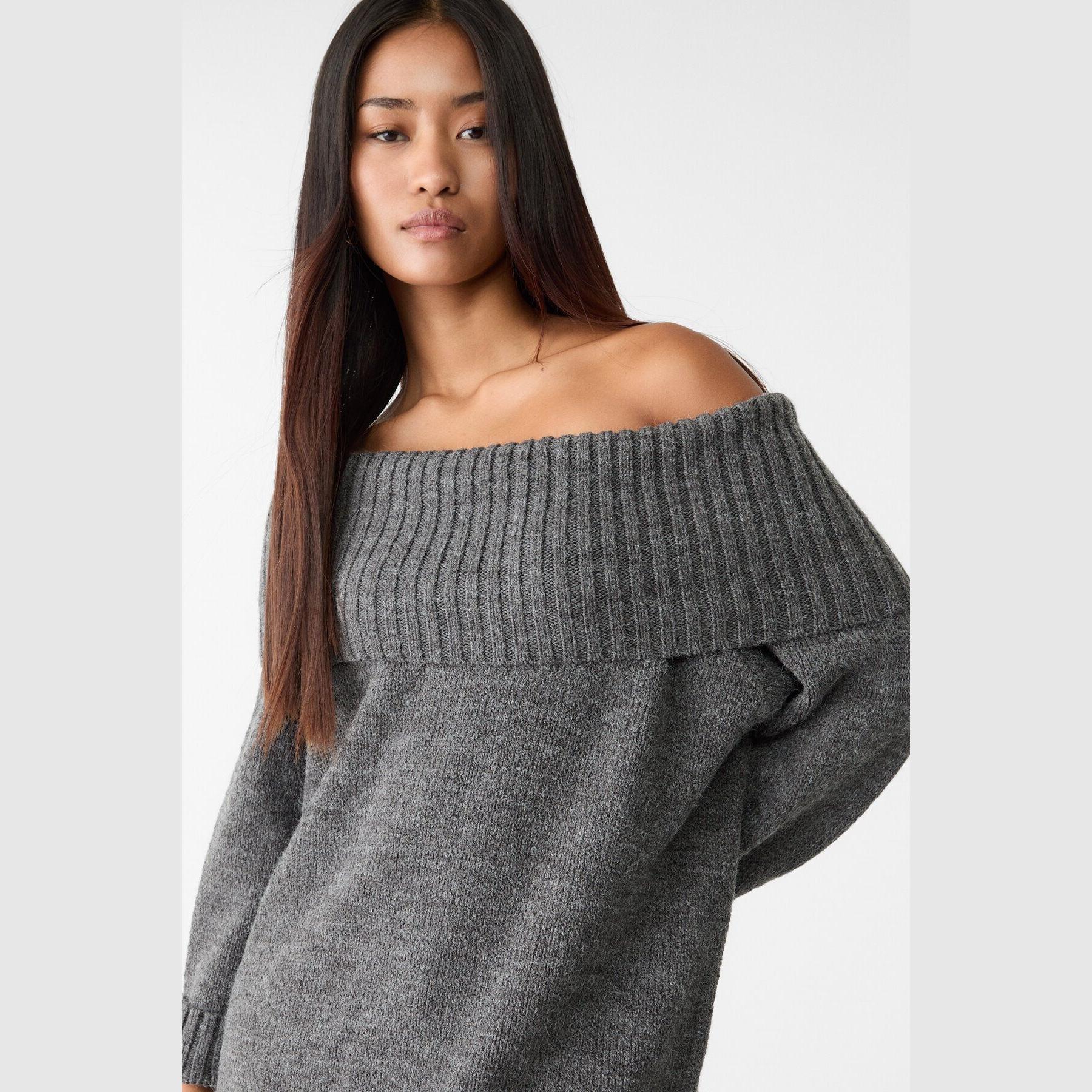 كنزة تريكو بأكتاف مكشوفة وياقة سترابلس – رمادي غامق من Stradivarius