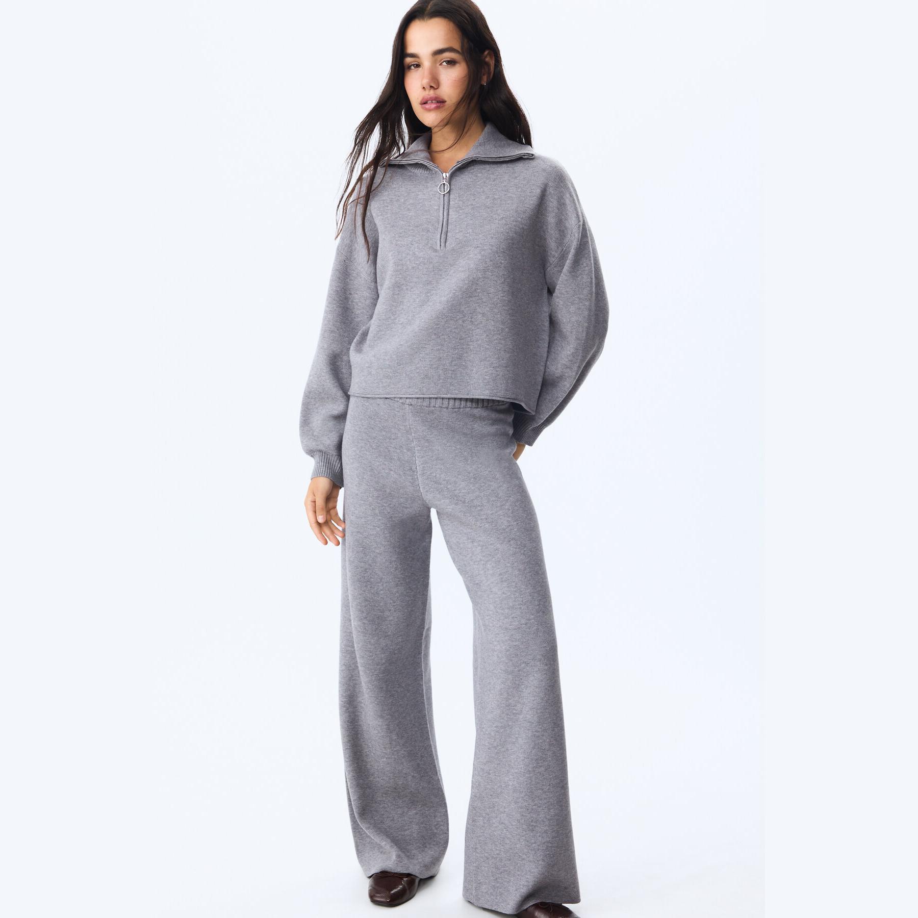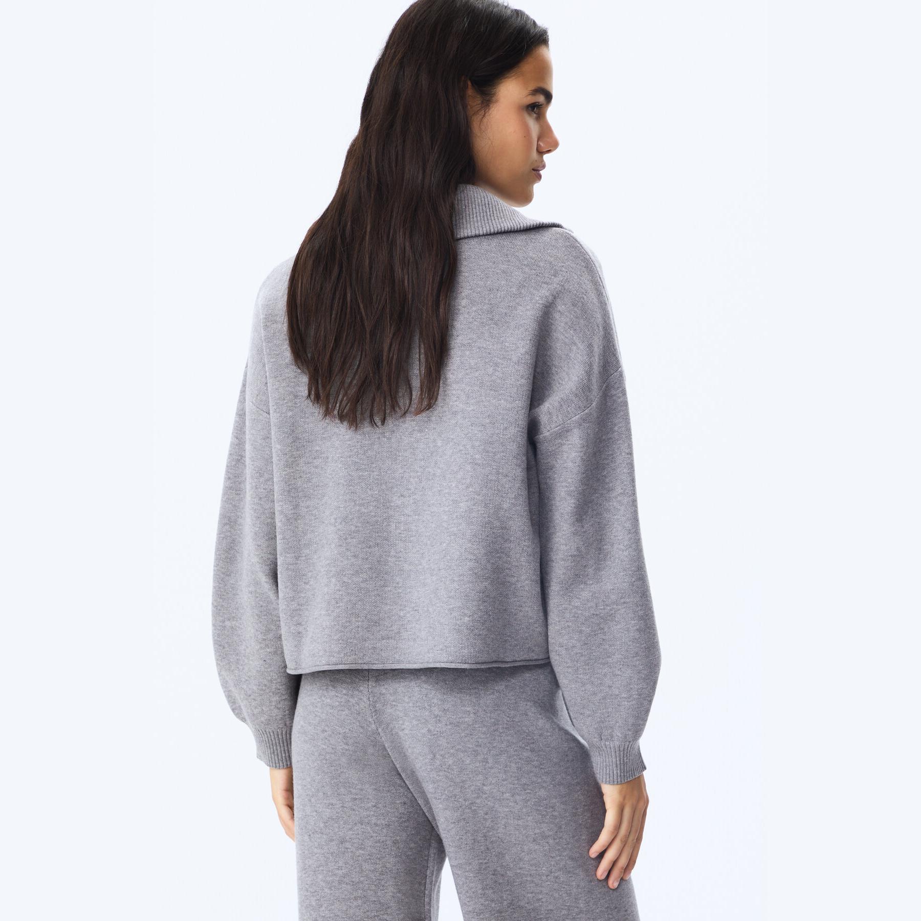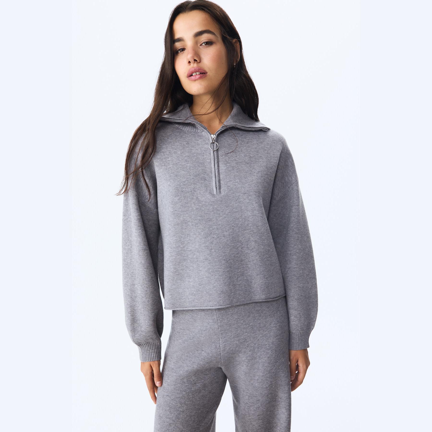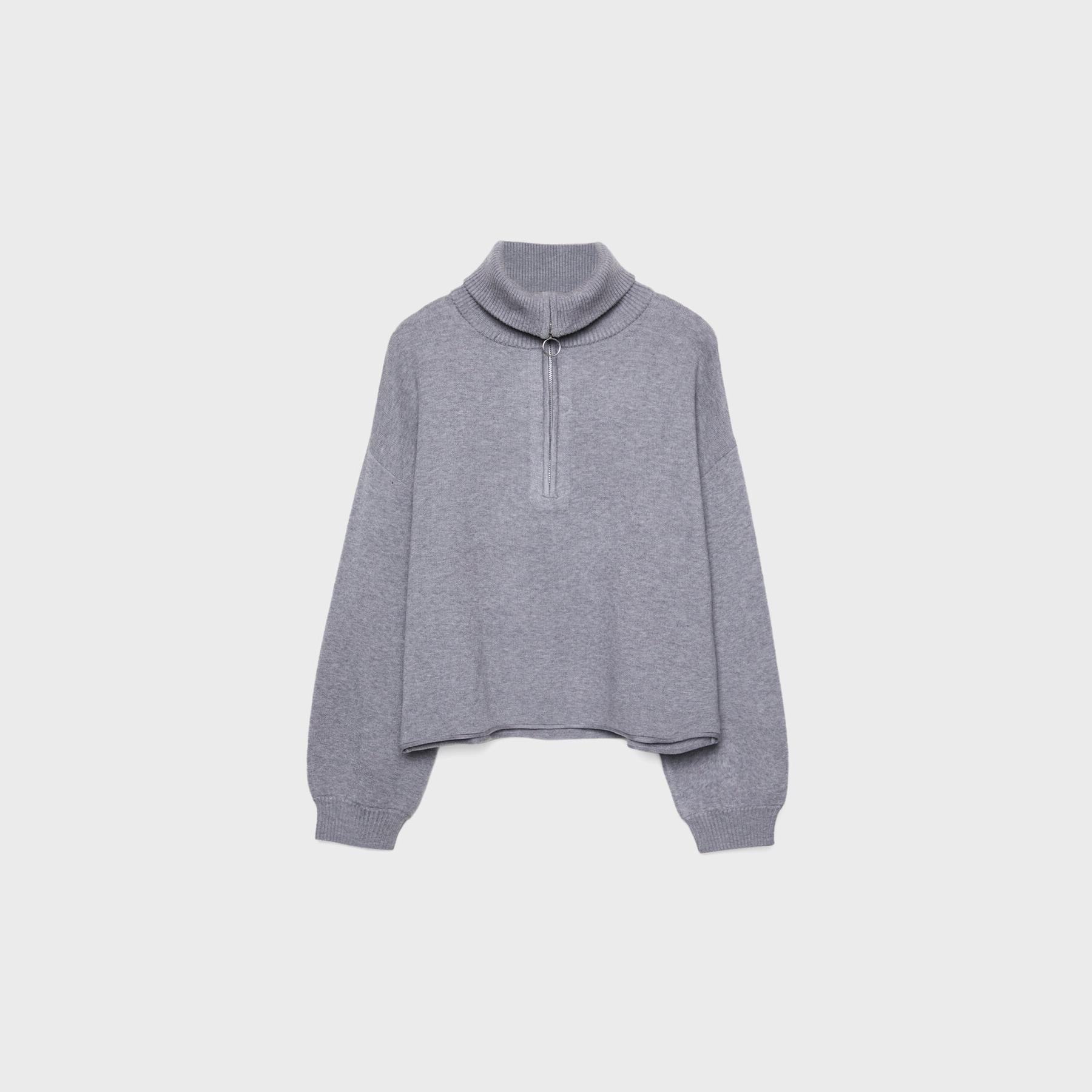 سُفّيت تريكو بياقة نصف عالية وسحاب أمامي – رمادي مخطط من Stradivarius