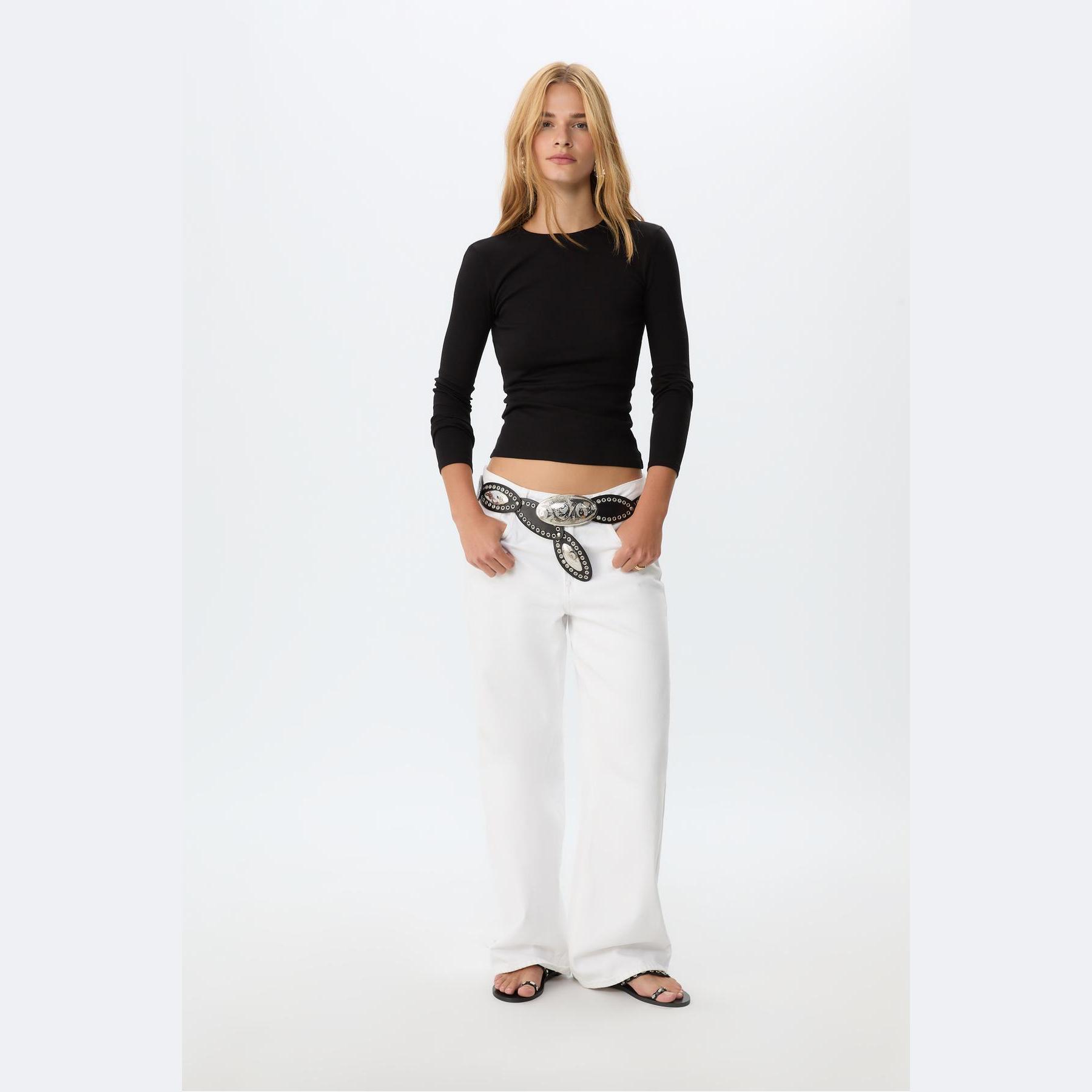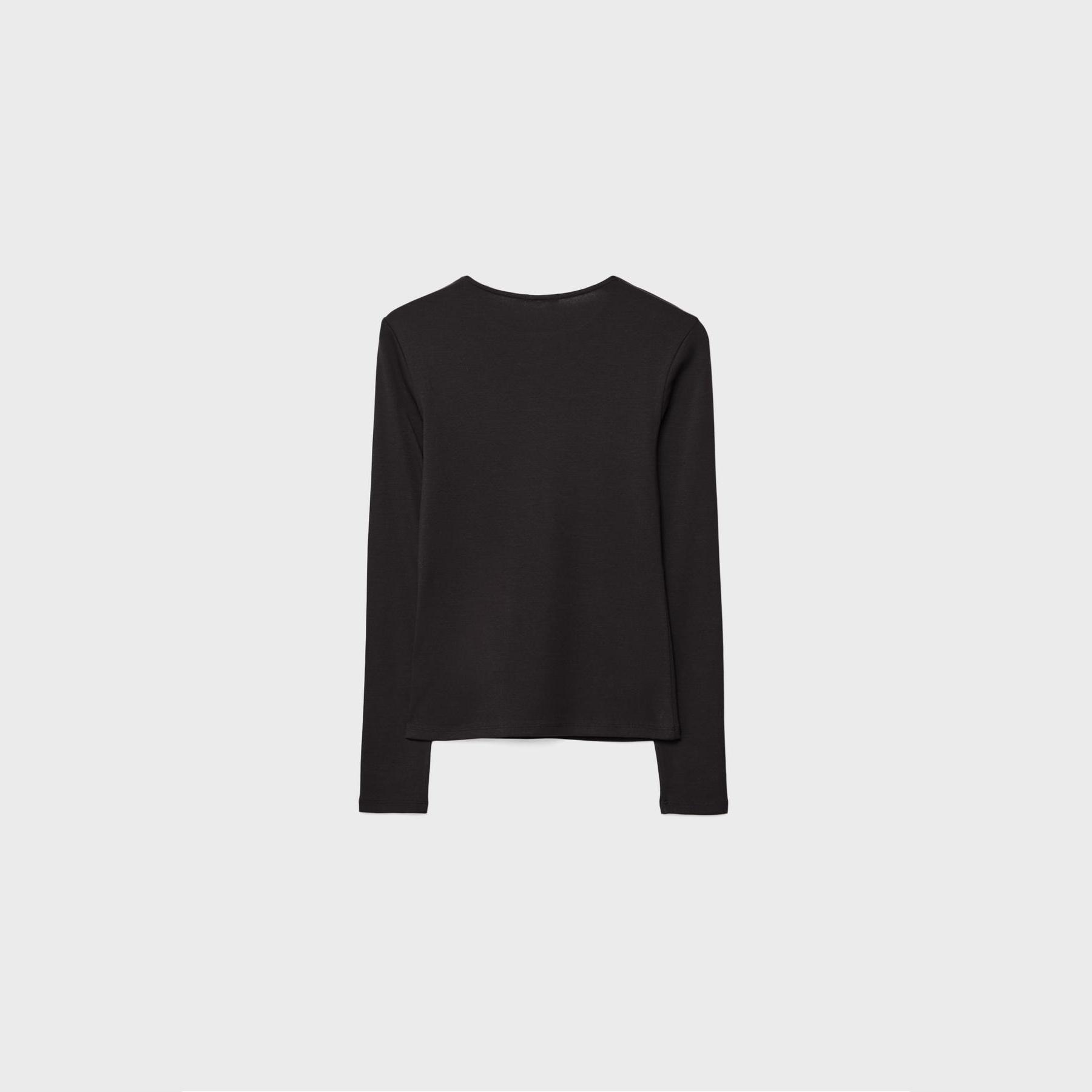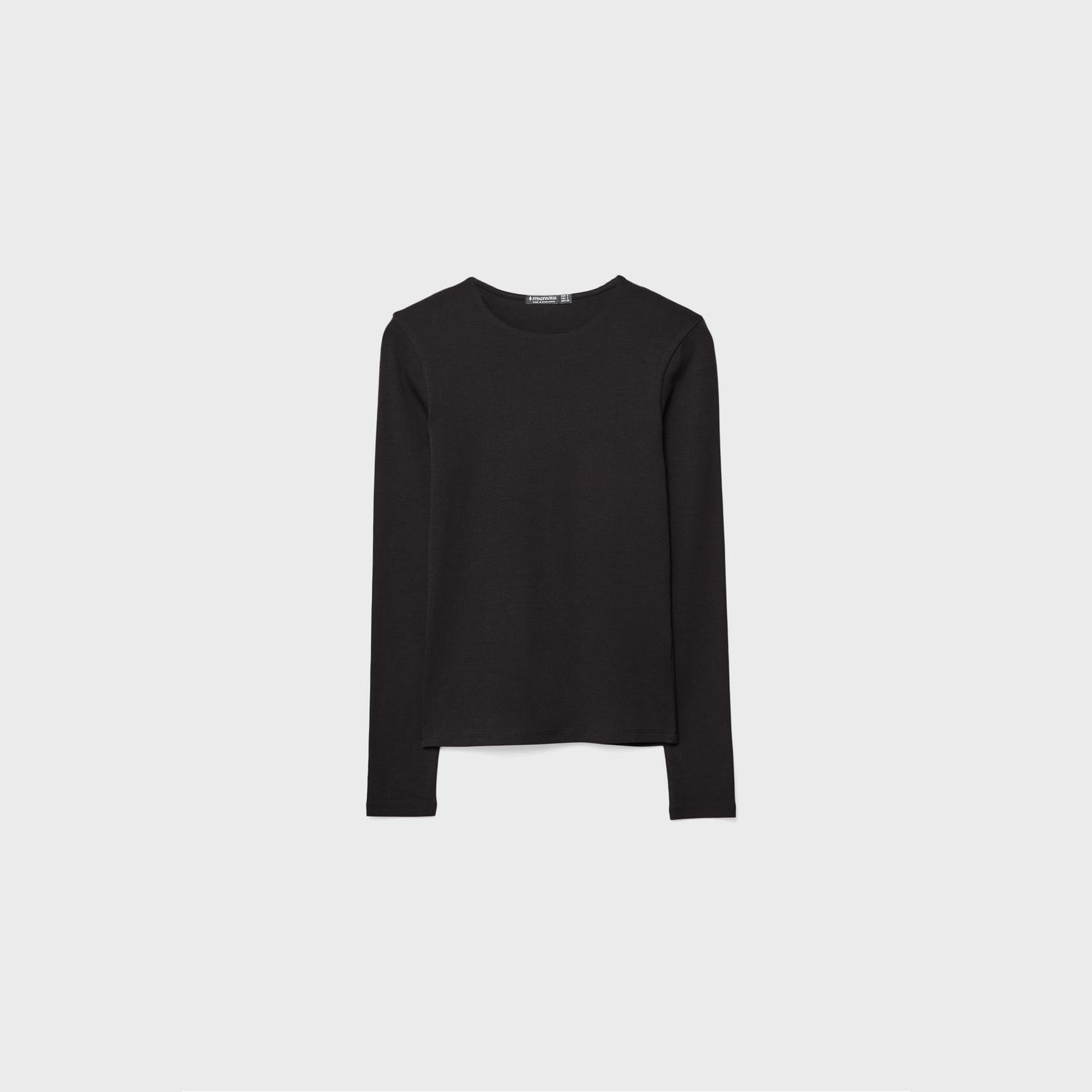 تيشيرت بيسك طويل الأكمام بياقة دائرية – أسود من Stradivarius
