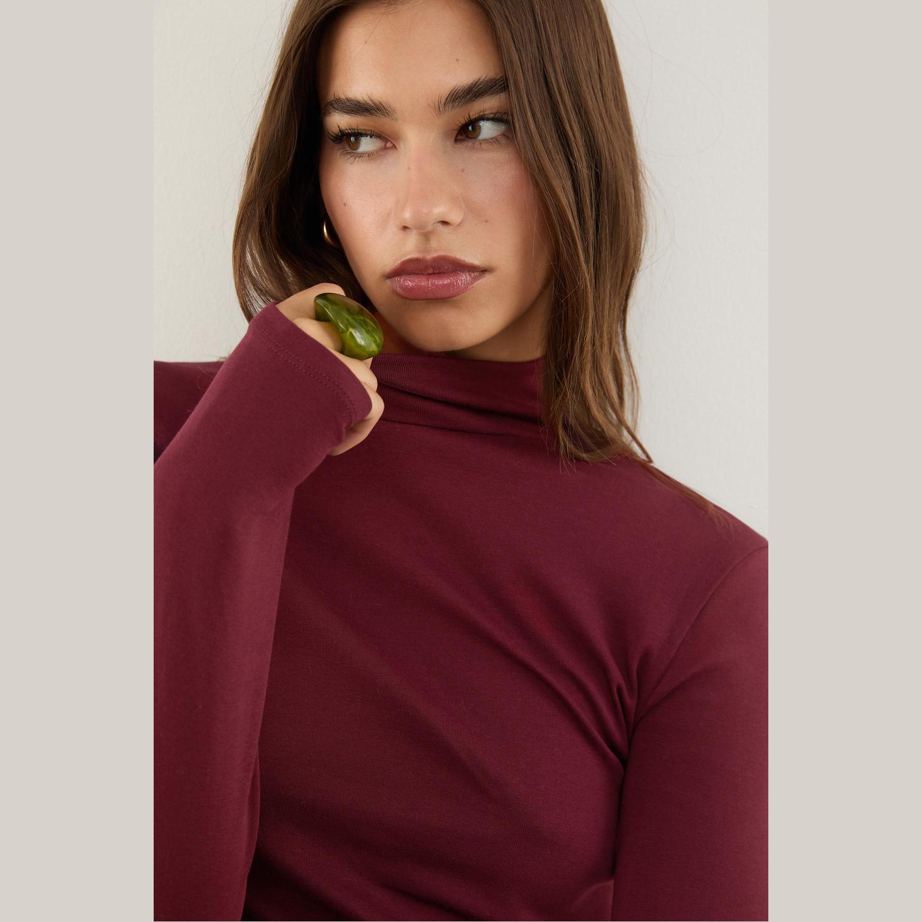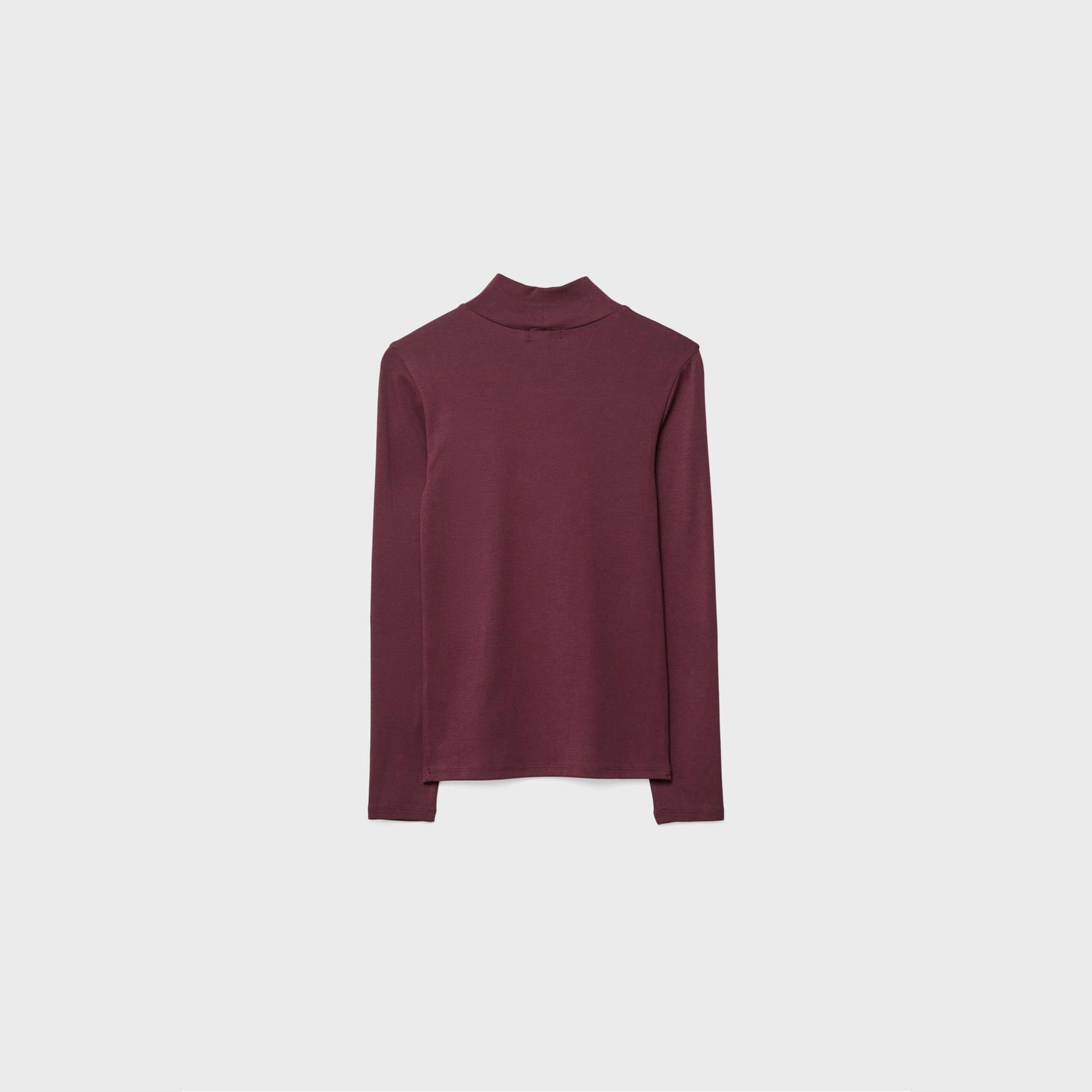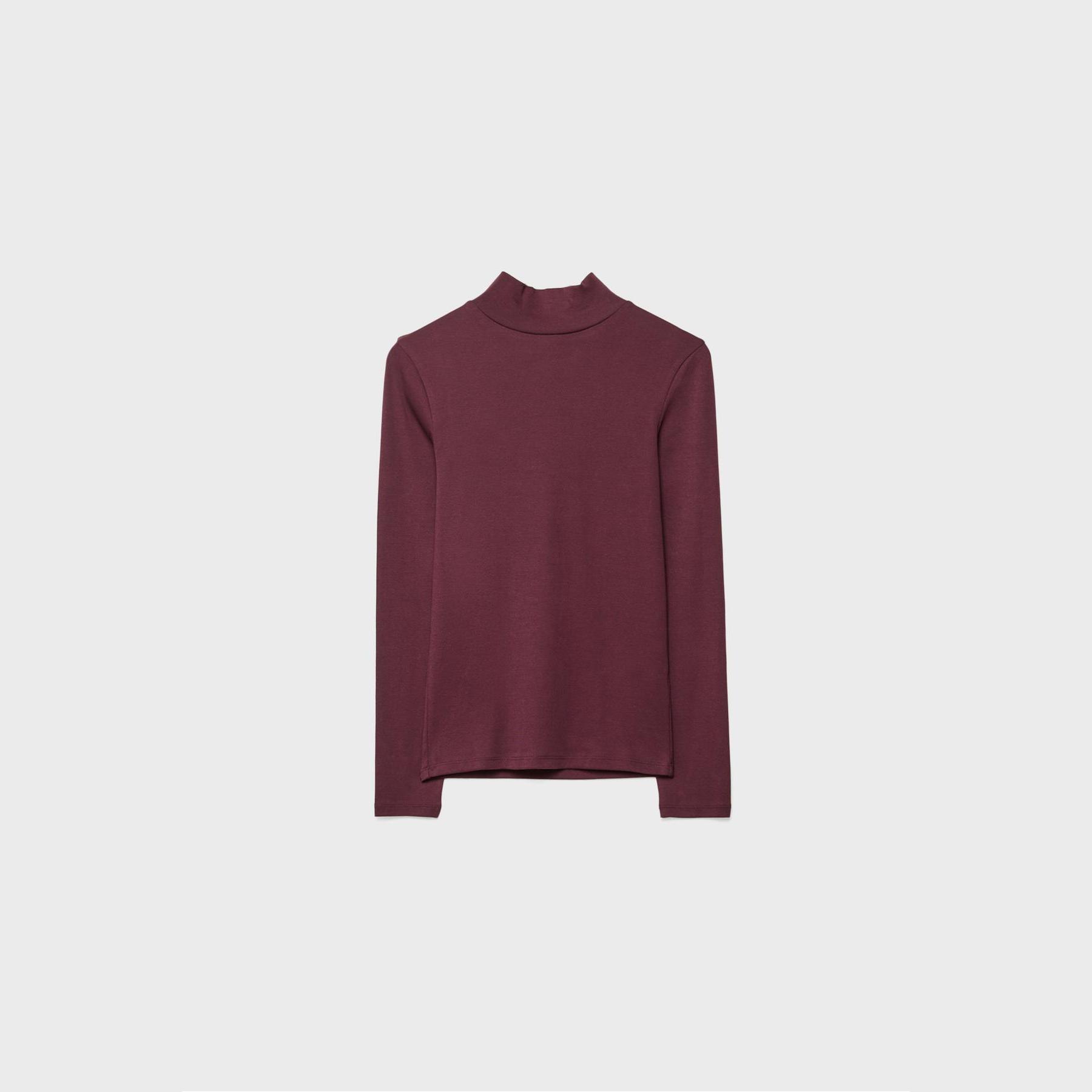 تيشيرت عملي من Stradivarius بلون بنفسجي غني، مصنوع من خامة ناعمة بتركيبة مرنة، بياقة عالية وأكمام قصيرة، يمنحك إطلالة بسيطة وعصرية مثالية للاستخدام اليومي أو كقطعة أساسية ضمن تنسيقات متعددة.