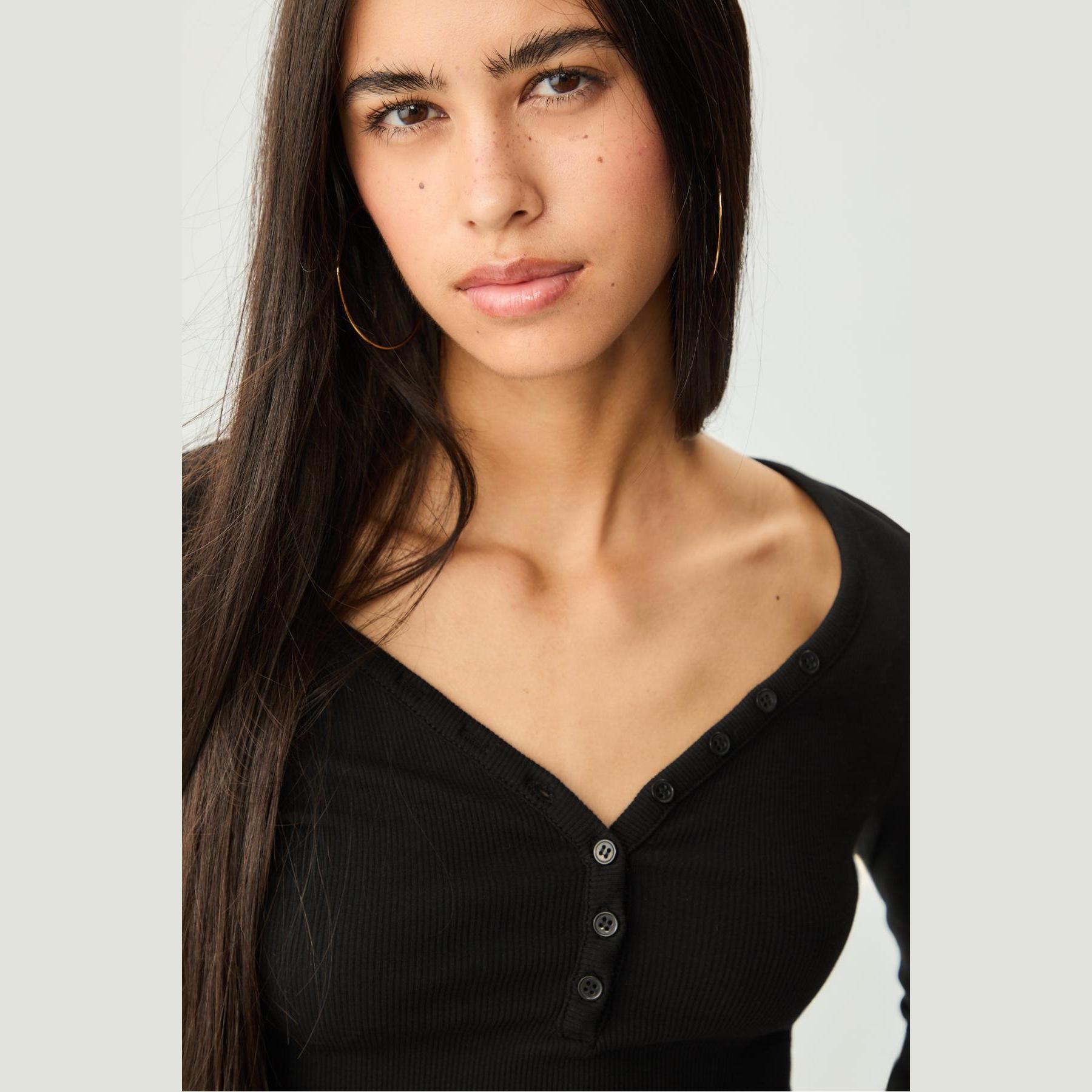 تيشيرت بياقة V وأزرار أمامية – أسود من Stradivarius