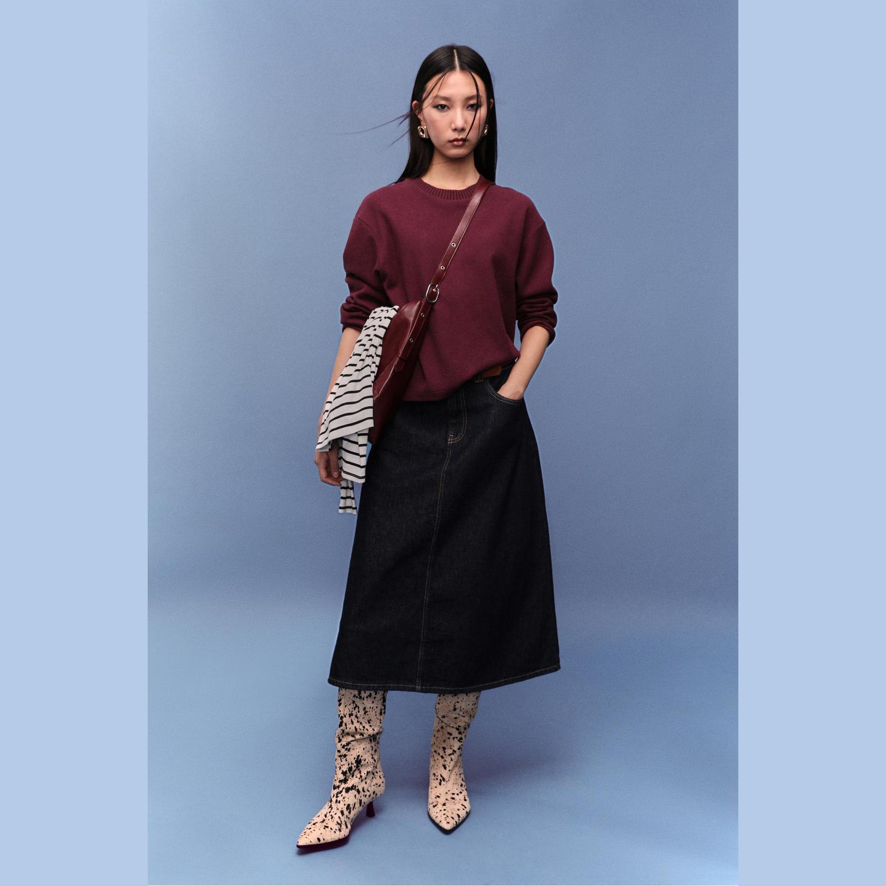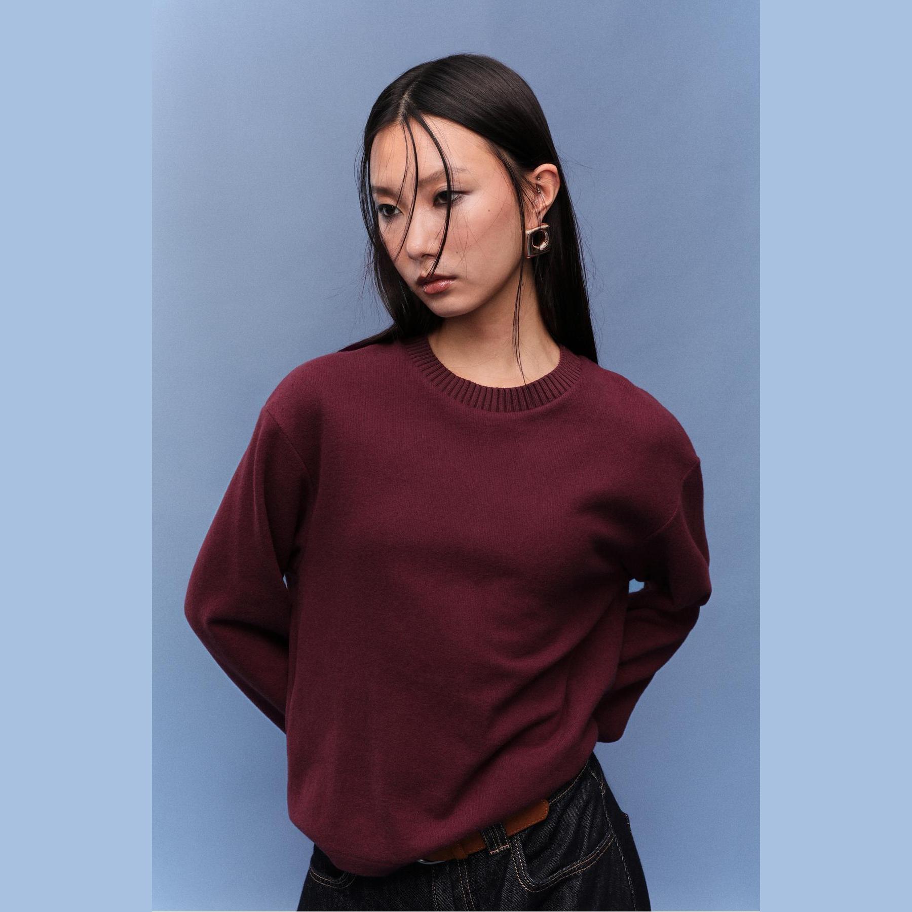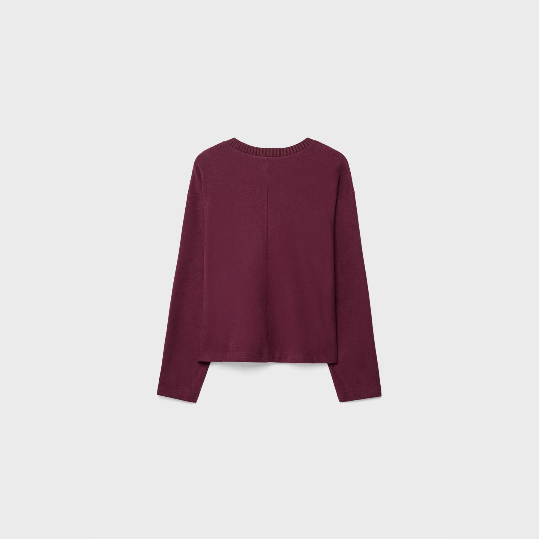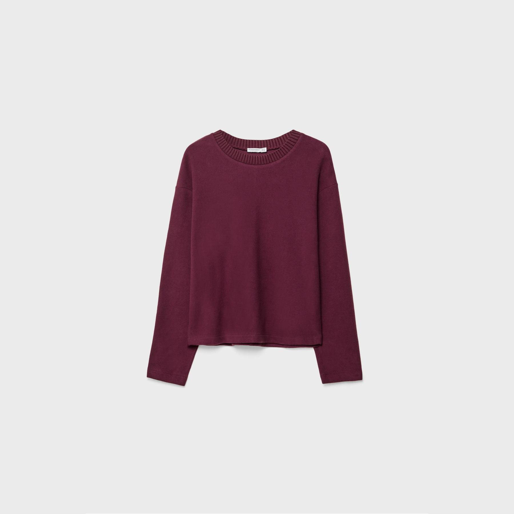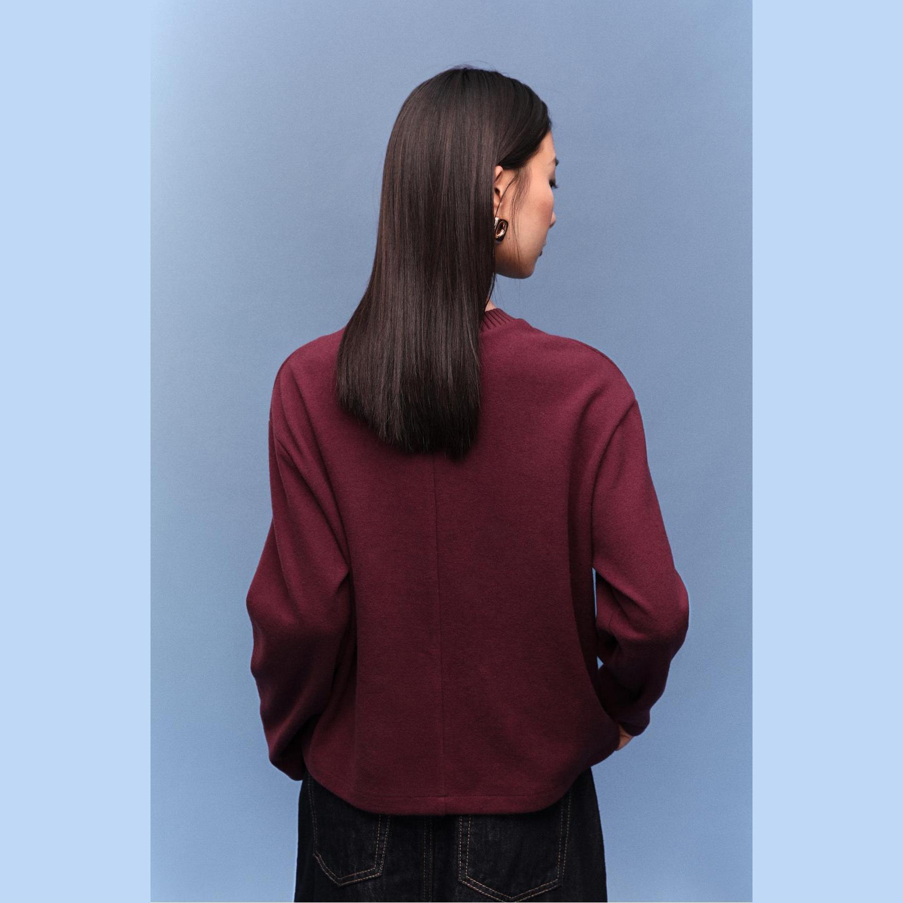 تيشيرت عملي من Stradivarius بلون بنفسجي غني، مصنوع من خامة محبوكة ناعمة، بياقة دائرية وأكمام طويلة، يتميز بقصة واسعة تمنحك راحة وانسيابية، مثالي للتنسيق مع بناطيل مستقيمة أو تنانير قصيرة لإطلالة كاجوال أنيقة.