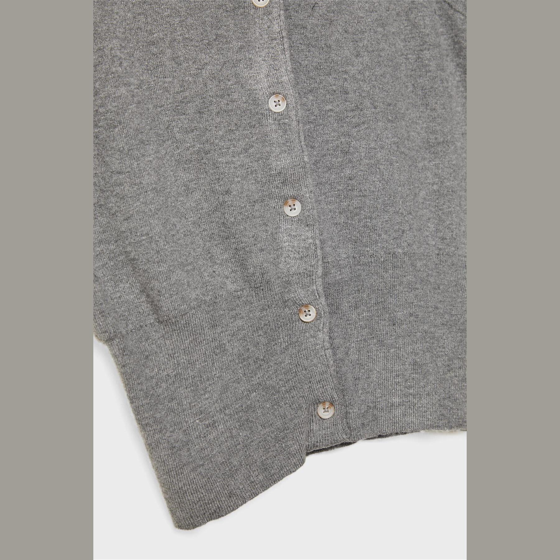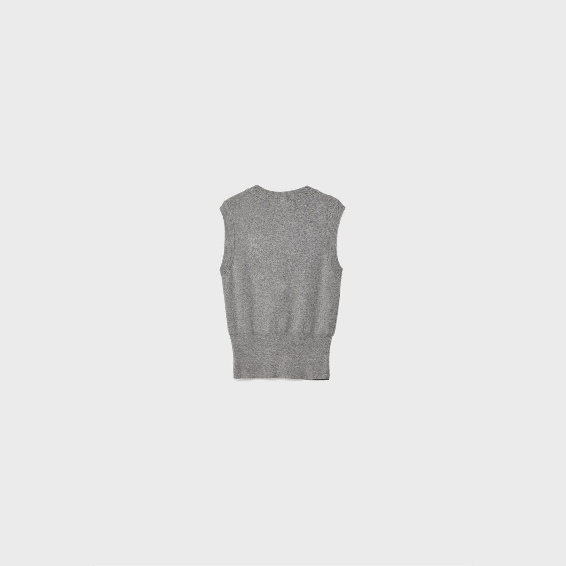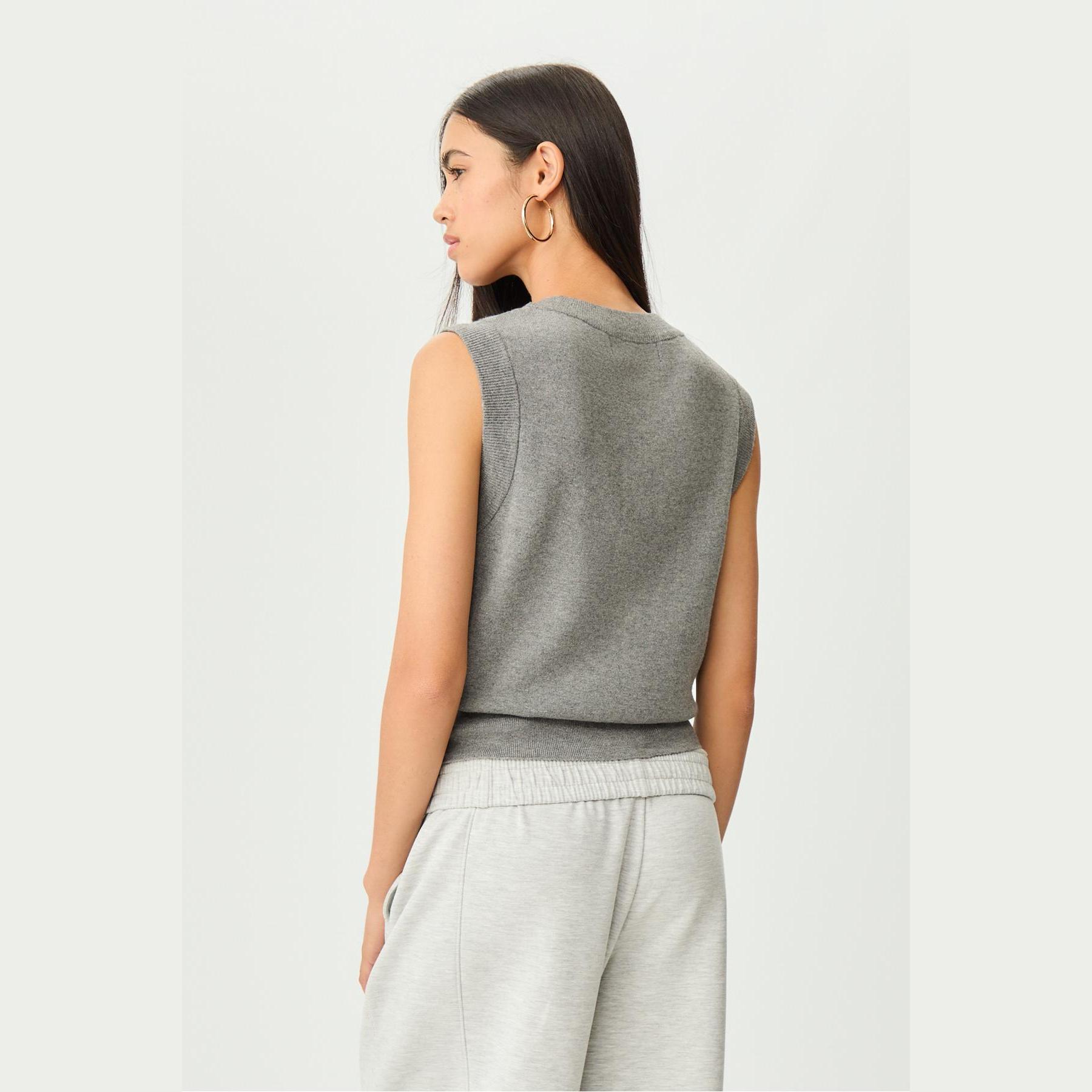 فيست أنيق من Stradivarius بلون رمادي هادئ، مصنوع من خامة محبوكة ناعمة، بياقة دائرية وقصة ضيقة، يتميز بتفاصيل ريب على الحواف وإغلاق أمامي بأزرار، مثالي للتنسيق فوق تيشيرتات أو بلوزات خفيفة لإطلالة كاجوال أنيقة وعصرية.