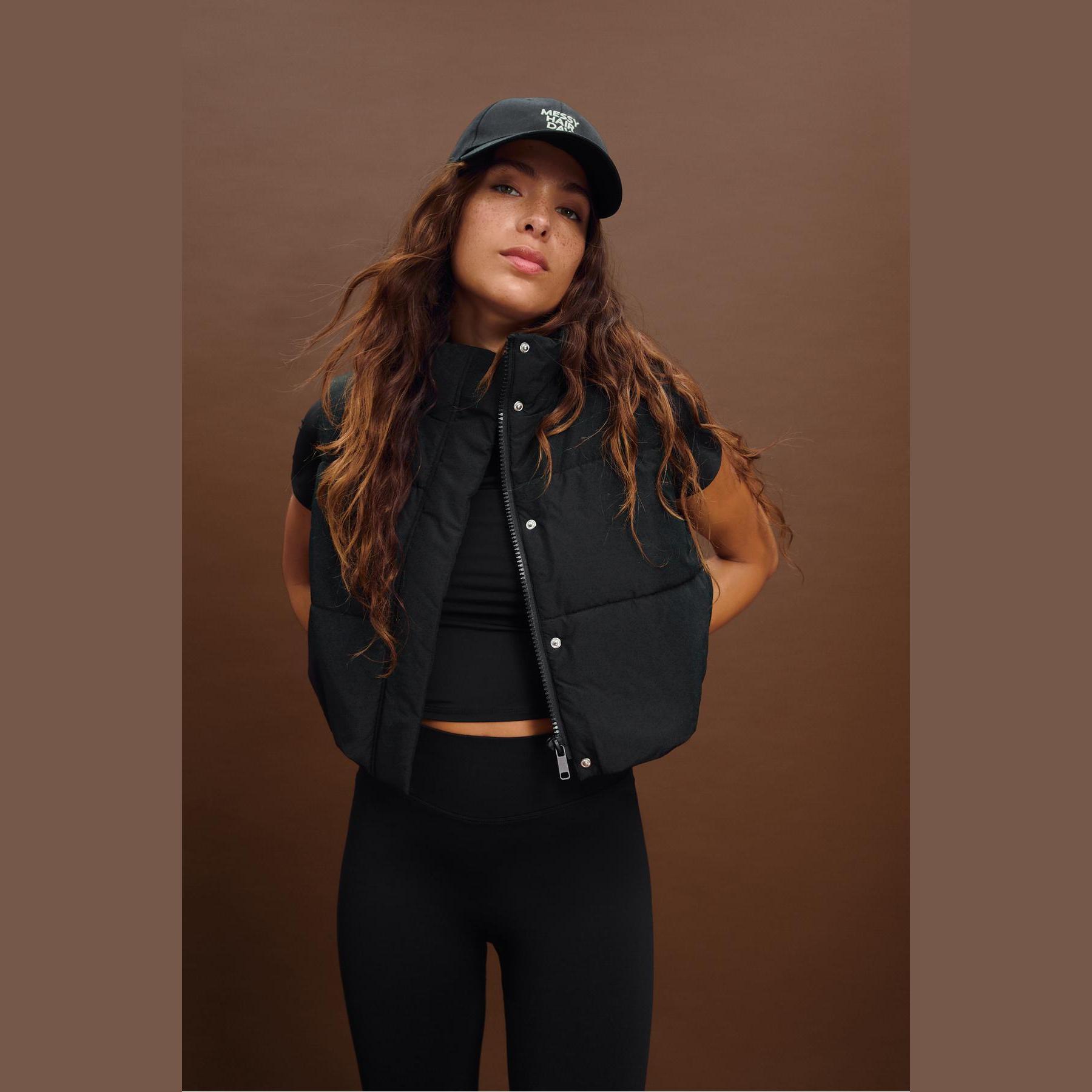 فيست كاجوال من Stradivarius بلون أسود أنيق، مصنوع من خامة كابيتوني منسوجة، بياقة نصف عالية وقصة قصيرة، يتميز بتصميم مبطن يمنحك دفئًا إضافيًا، مع سحاب أمامي مخفي وأزرار كبس، بالإضافة إلى حافة سفلية قابلة للتعديل برباط مطاطي وستوبر، مثالي للإطلالات اليومية أو التنسيقات الرياضية العصرية.