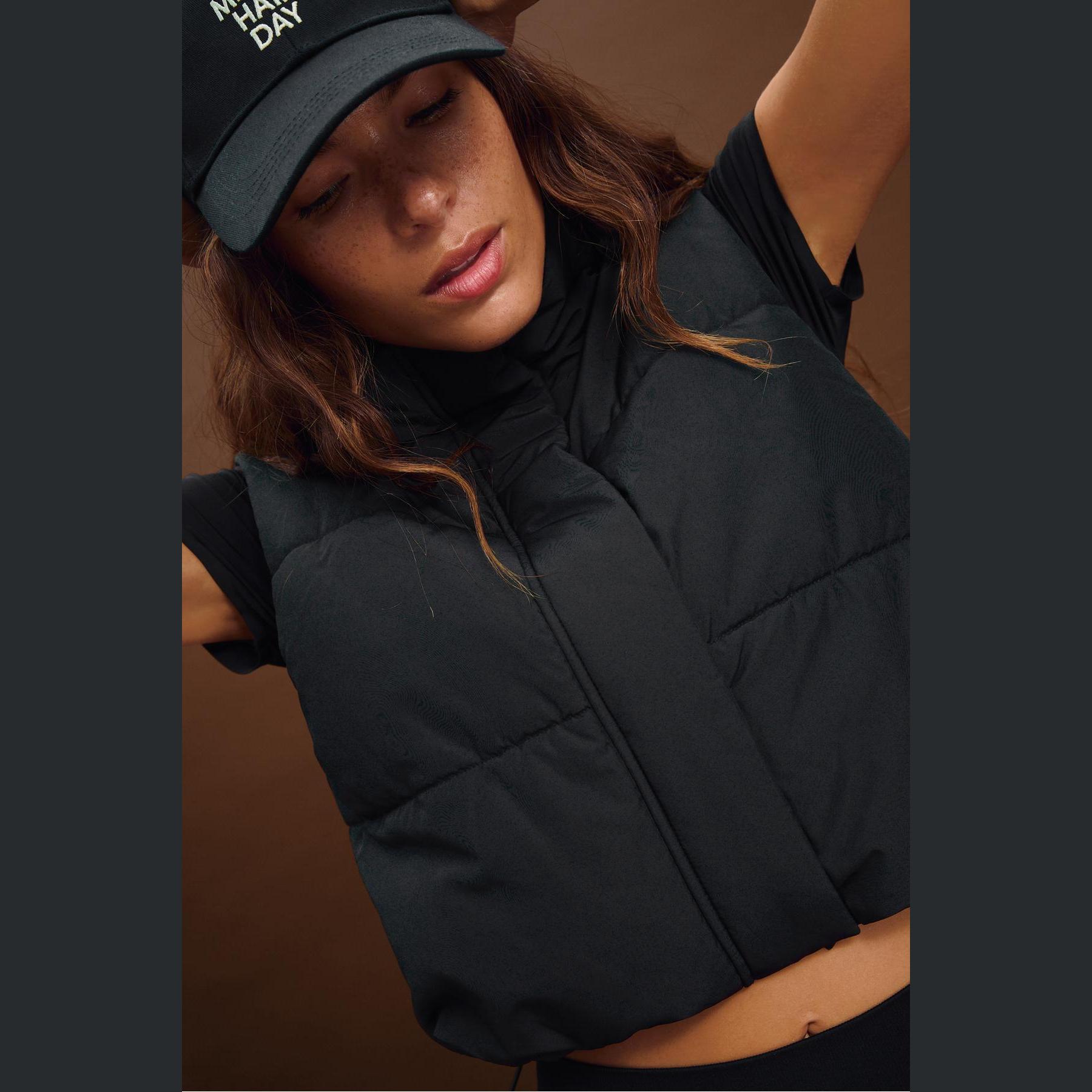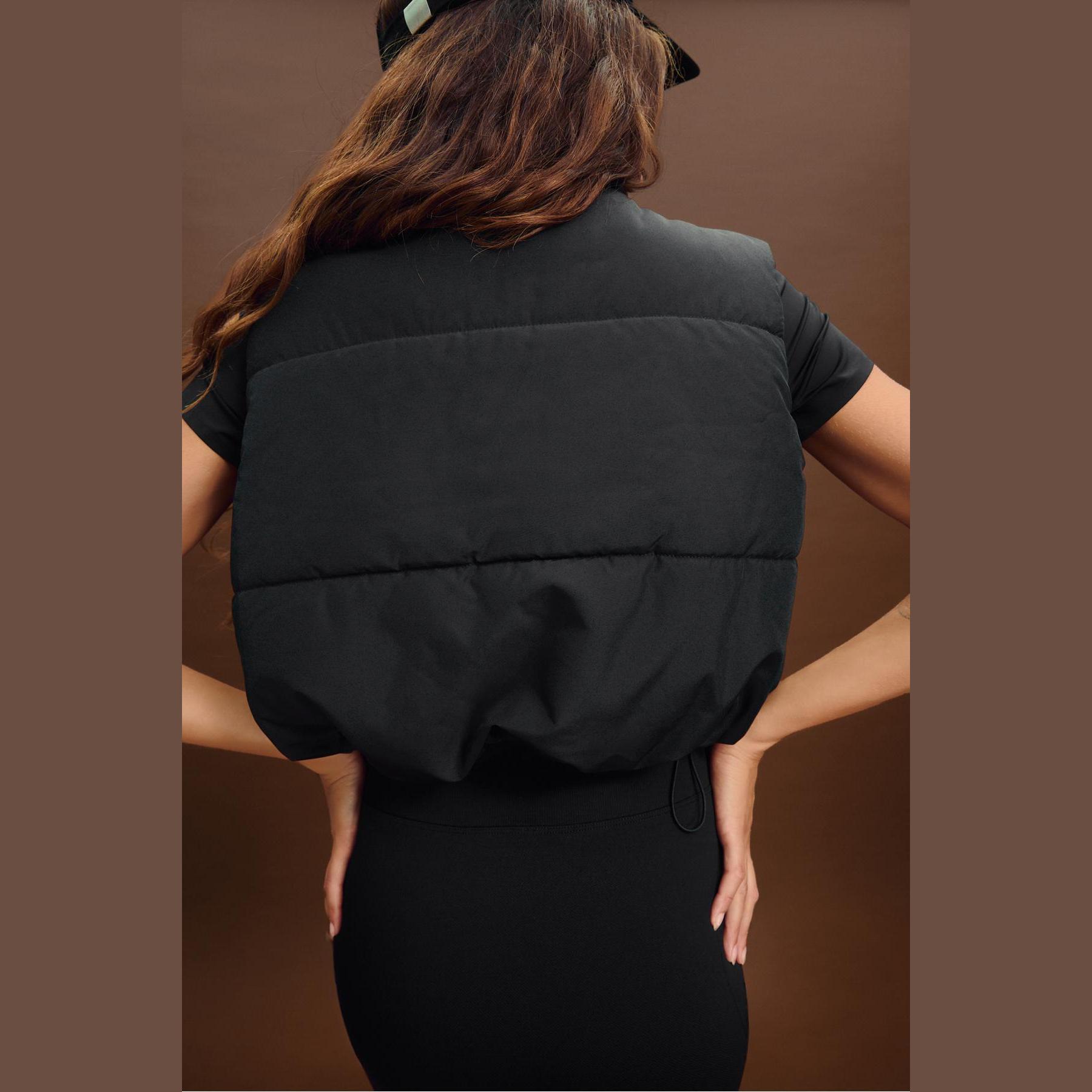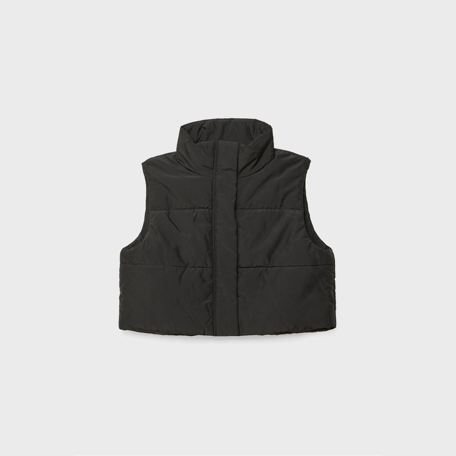 فيست كابيتوني قصير مبطن بياقة نصف عالية – أسود من Stradivarius