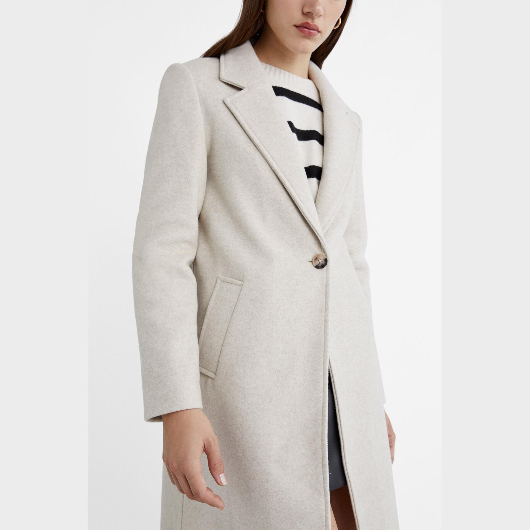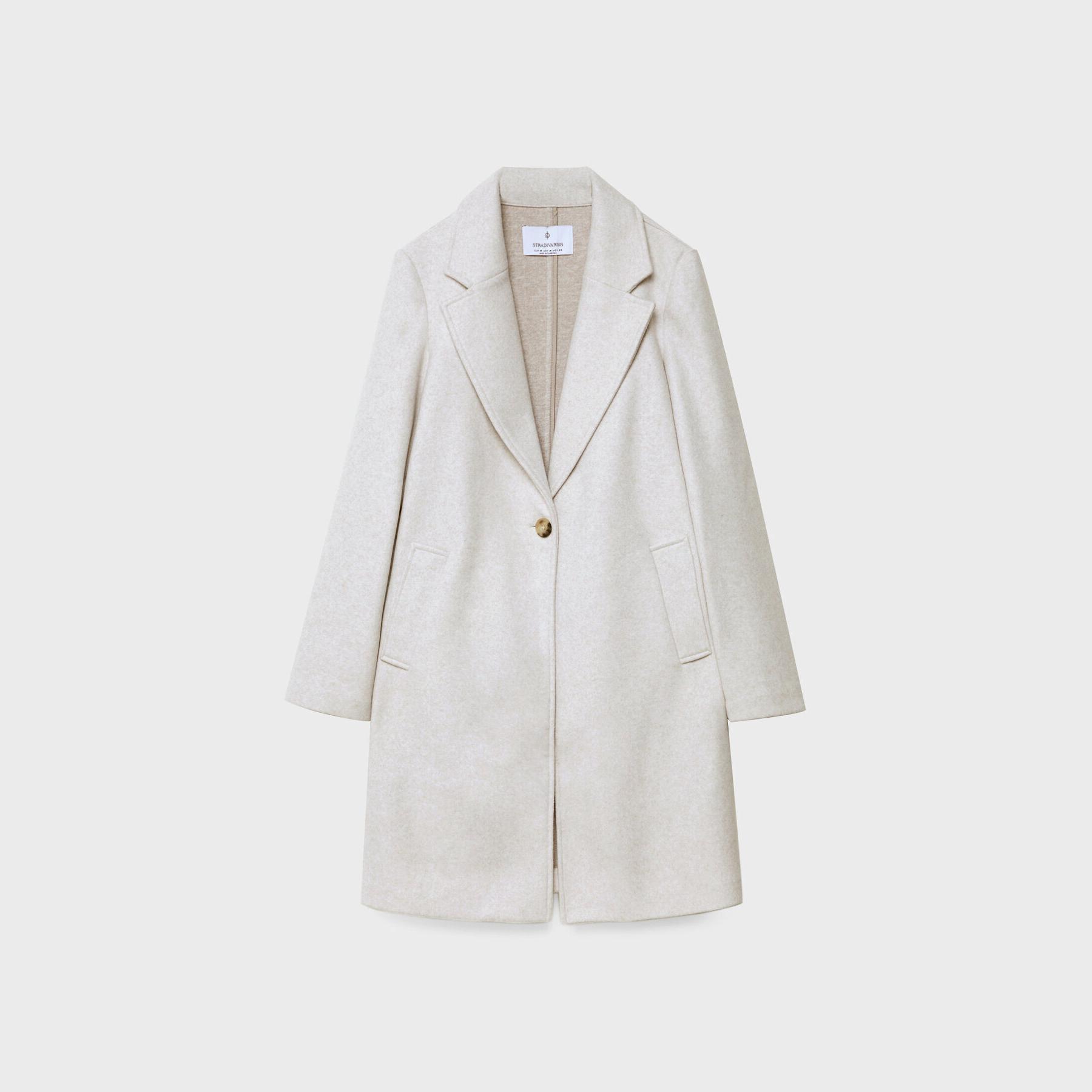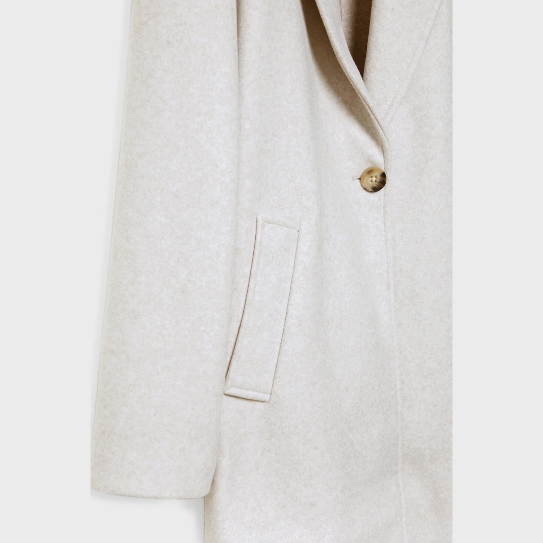 كابان أنيق من Stradivarius بلون إكرو ناعم، مصنوع من خامة منسوجة ناعمة بملمس مريح، بياقة جاكيت كلاسيكية وقصة Slim، يتميز بزر واحد للإغلاق الأمامي وجيوب جانبية عملية، يمنحك إطلالة أنيقة وعملية من النهار حتى المساء.
