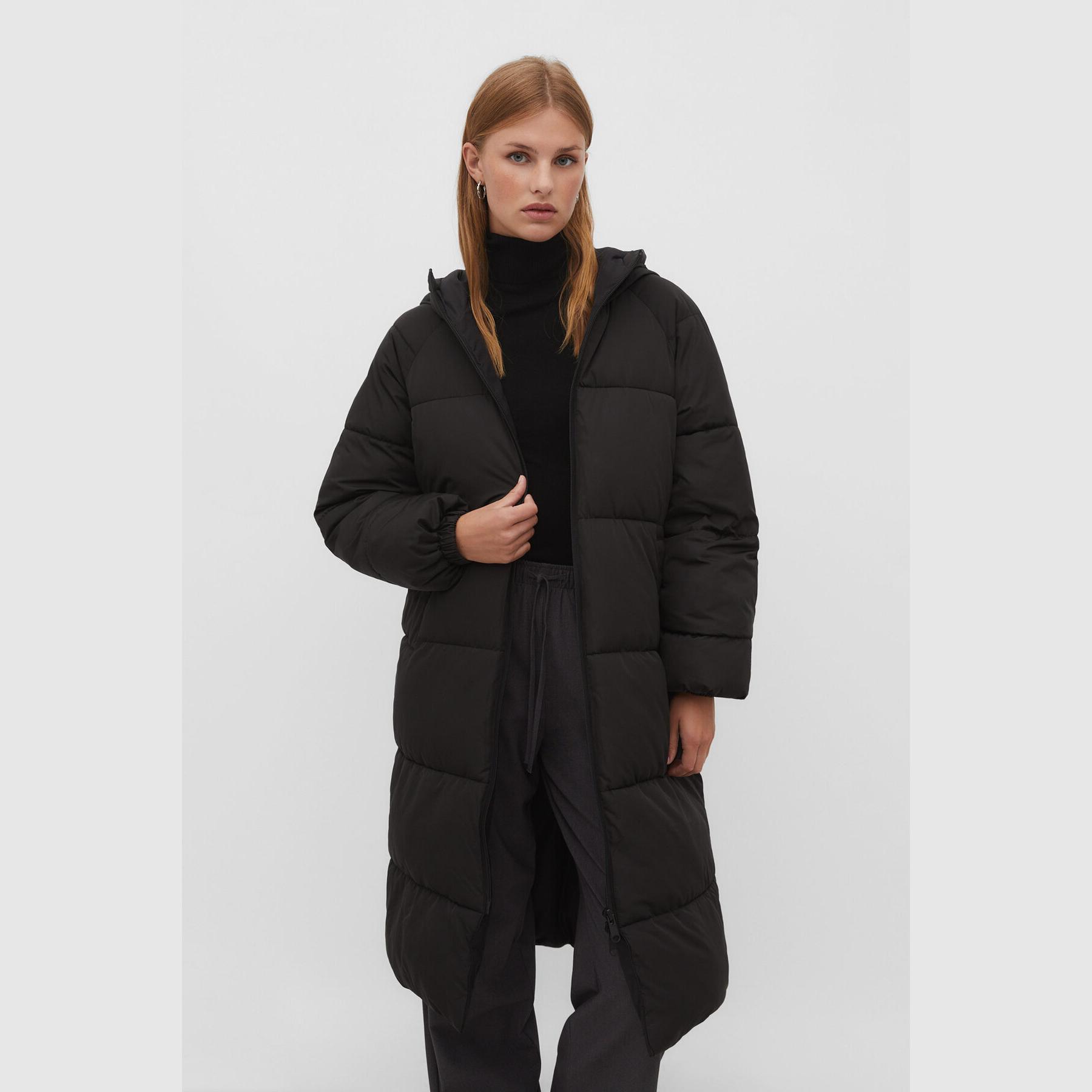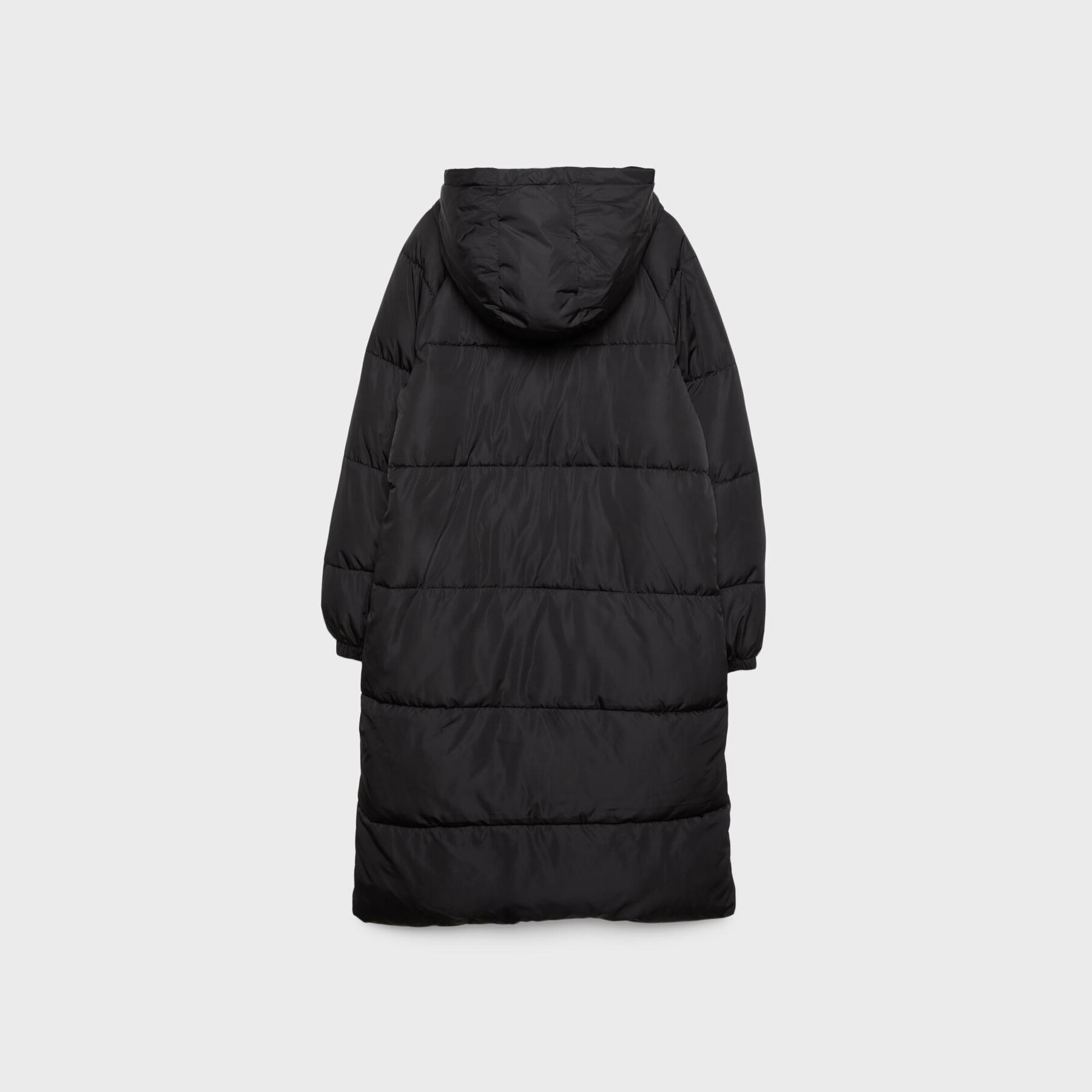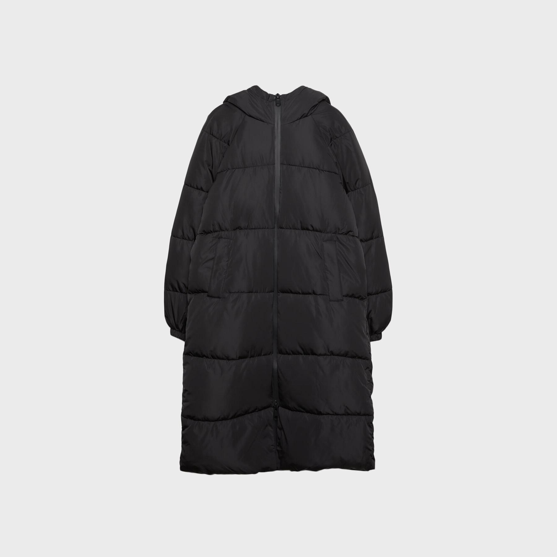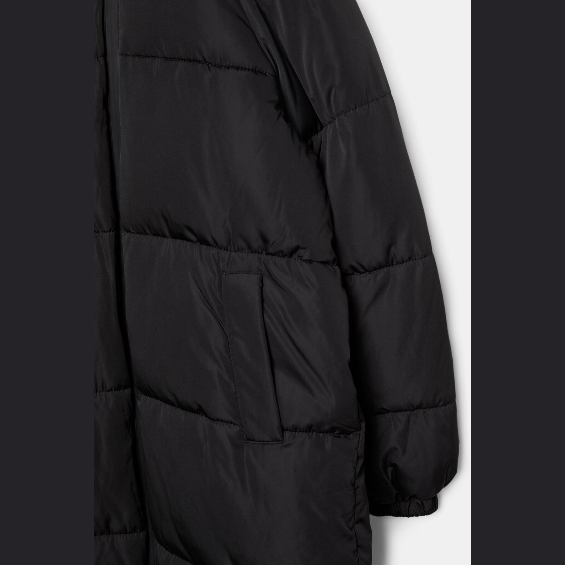 كابان طويل شتوي مبطن بقصة Long Fit وياقة بغطاء رأس – أسود من Stradivarius