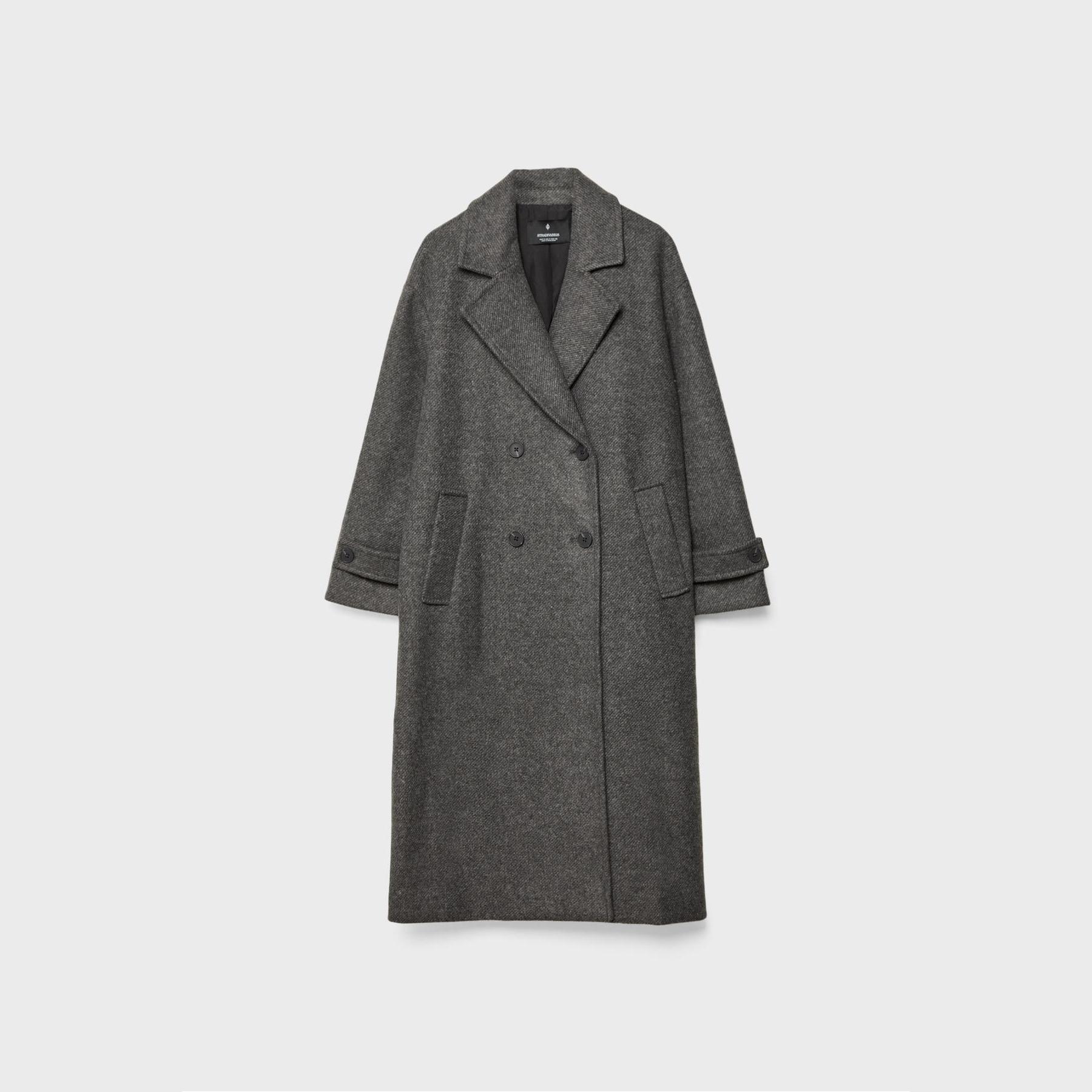 - الخصائص: قصة Oversize، ياقة كروڤاز، أكمام طويلة بأطراف مشدودة وزر، جيوب جانبية بيات، بدون بطانة