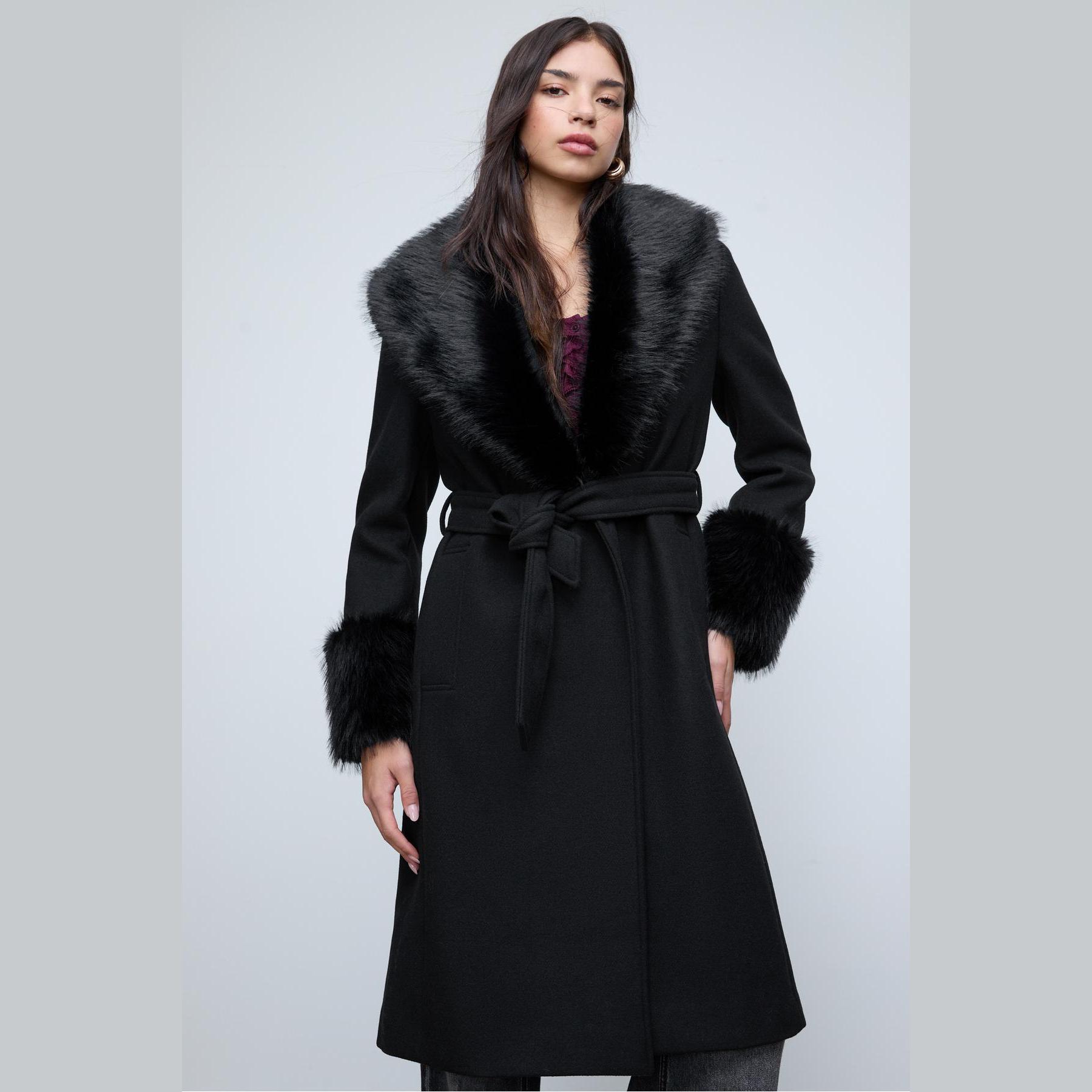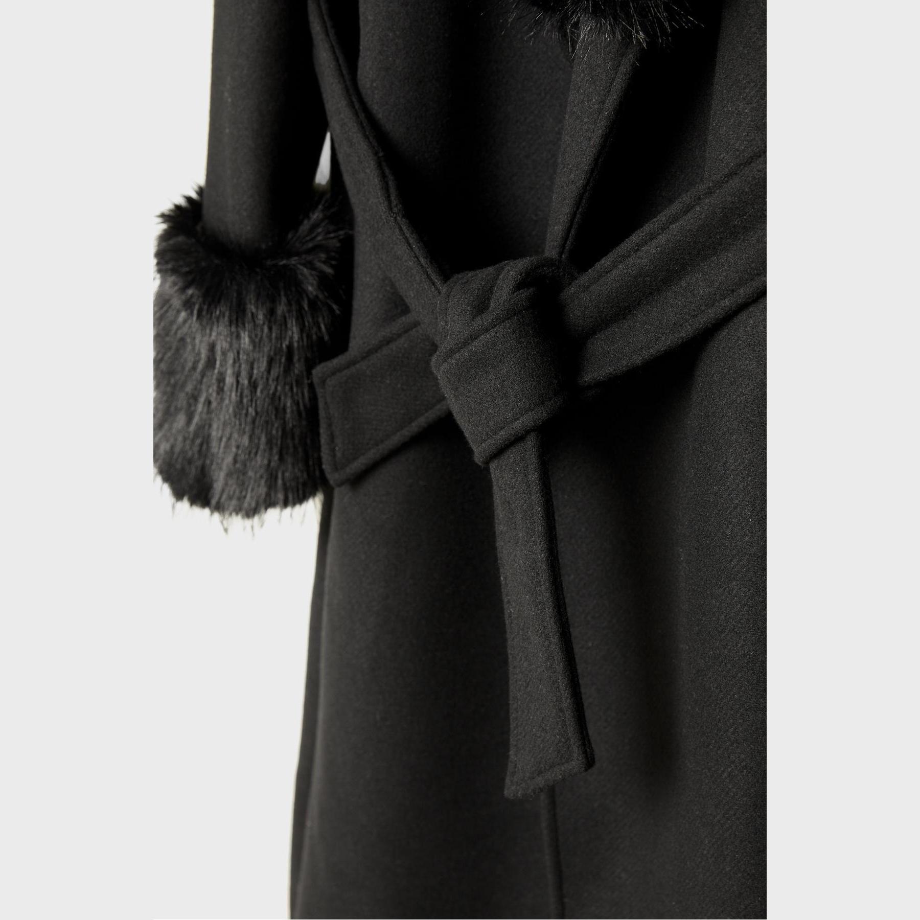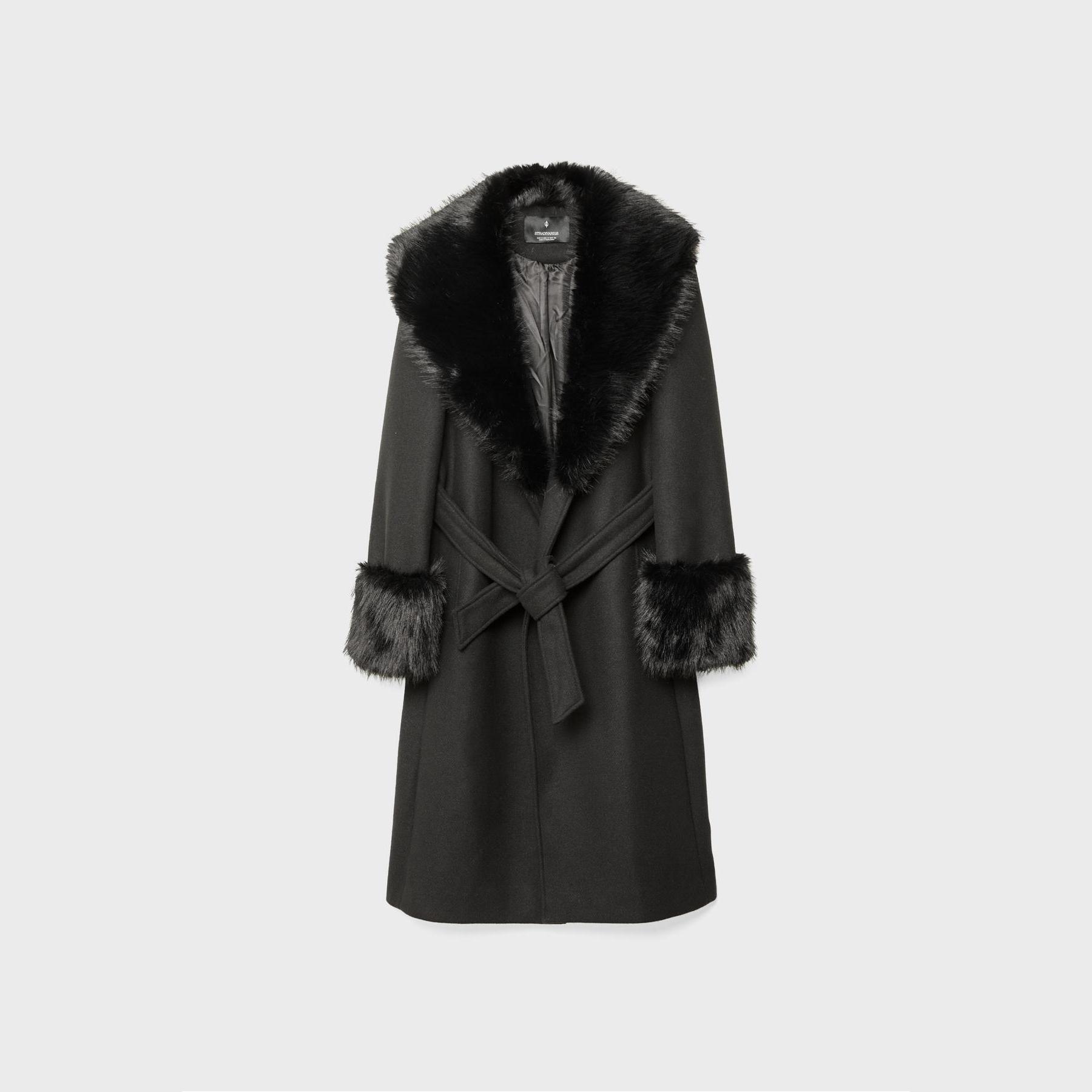 كابان طويل بياقة عالية وتفاصيل سُني فرو قابلة للإزالة – أسود من Stradivarius