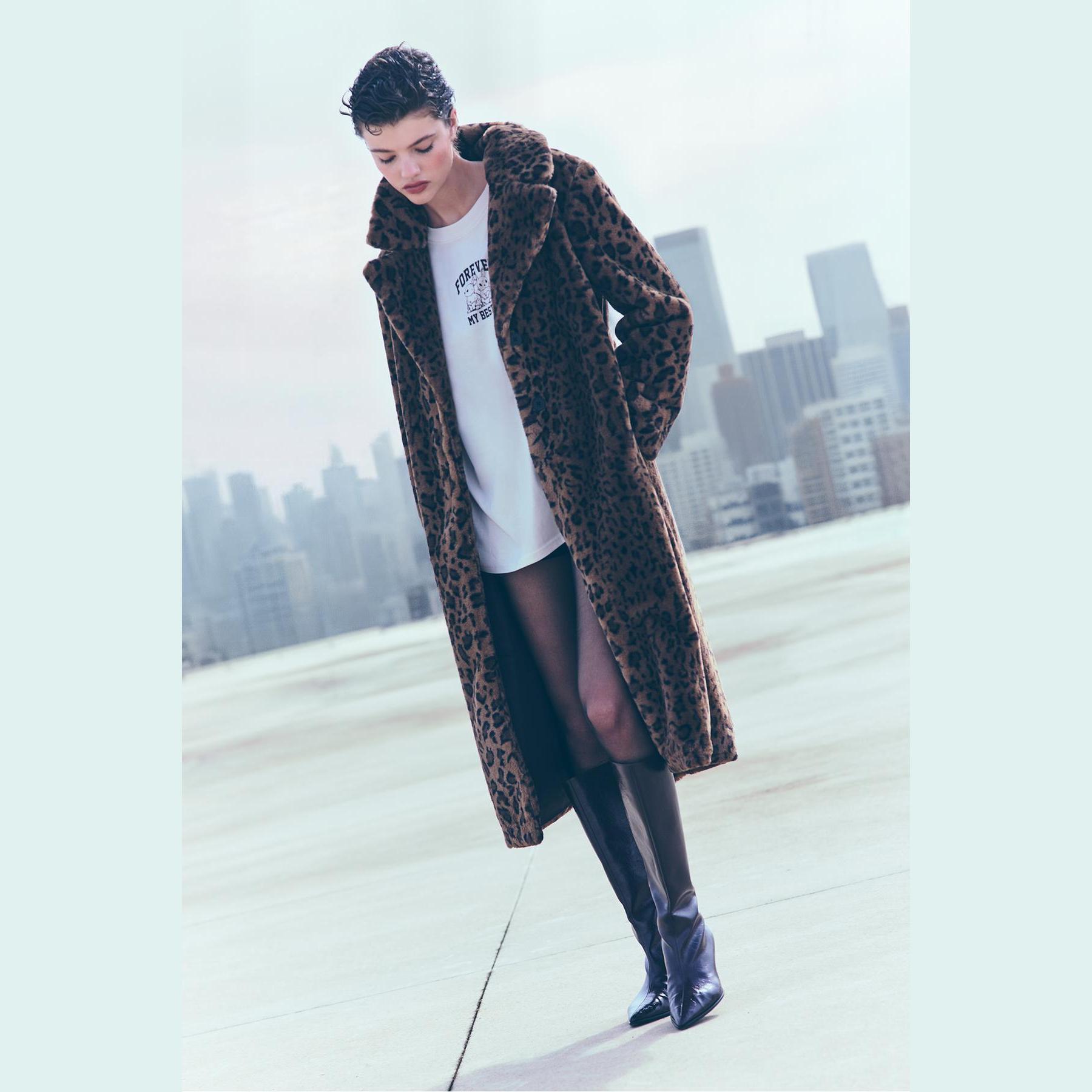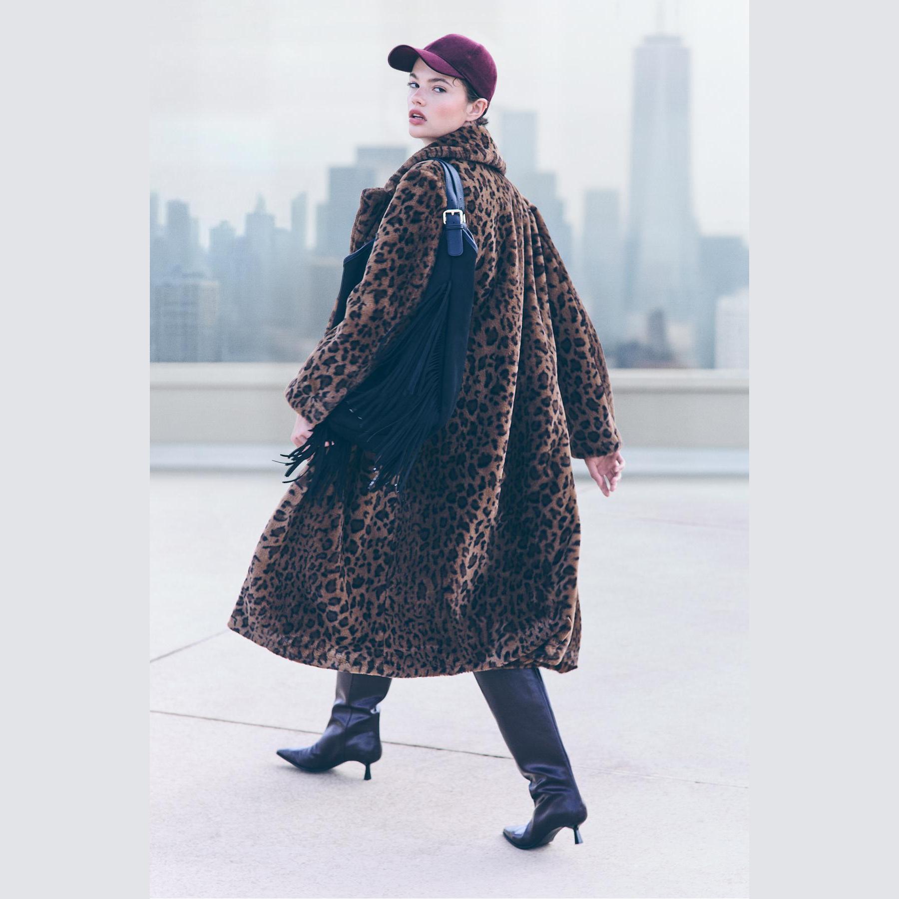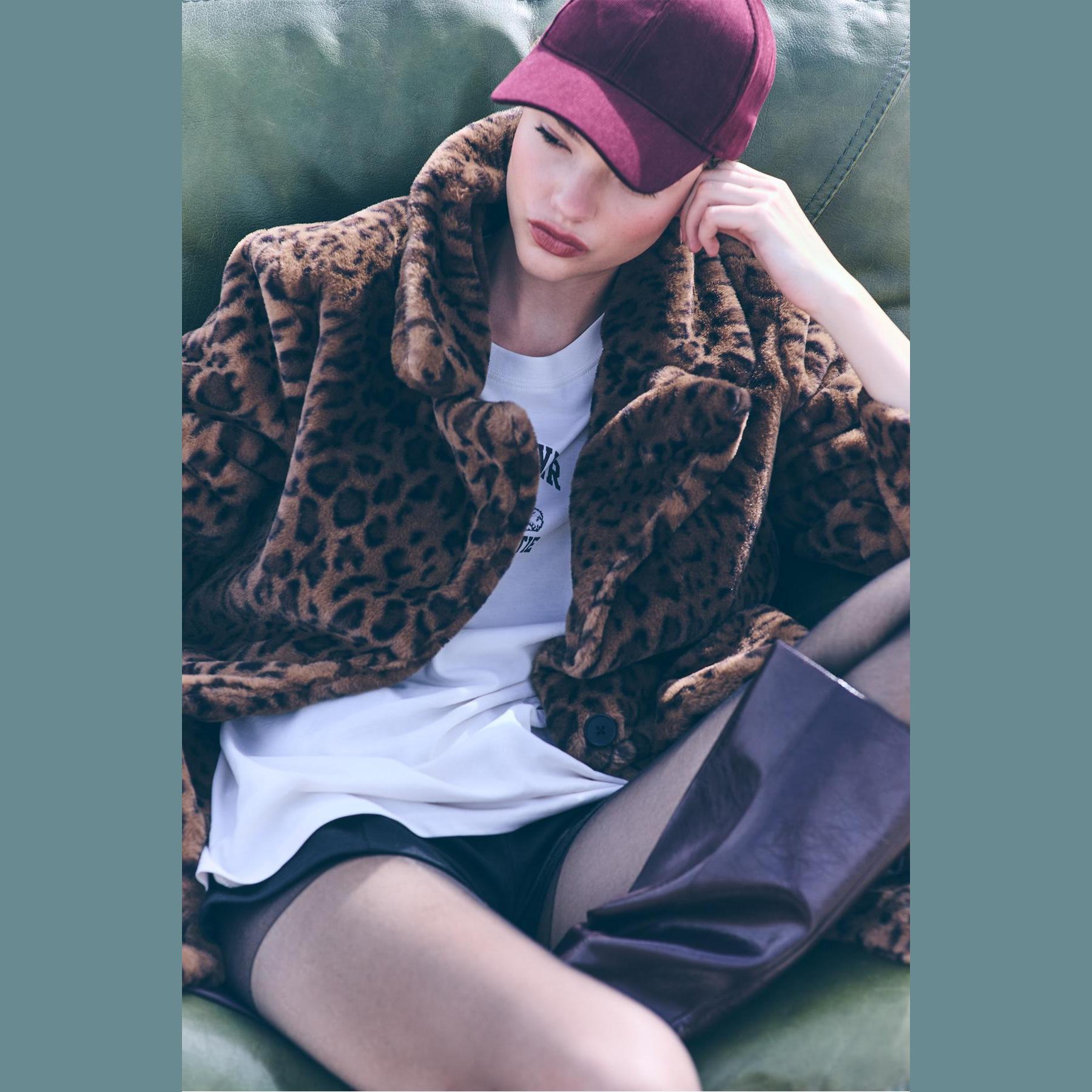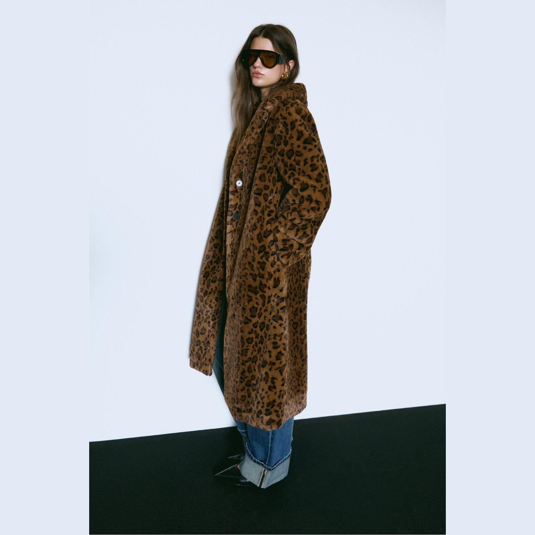 كابان شتوي مميز من Stradivarius بلون بيج بنقشة ليوبارد، مصنوع من خامة سُني فرو ناعمة بتركيبة 100% بوليستر، بياقة عالية وقصة Oversize تمنحك مظهرًا عصريًا وراحة مثالية، يتميز بإغلاق أمامي بالأزرار، أكمام طويلة، وجيوب جانبية، مثالي للتنسيق مع بناطيل جينز أو قطع كاجوال لإطلالة شتوية جريئة ومريحة.