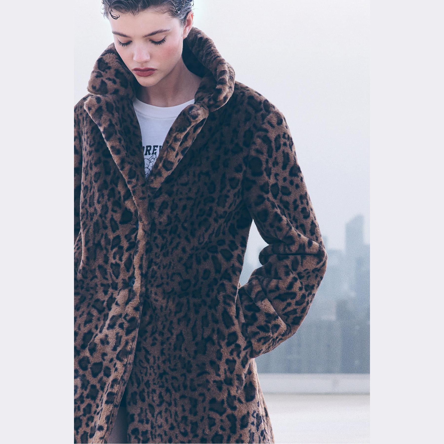 كابان طويل من سُني فرو بنقشة ليوبارد وقصة Oversize – بيج من Stradivarius