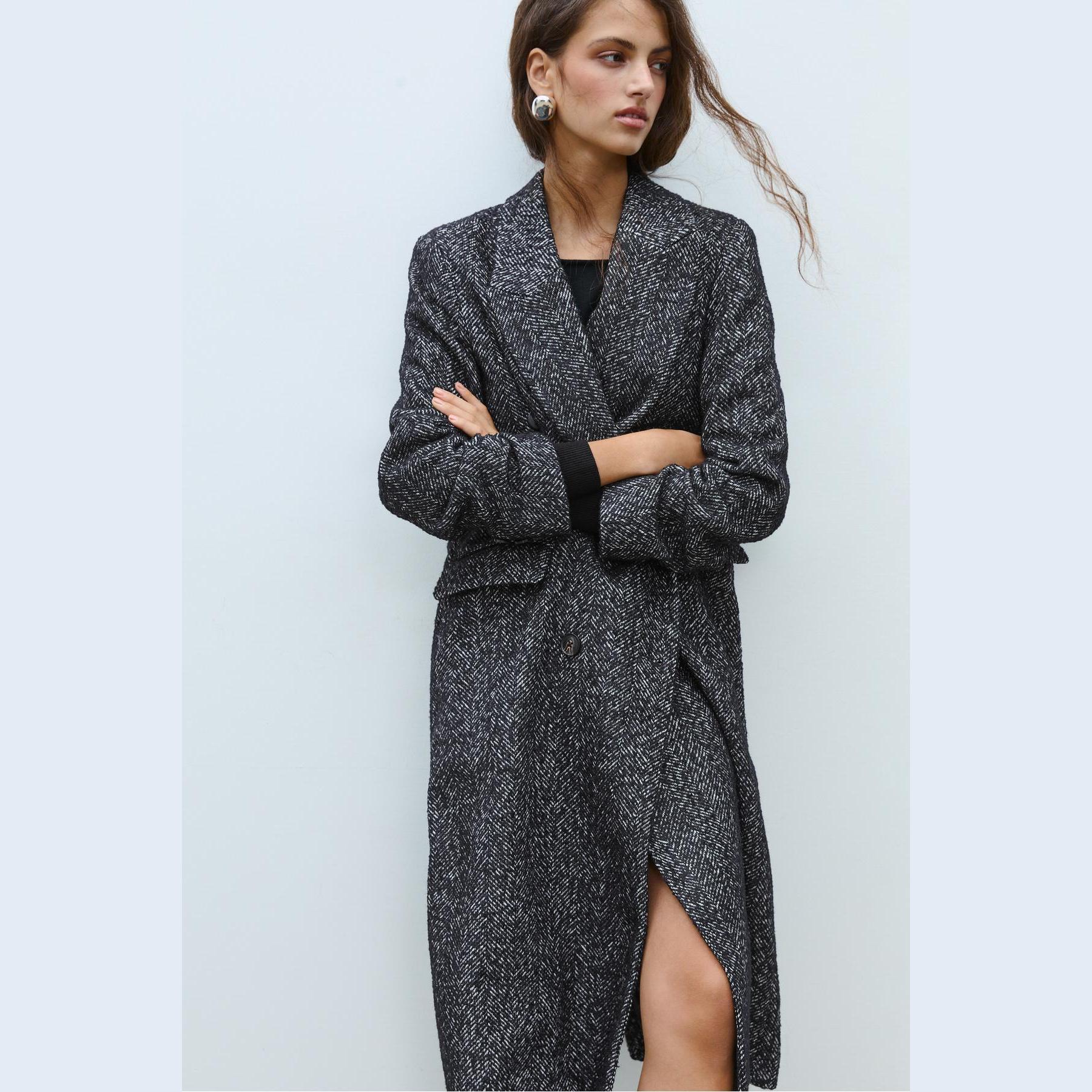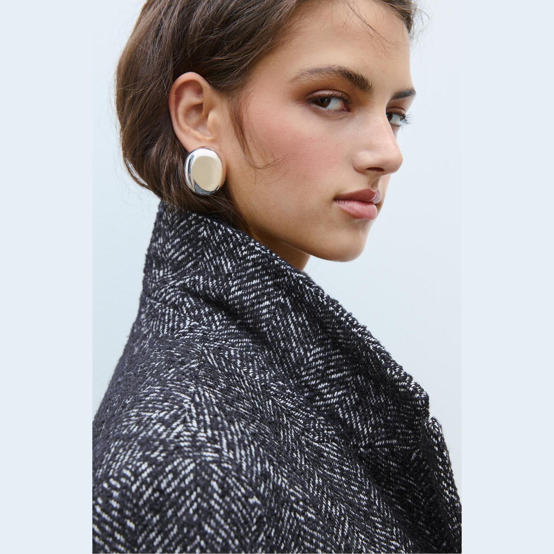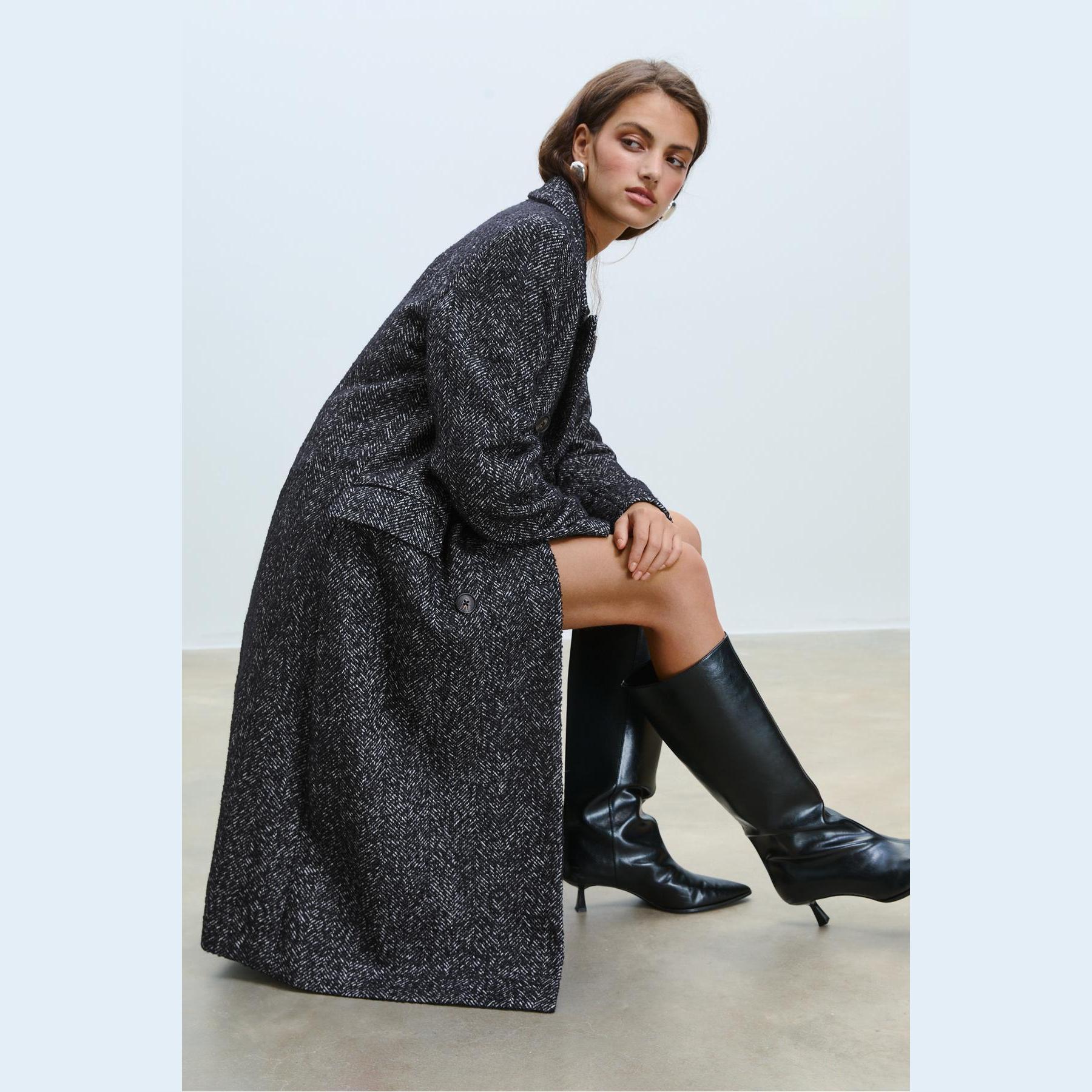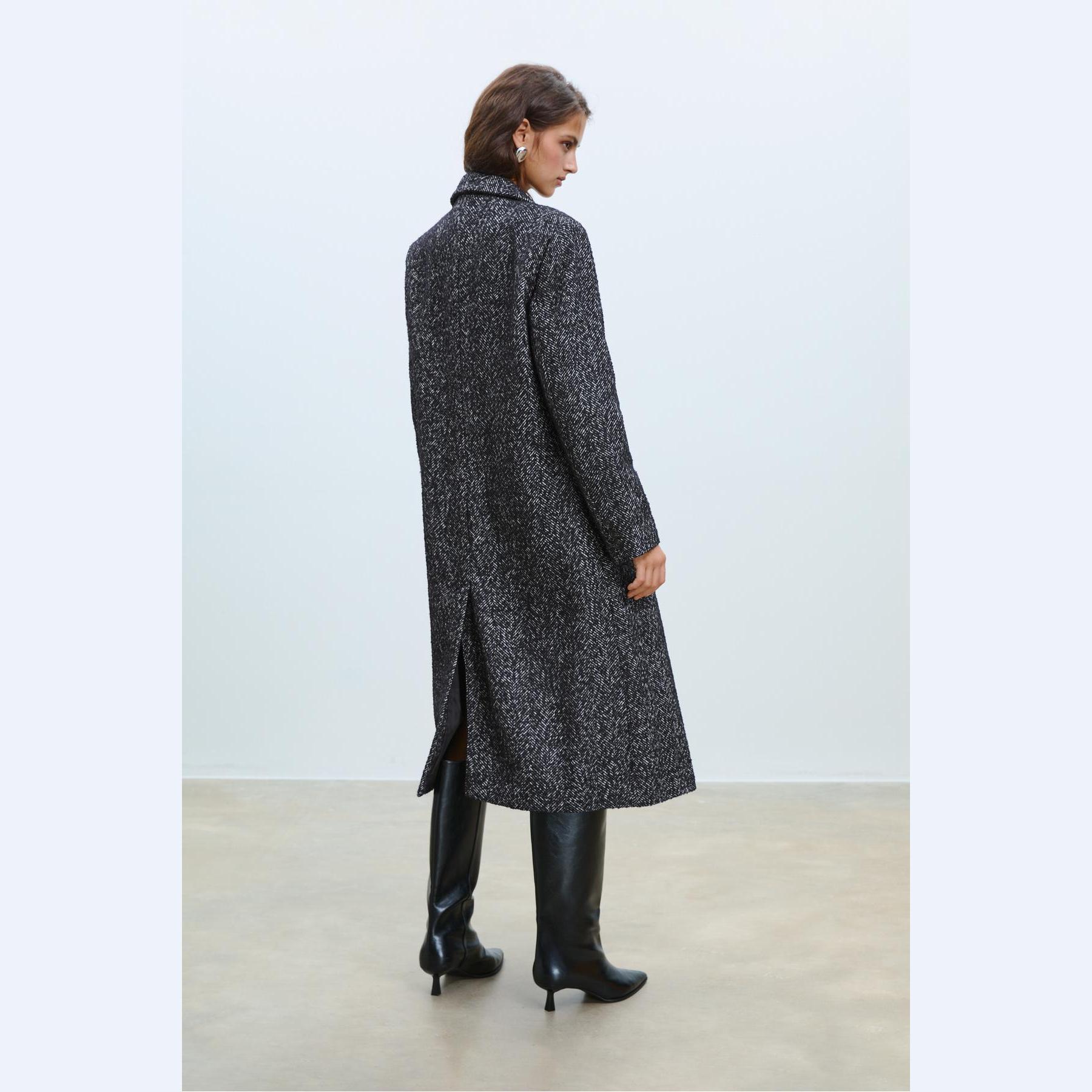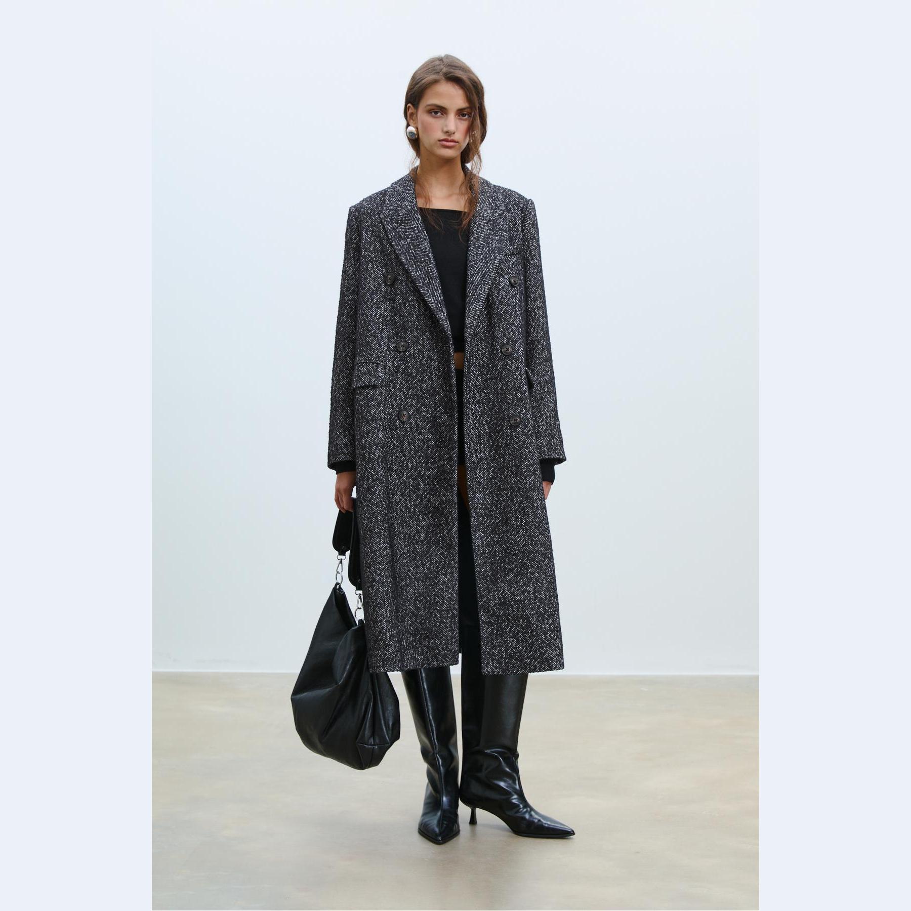 كابان أنيق من Stradivarius بلون أسود كلاسيكي، مصنوع من خامة منسوجة بنقشة البالِك سِرتي بتركيبة 100% بوليستر، بياقة عالية وقصة Oversize تمنحك مظهرًا عصريًا وراحة مثالية، يتميز بإغلاق أمامي متقاطع بالأزرار، أكمام طويلة بأزرار عند الأطراف، وجيوب أمامية بغطاء، مثالي للتنسيق مع بناطيل جينز أو قطع رسمية لإطلالة شتوية متناسقة.