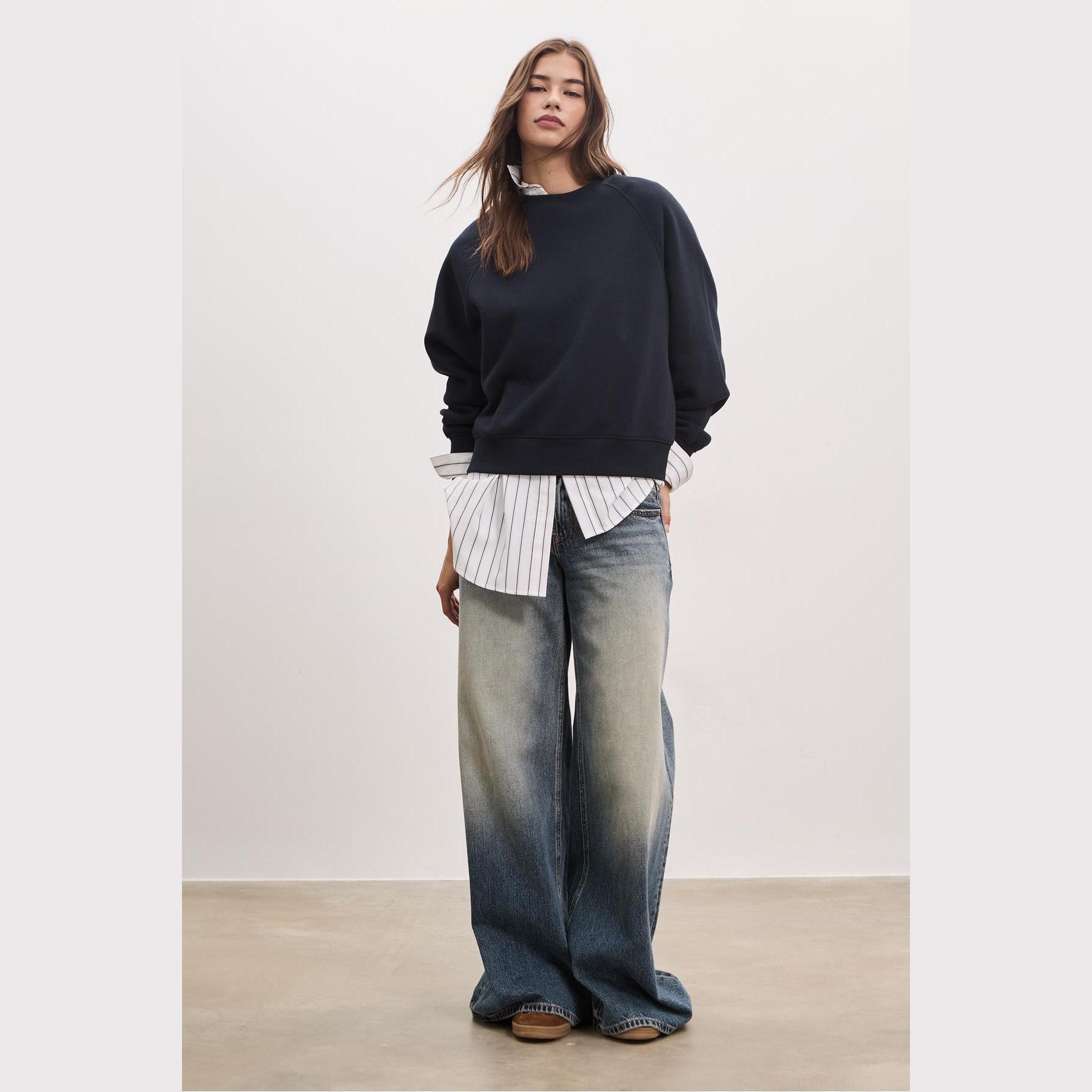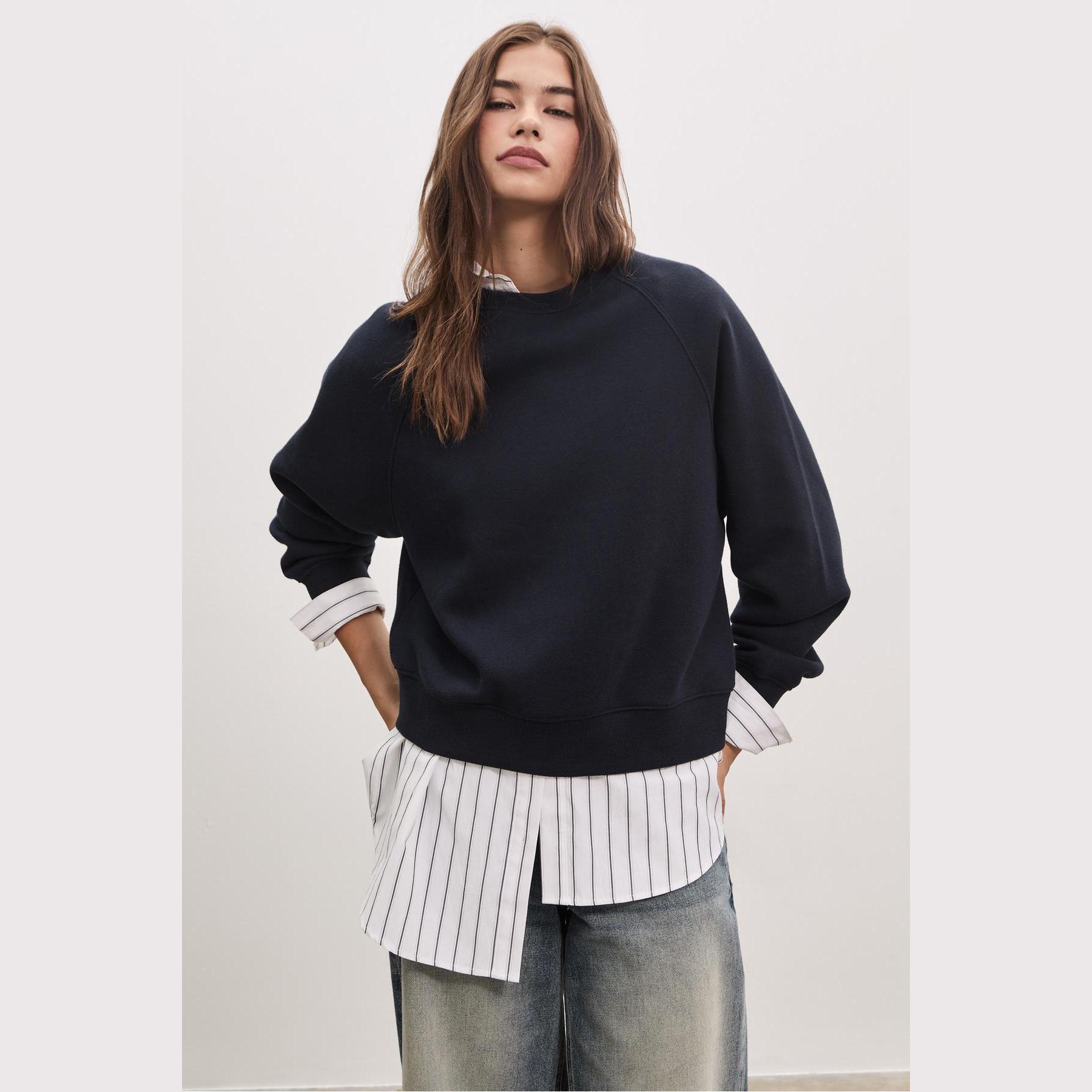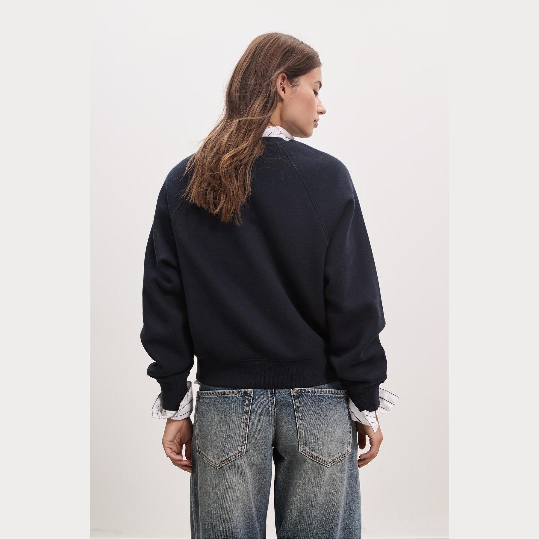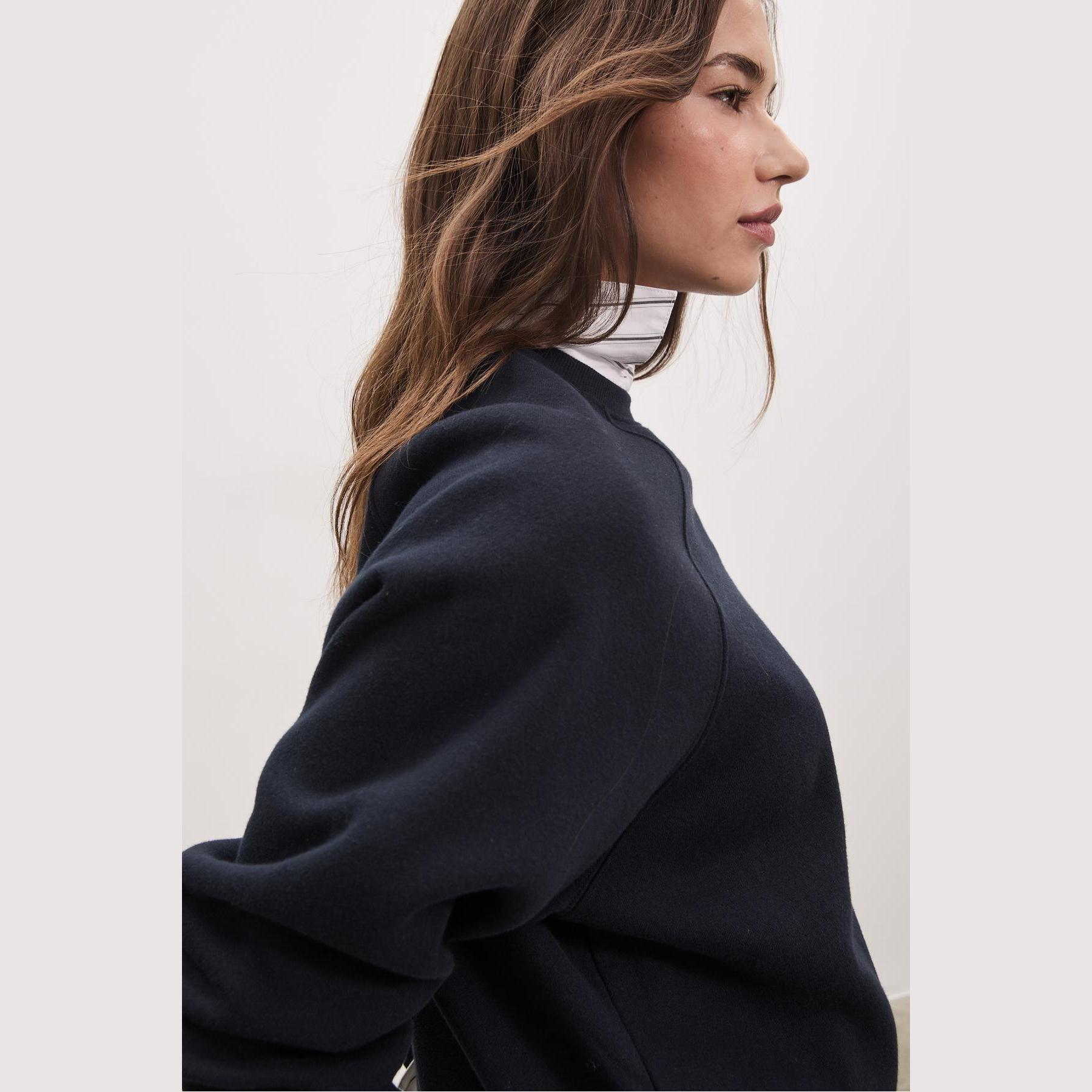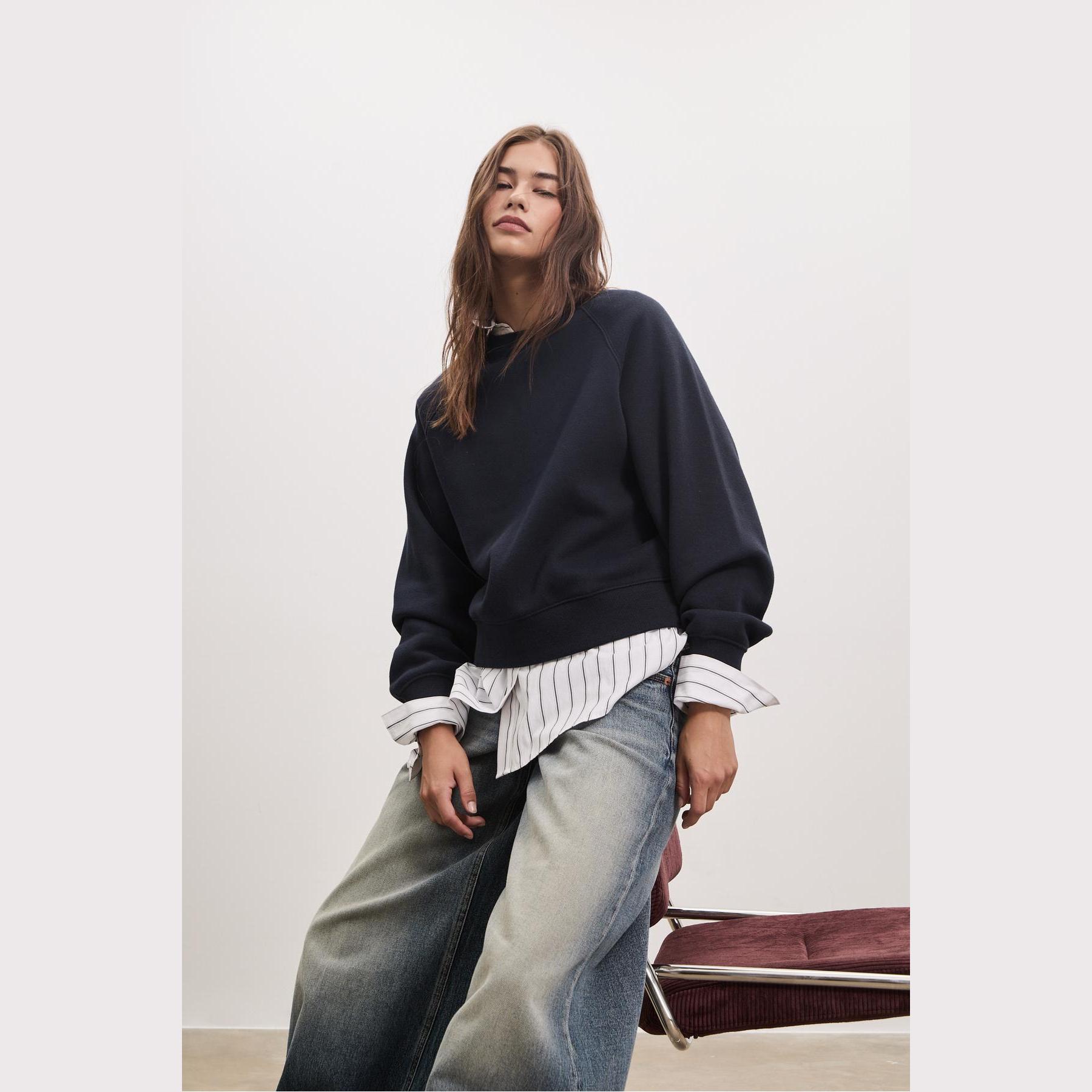 سويت شيرت Basic بفتحة رقبة دائرية وقصة مريحة – كحلي داكن من Stradivarius