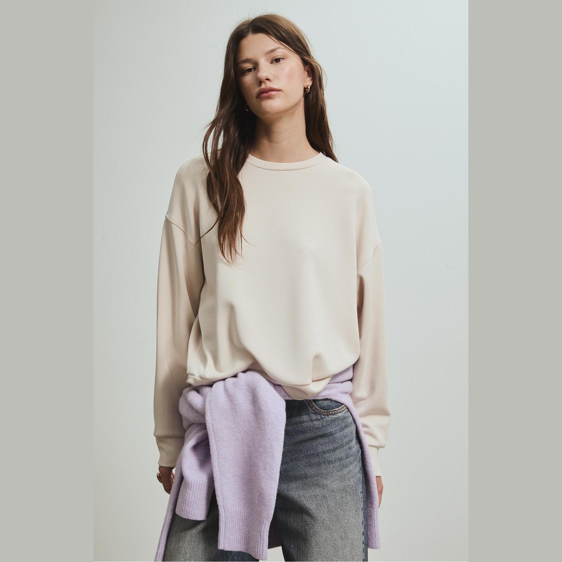 سويت شيرت Basic بملمس ناعم وقصة مريحة – كريمي من Stradivarius