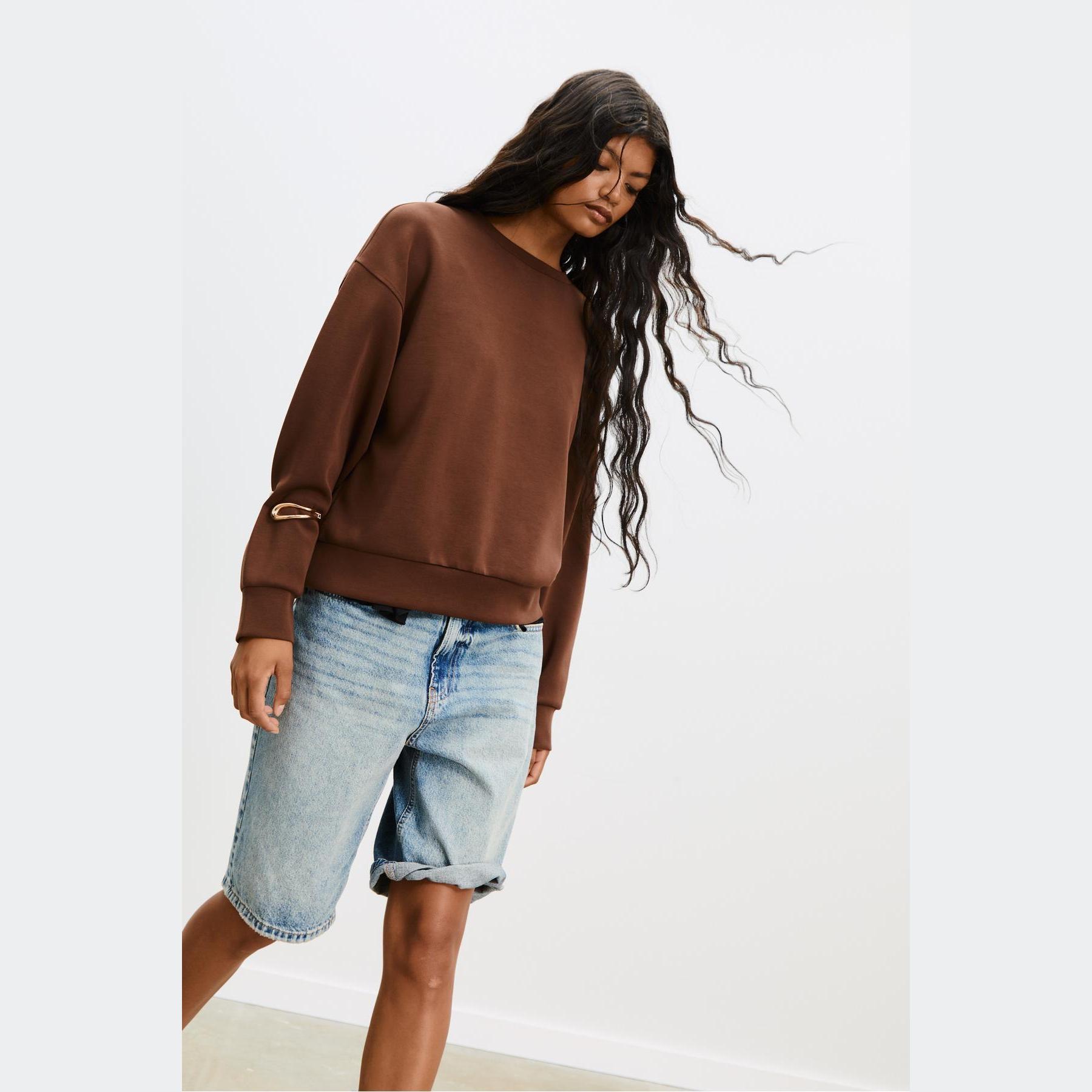 سويت شيرت Basic بملمس ناعم وقصة مريحة – بني من Stradivarius