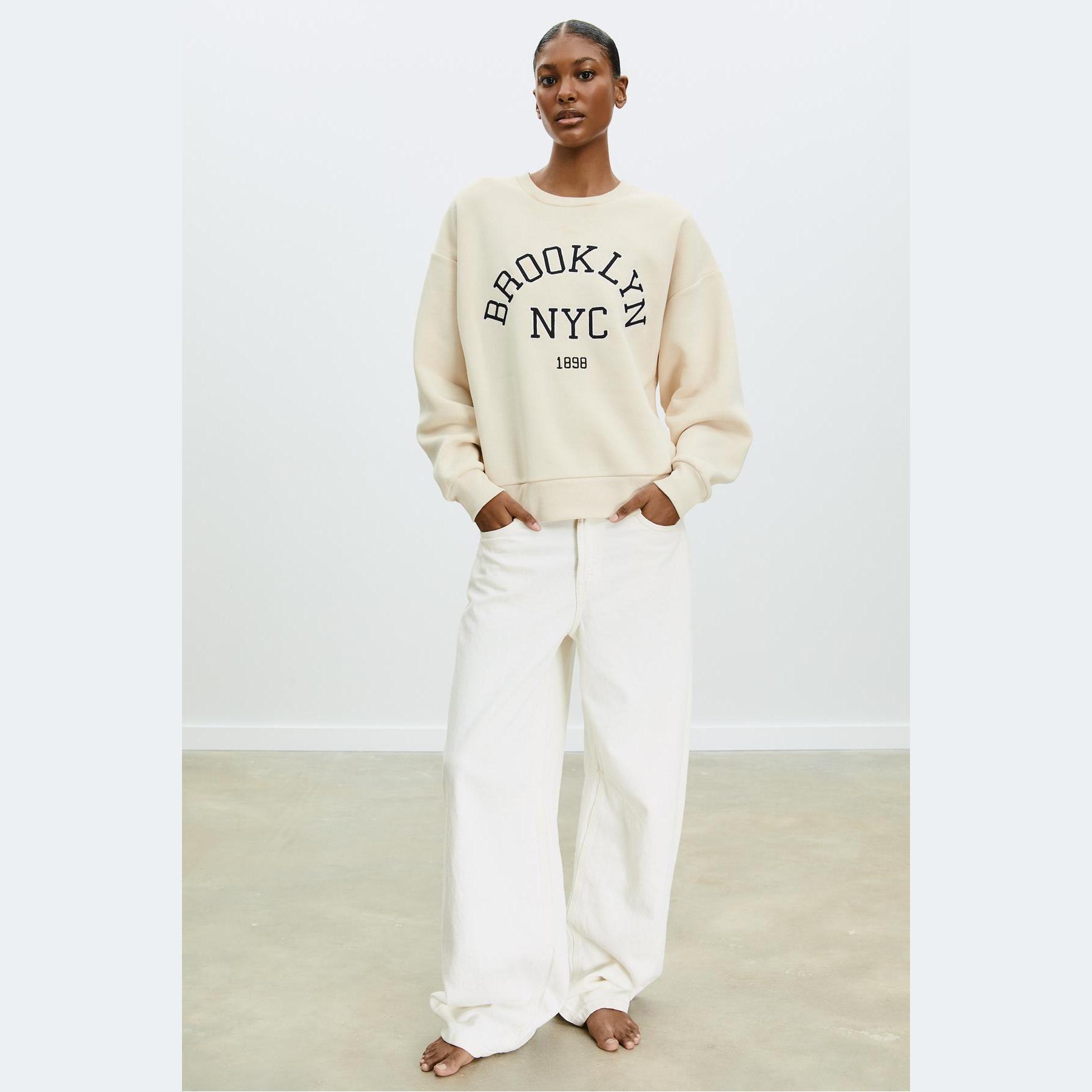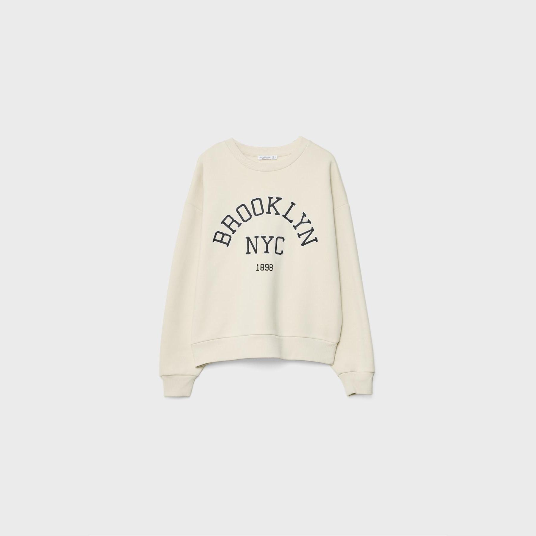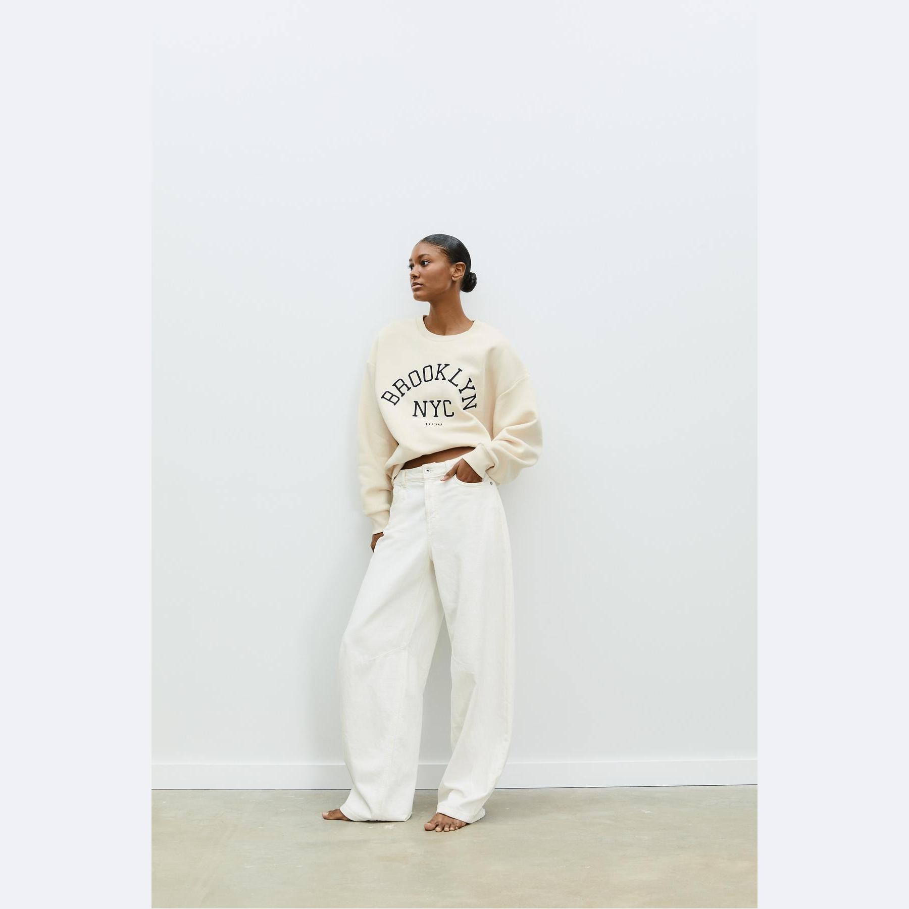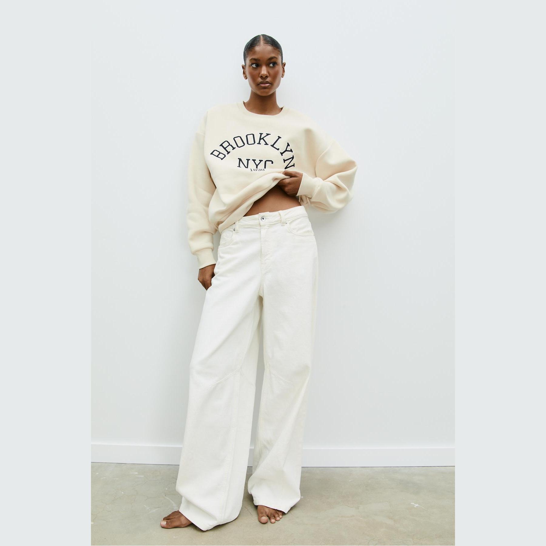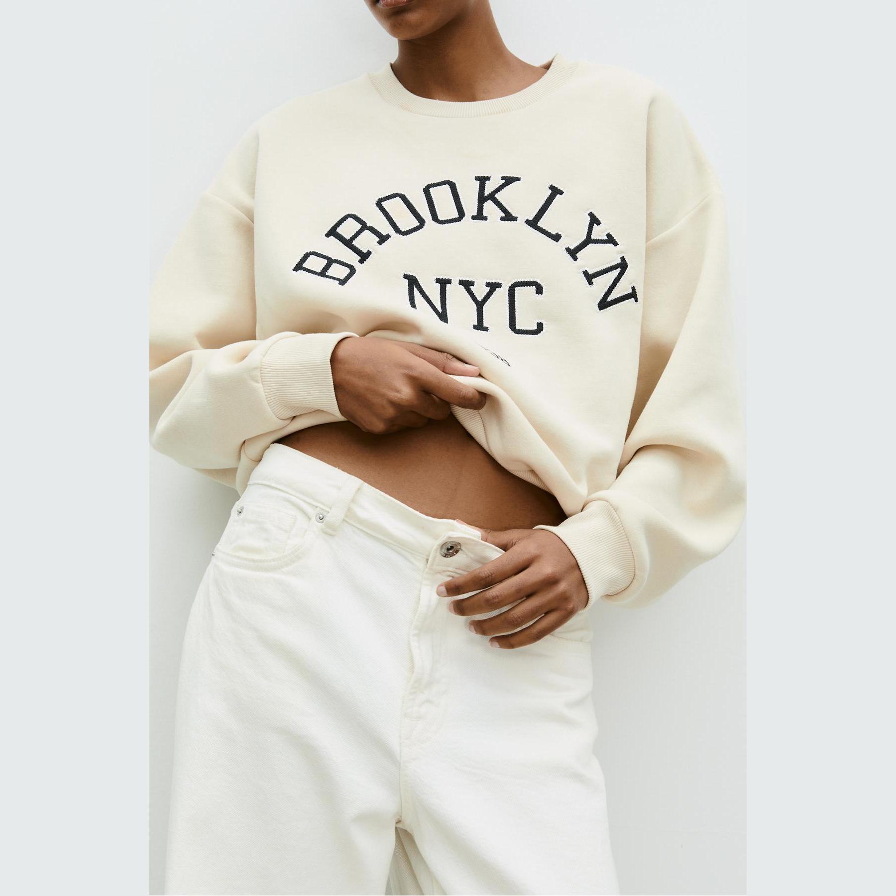 سويت شيرت مطرّز بقصة واسعة – كريمي من Stradivarius