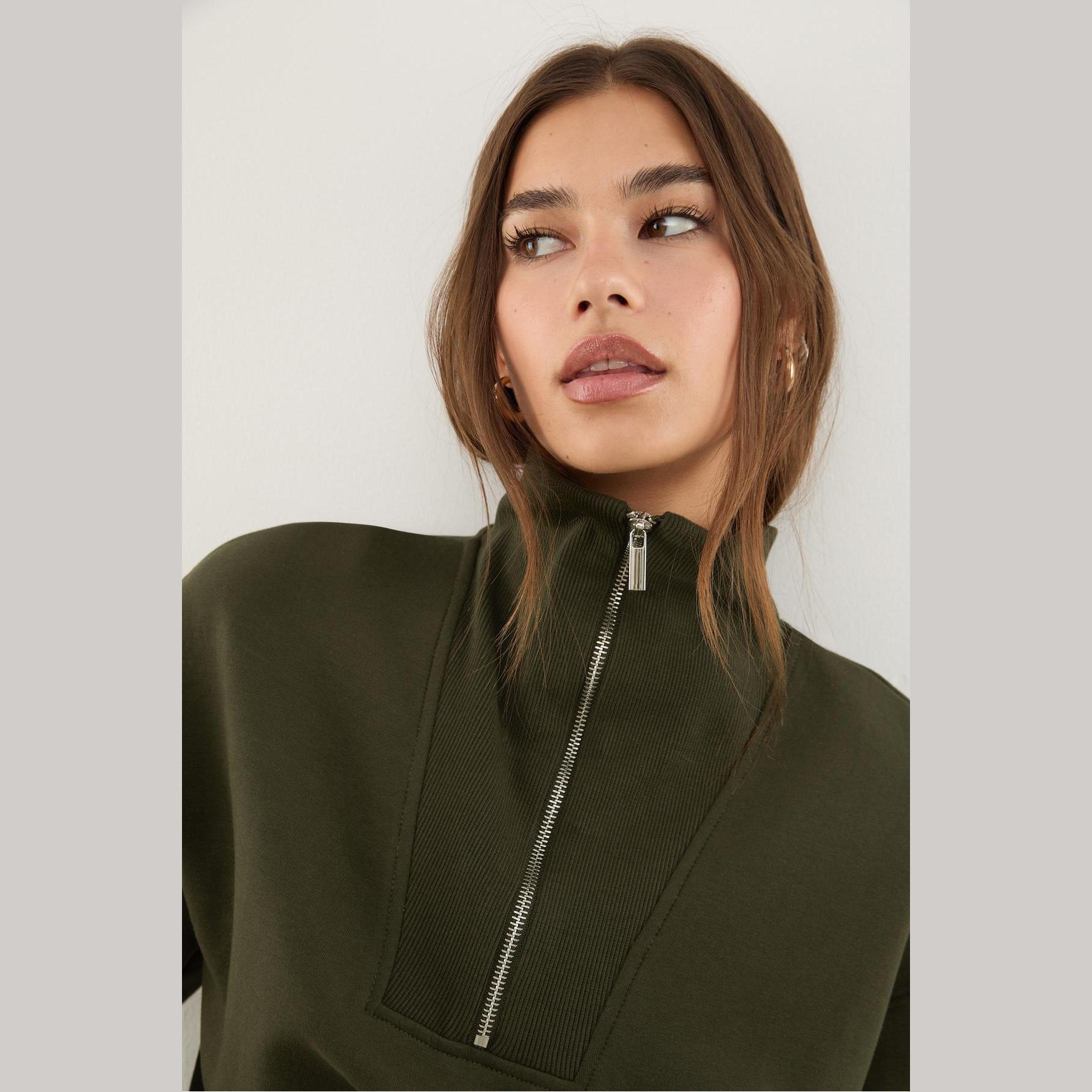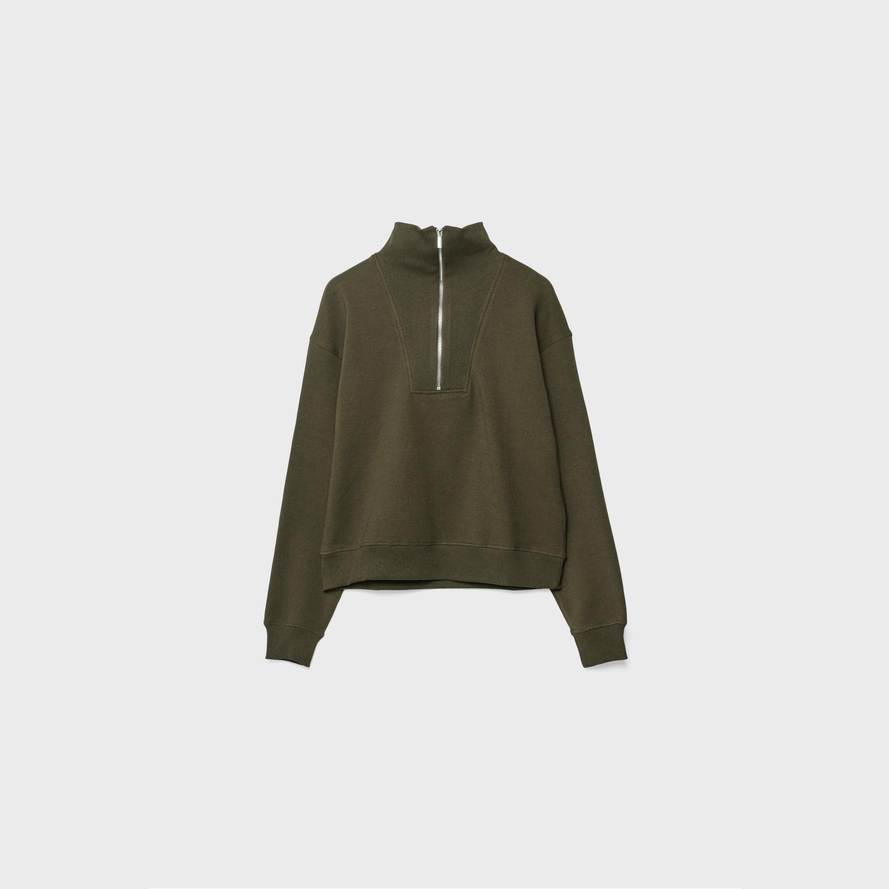 سويت شيرت بفتحة رقبة عالية وسحاب أمامي – أخضر داكن من Stradivarius