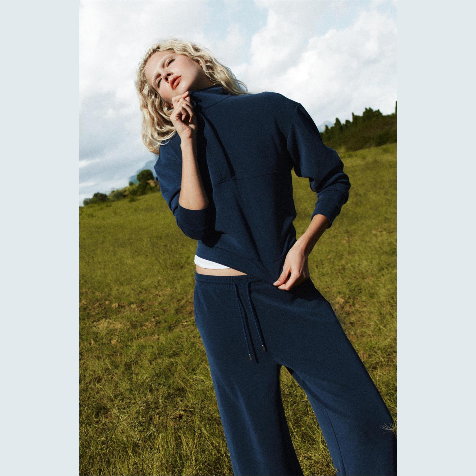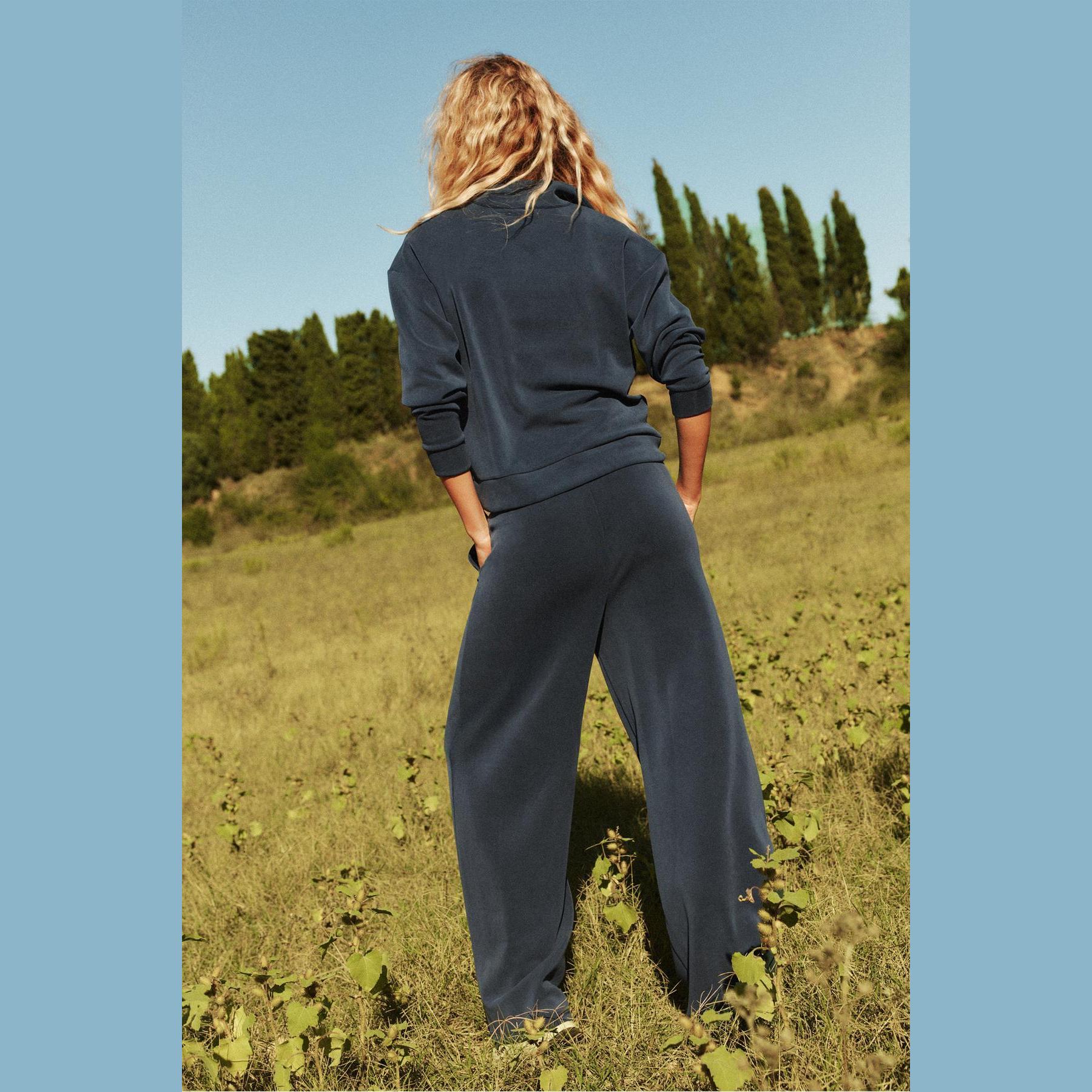 سويت شيرت بملمس ناعم وسحاب أمامي – كحلي من Stradivarius