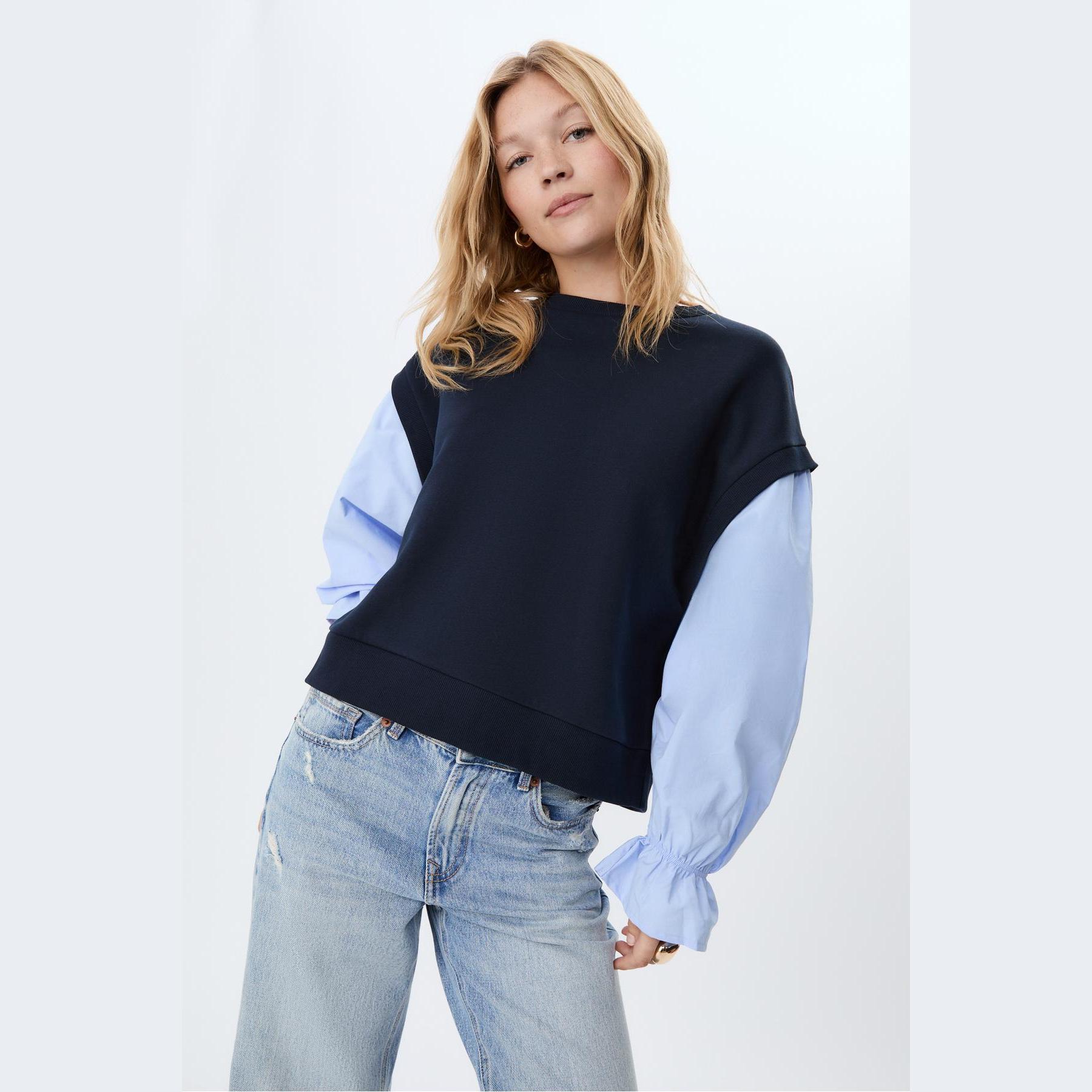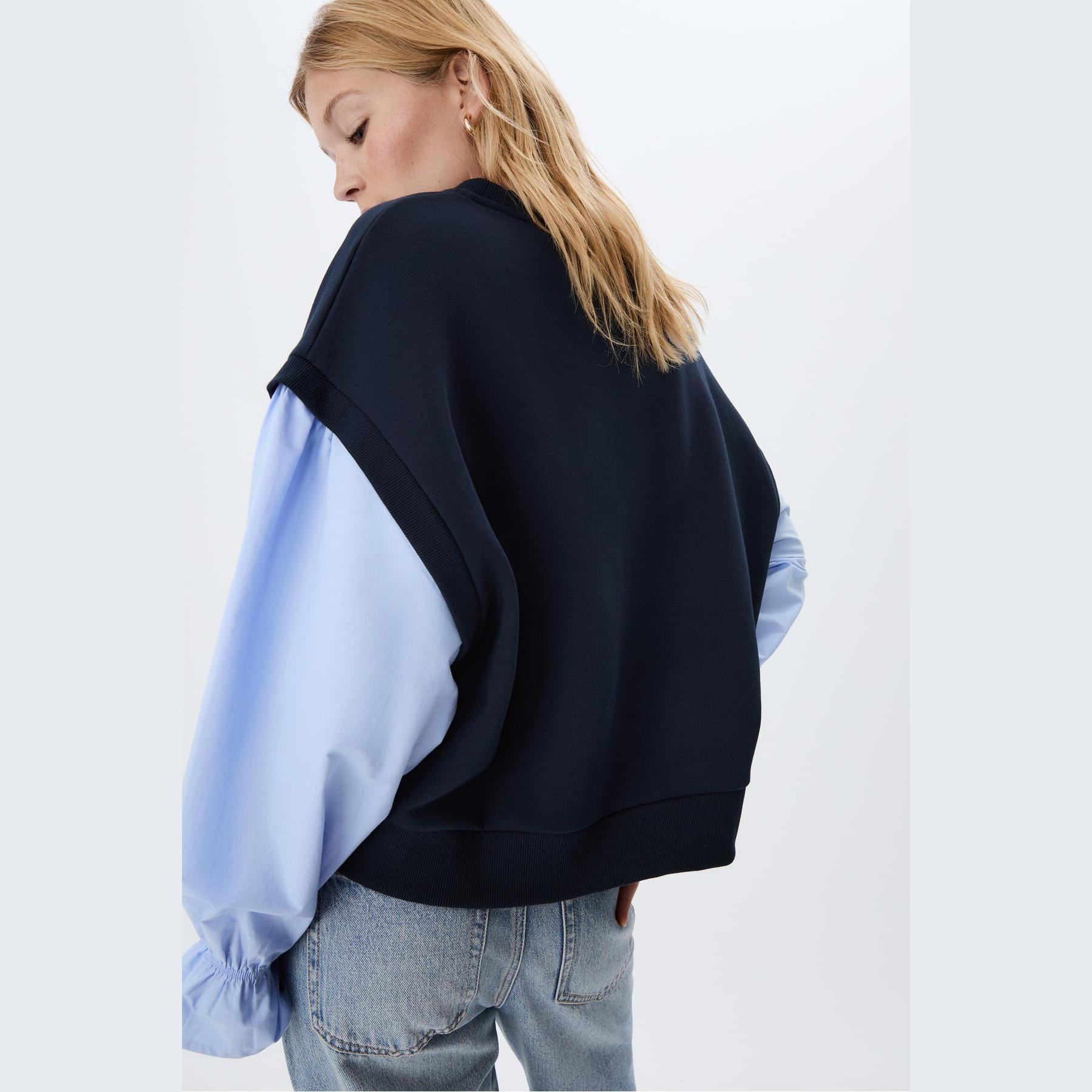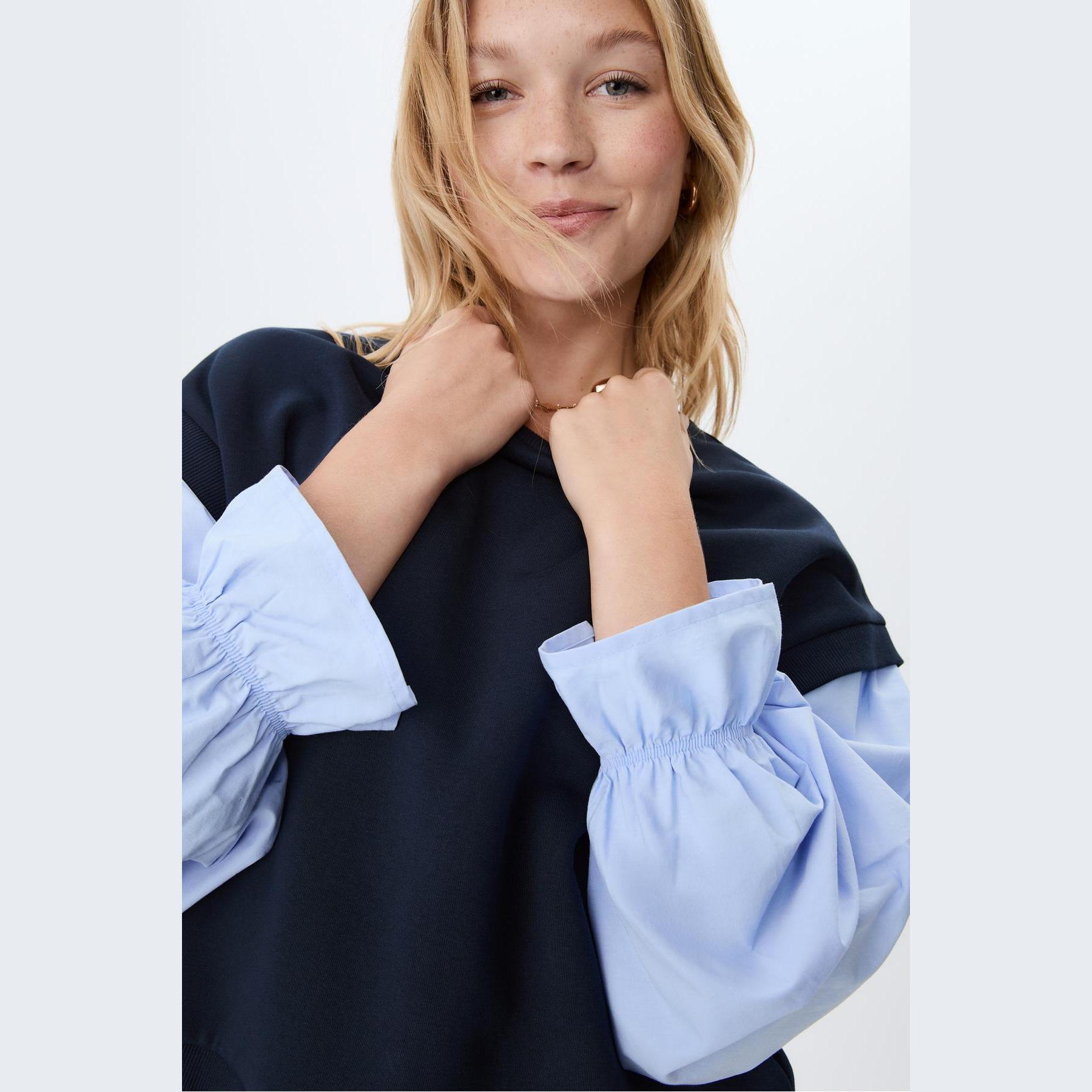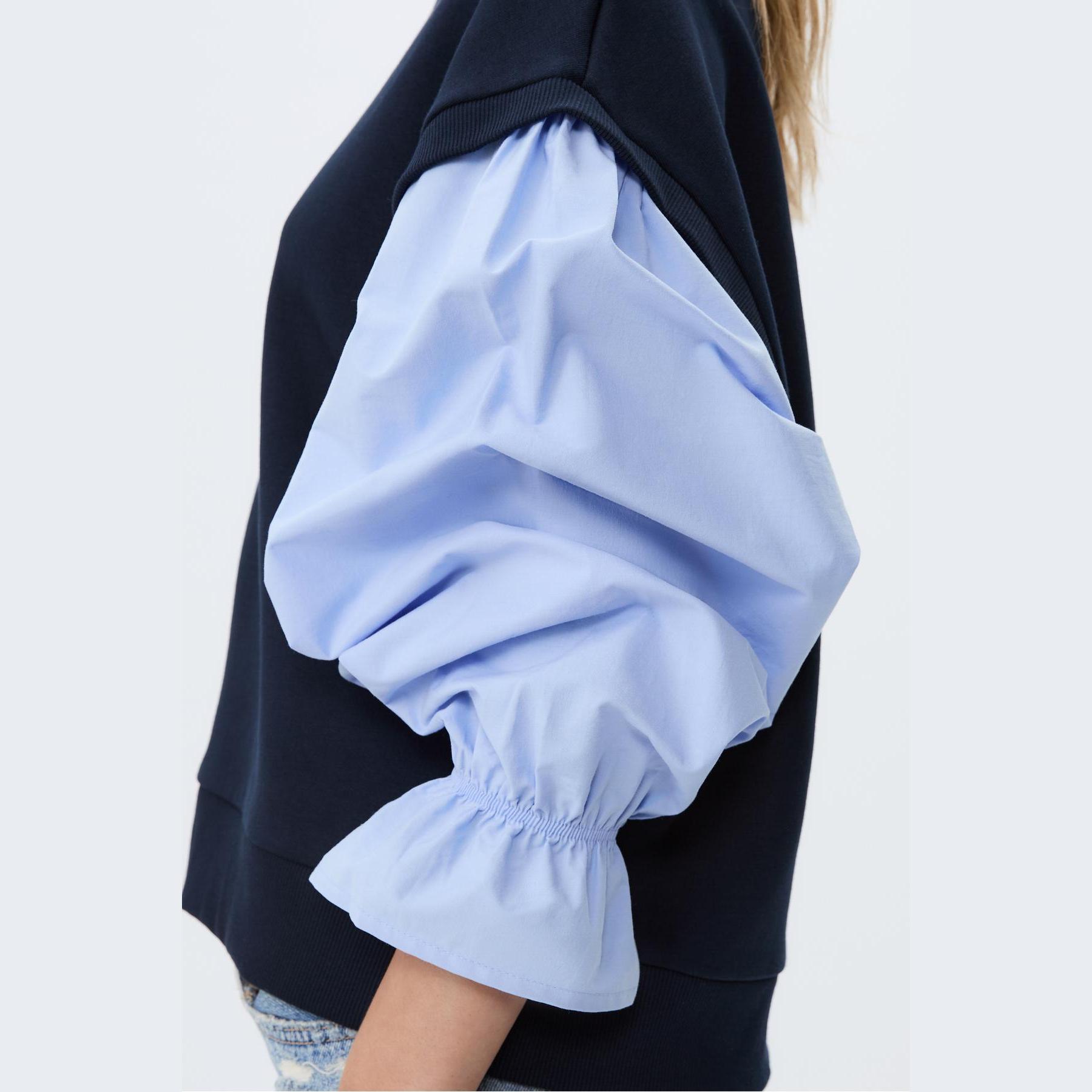 سويت شيرت بأكمام بالون مركّبة – كحلي من Stradivarius