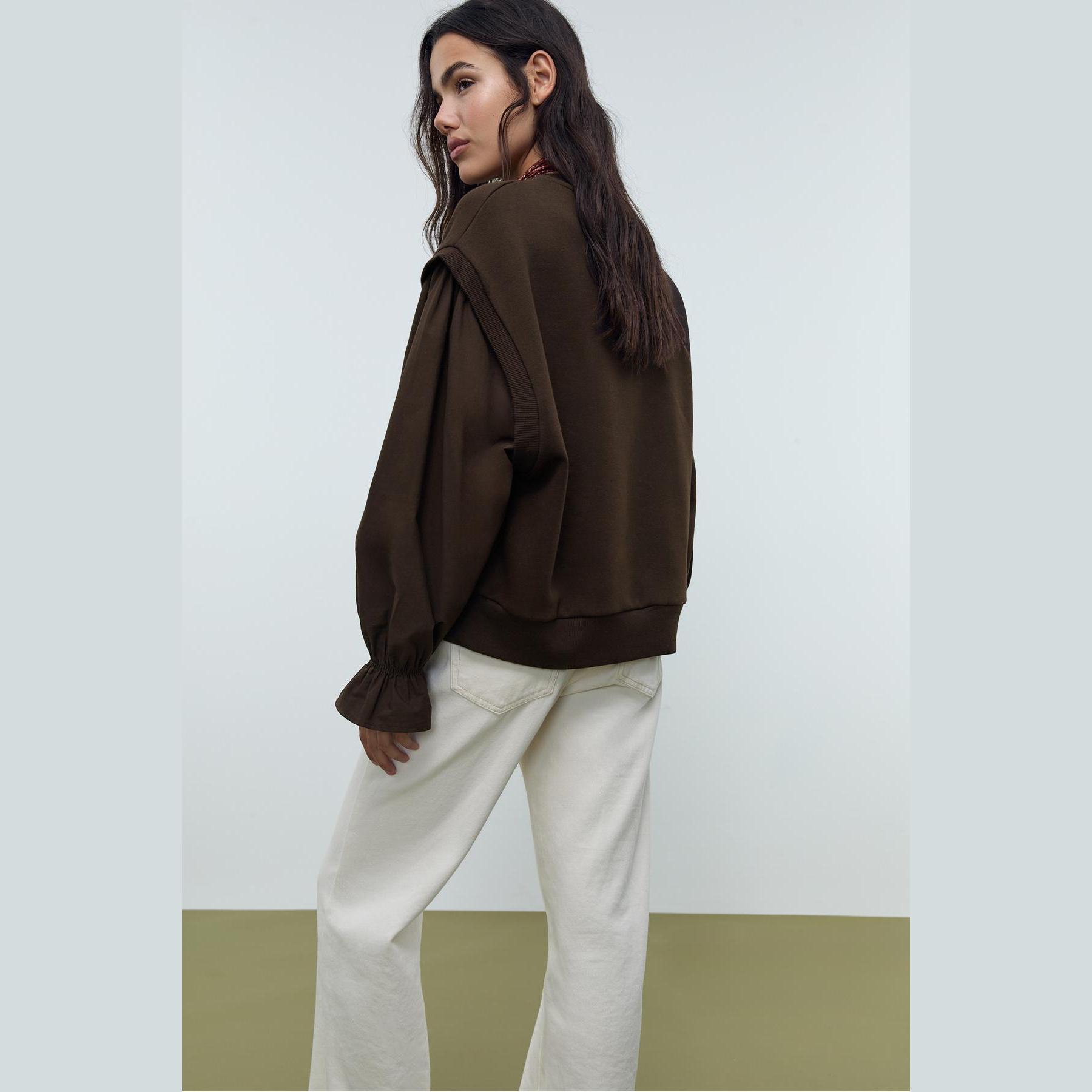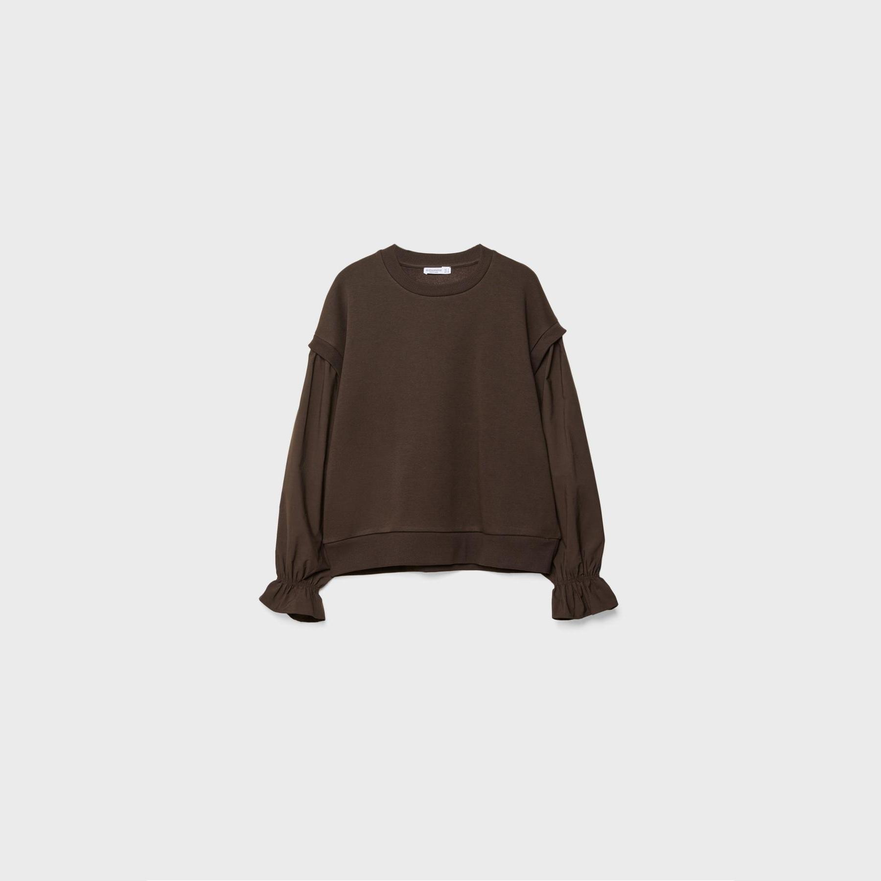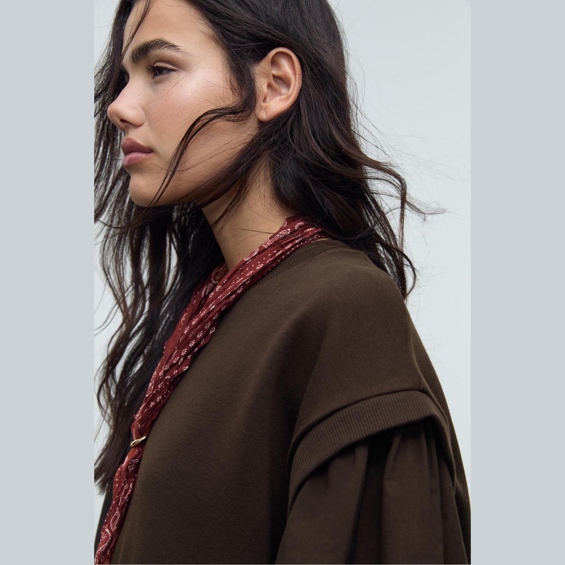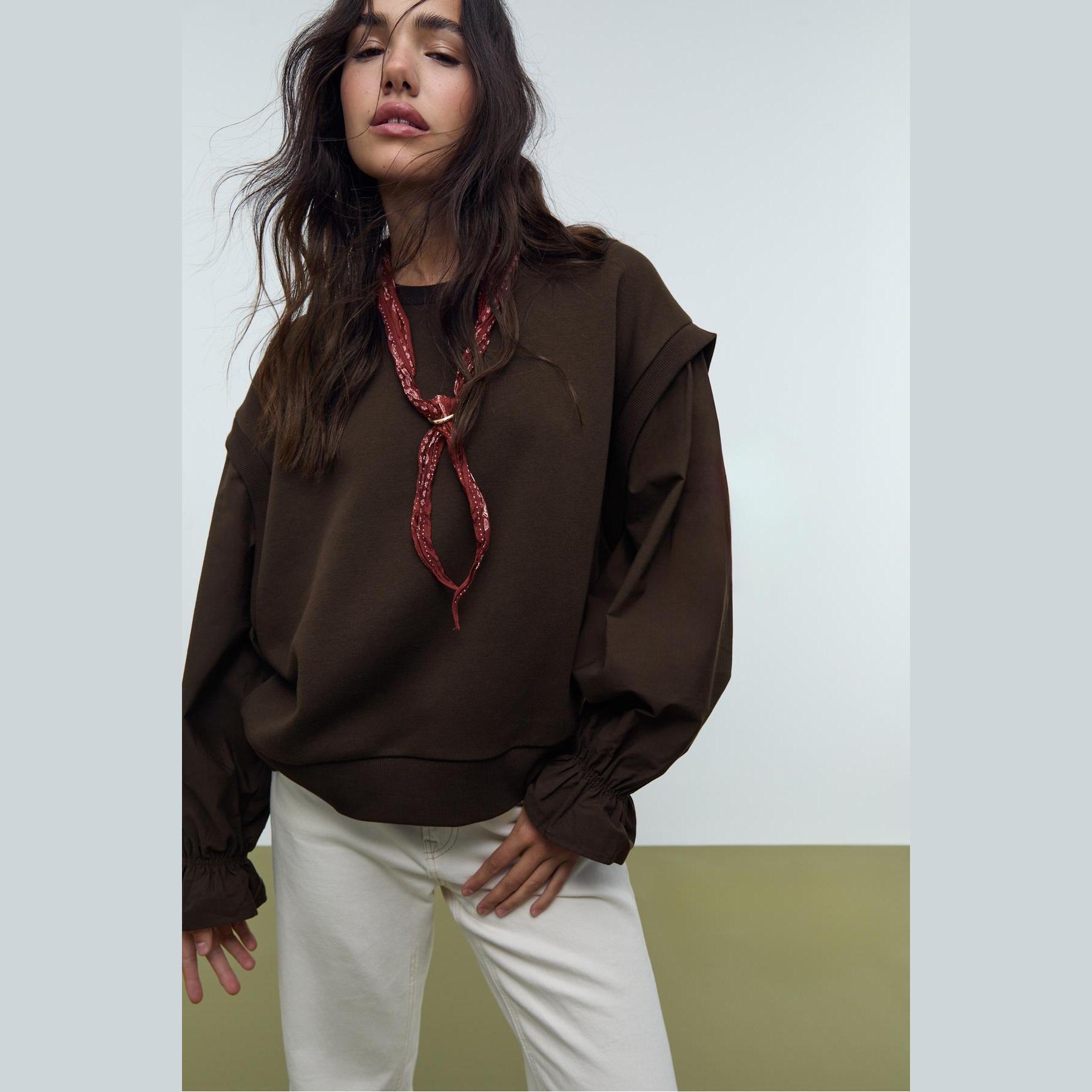سويت شيرت بأكمام مركّبة ومنتفخة – بني من Stradivarius