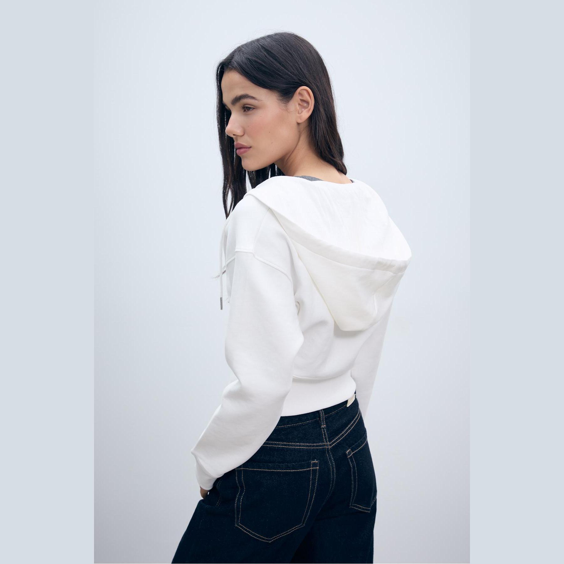 سويت شيرت بغطاء رأس وسحاب أمامي – إكرو من Stradivarius