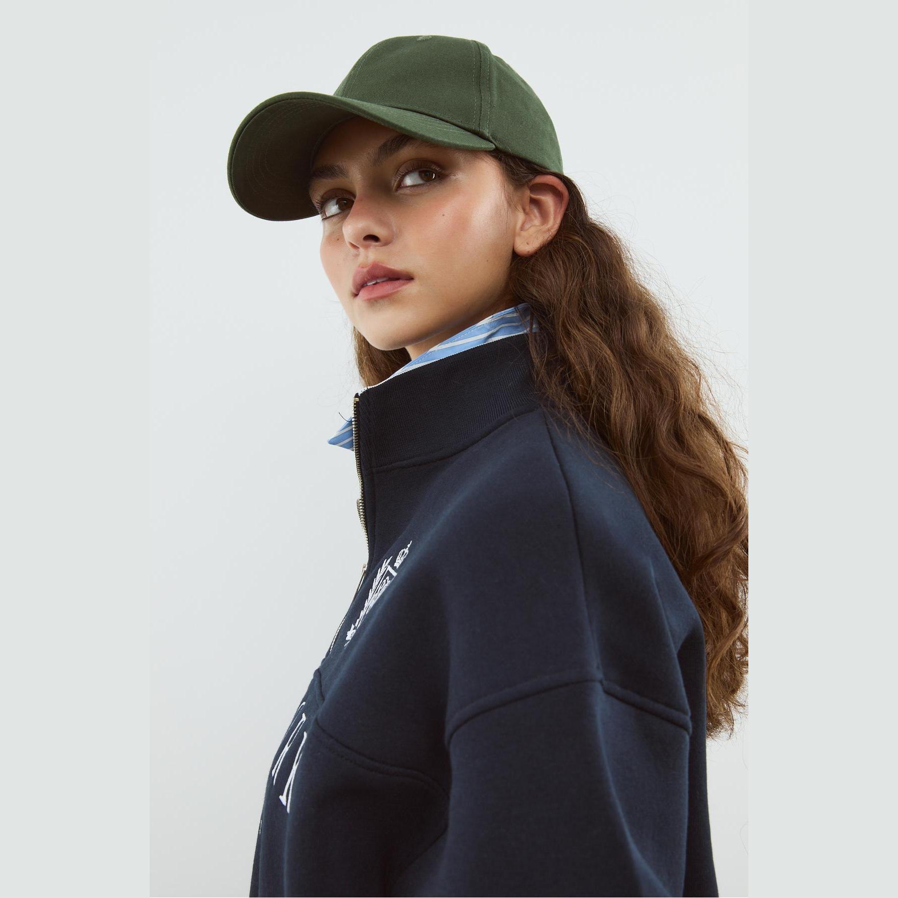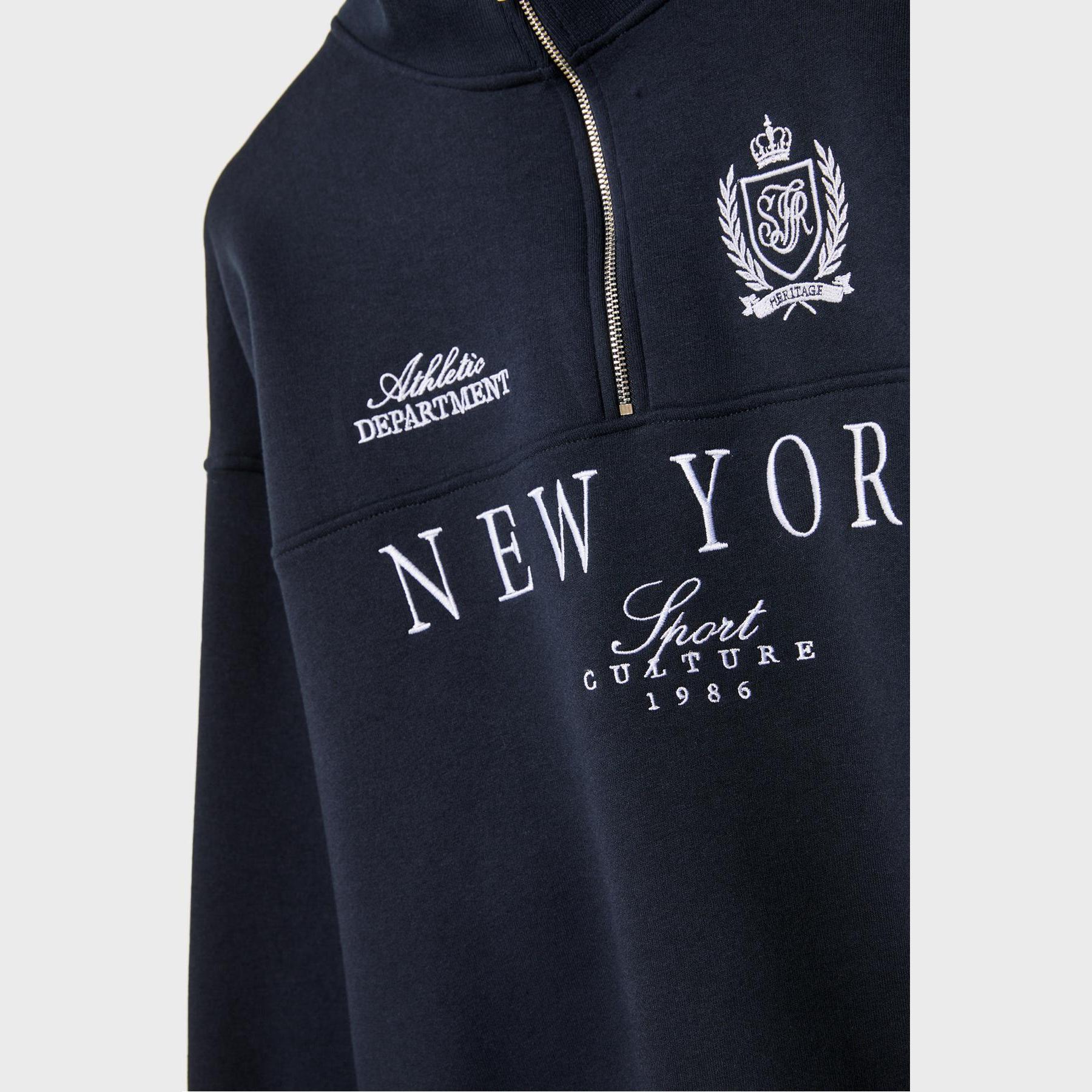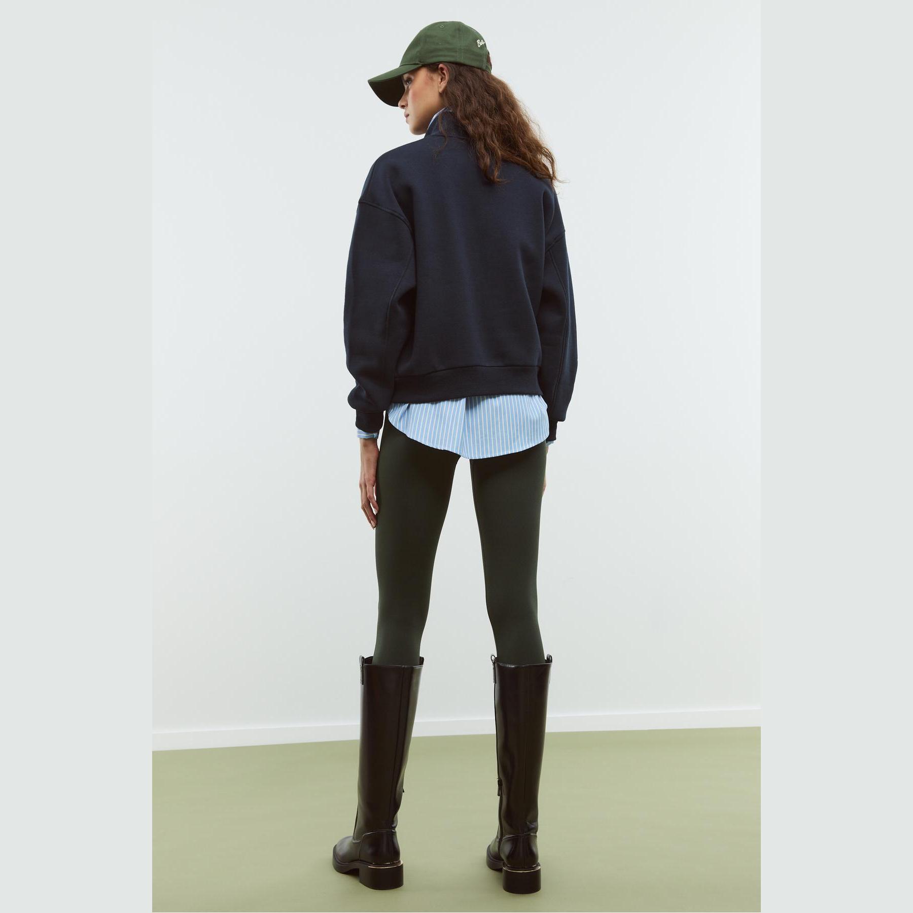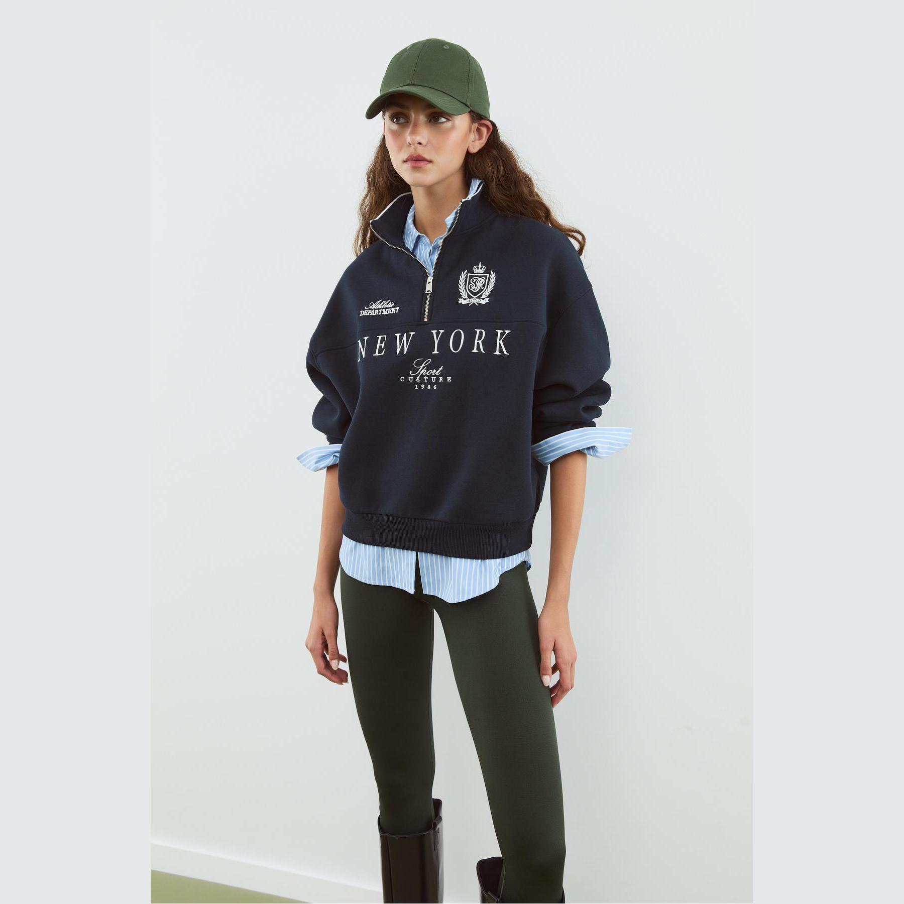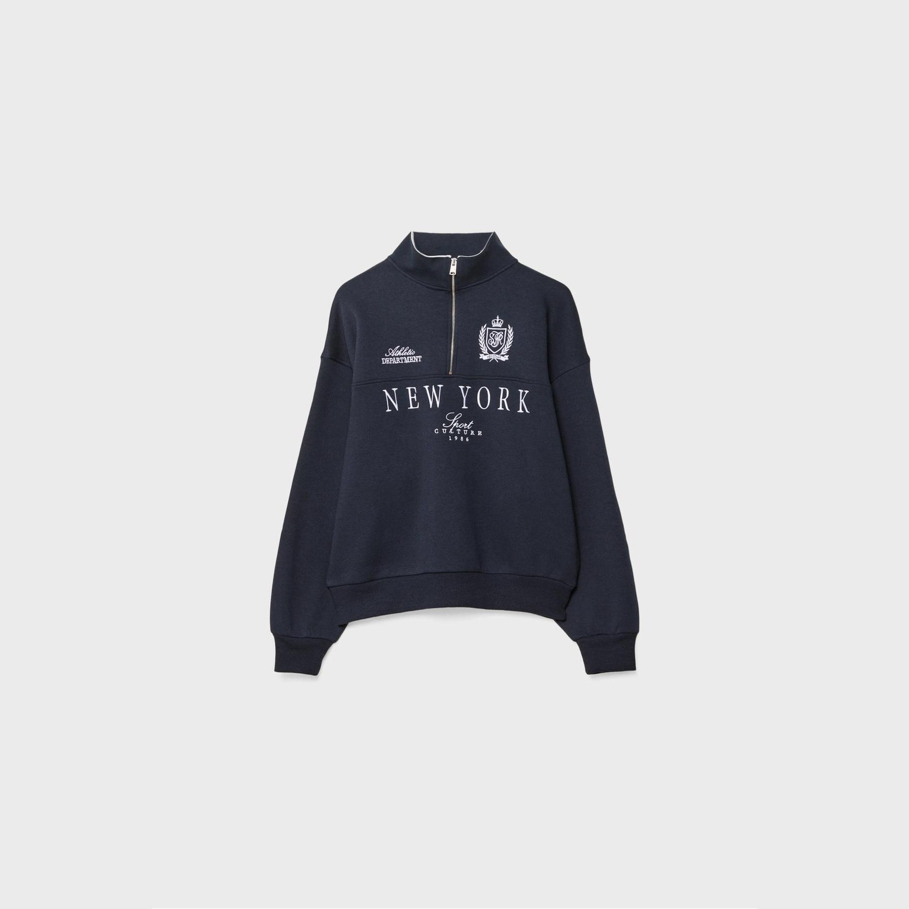 سويت شيرت مطرّز بسحاب وياقة نصف مرتفعة – كحلي من Stradivarius