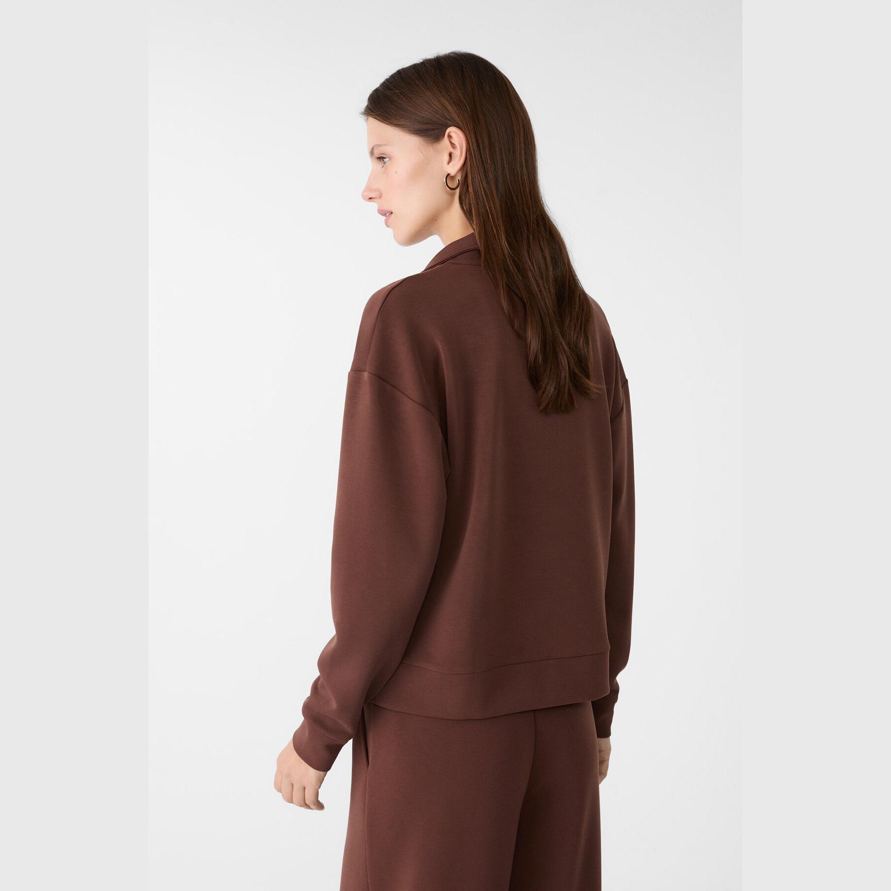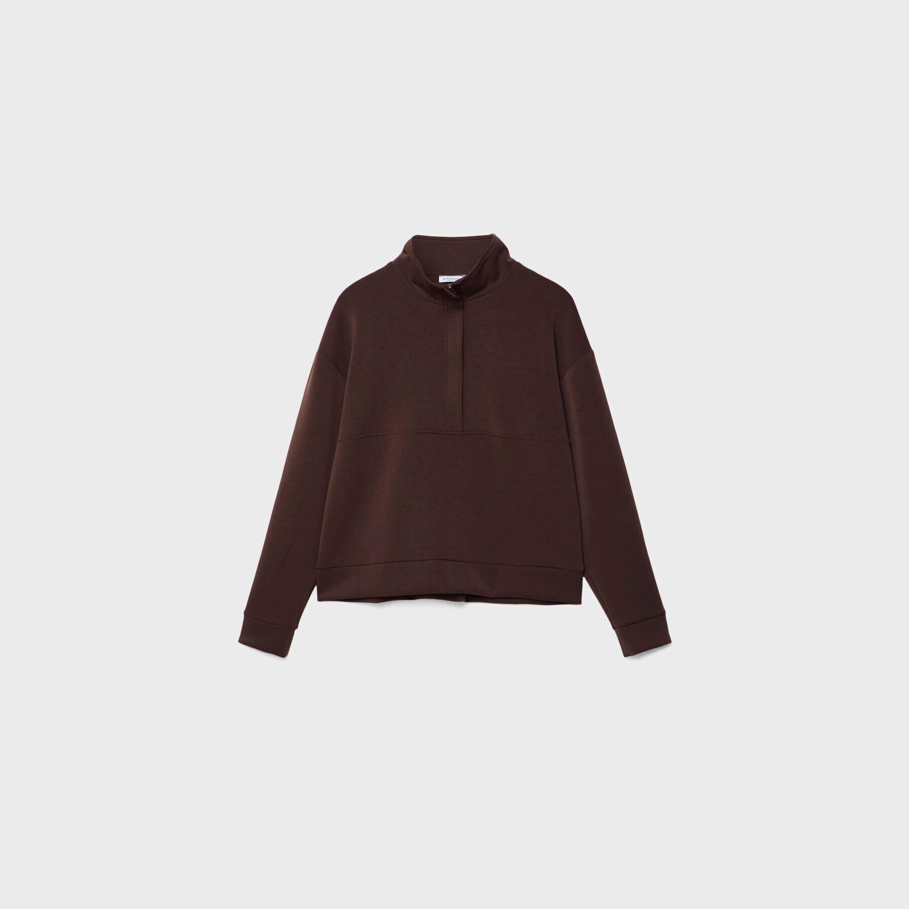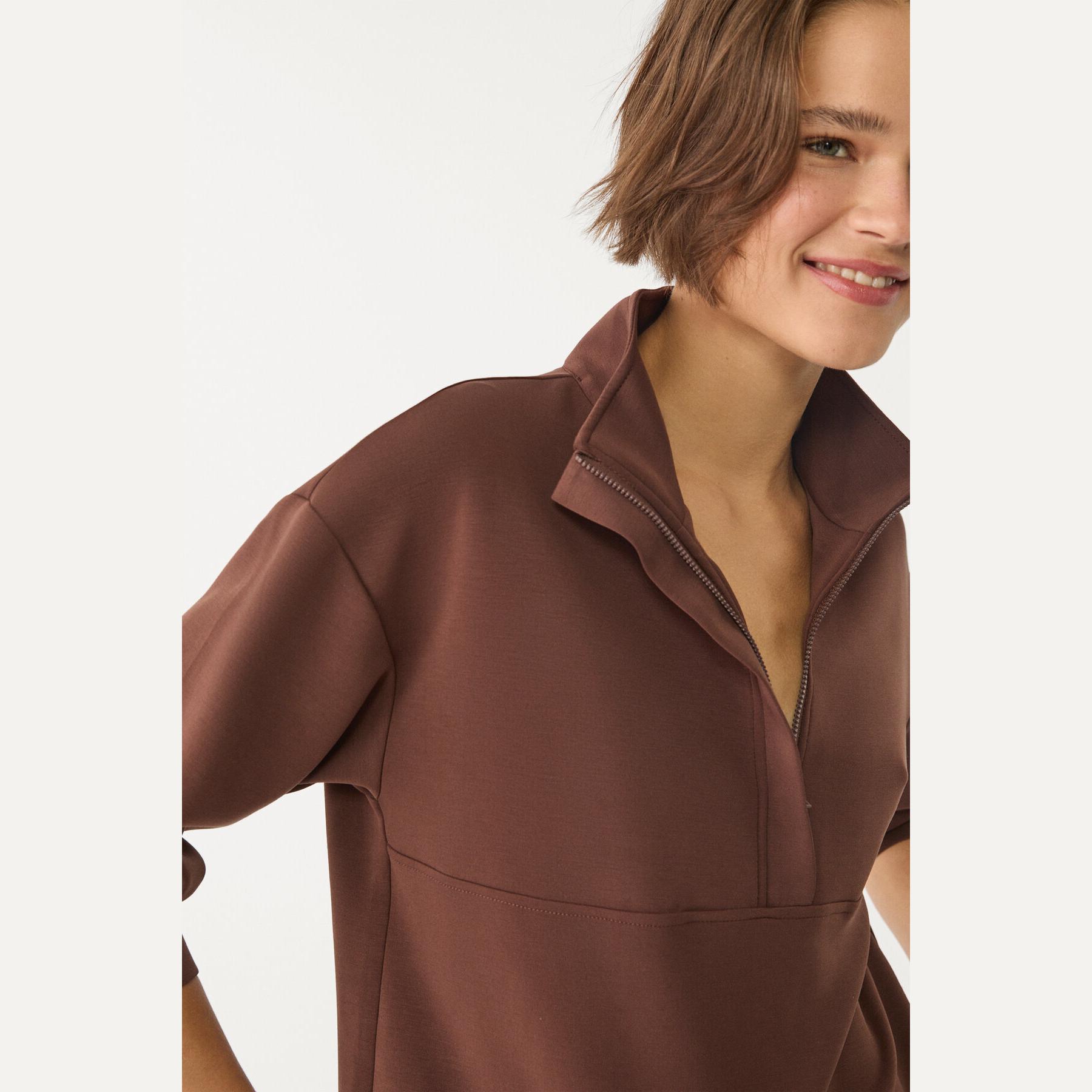 سويت شيرت بملمس ناعم وسحاب وياقة عالية – بني من Stradivarius
