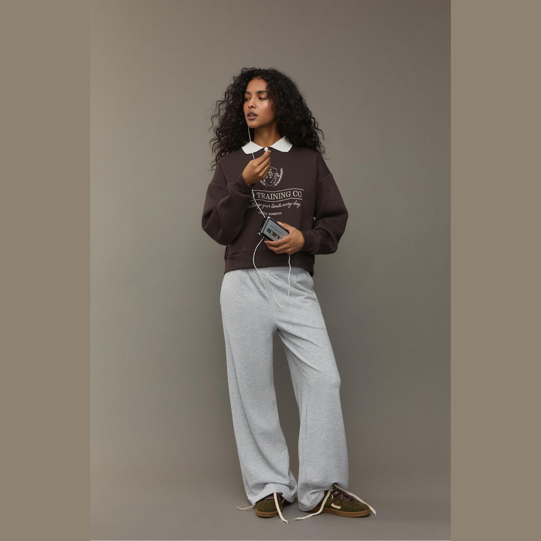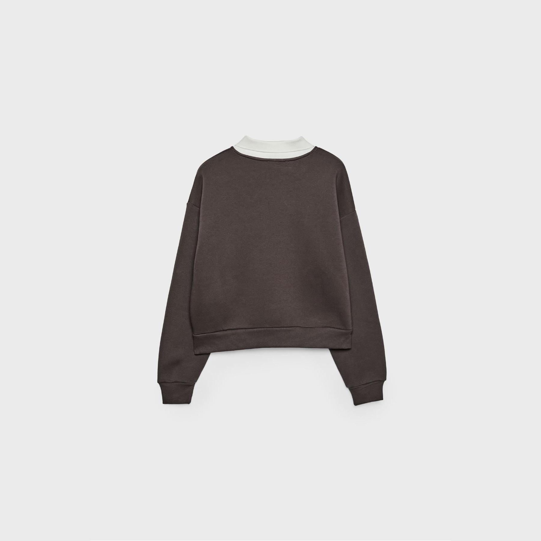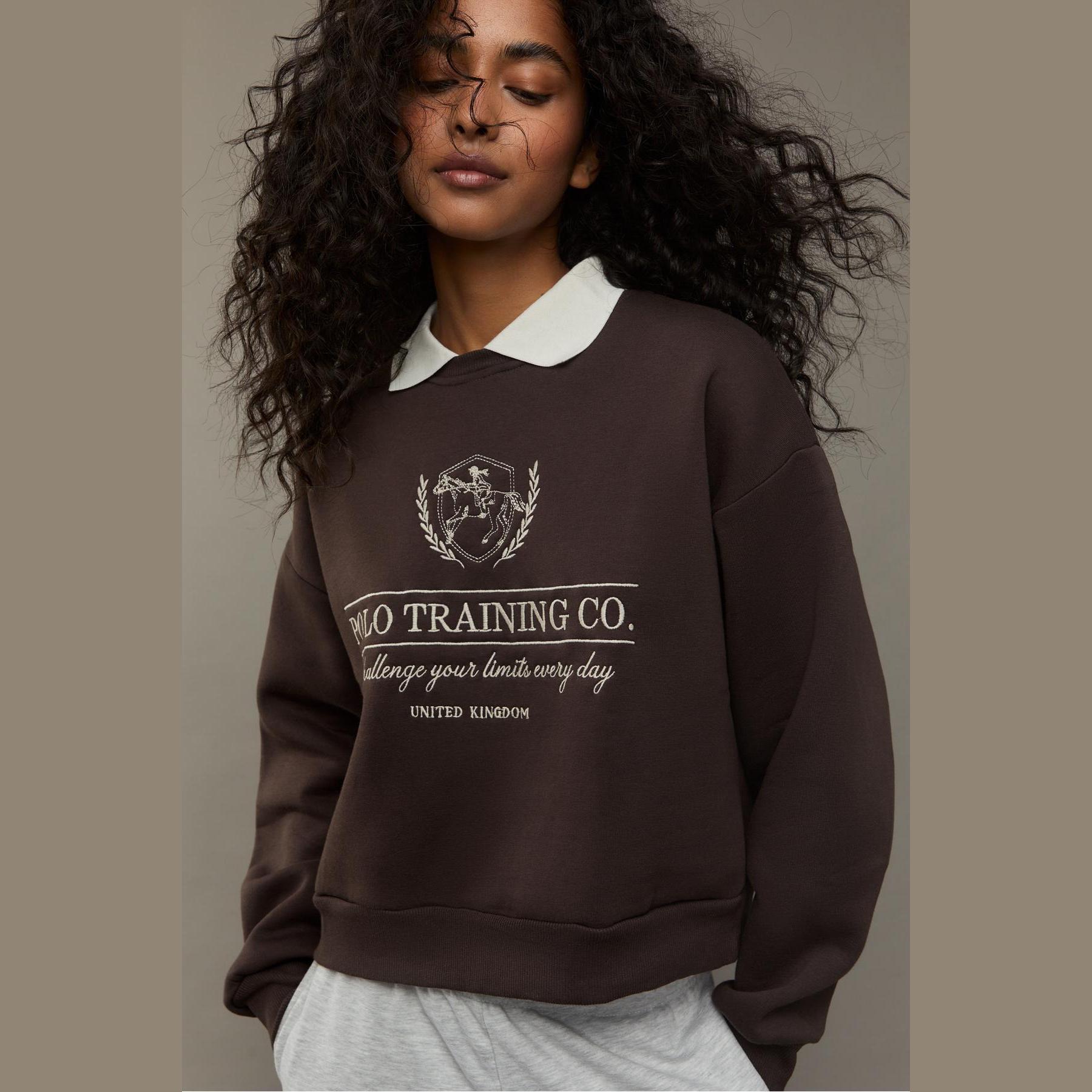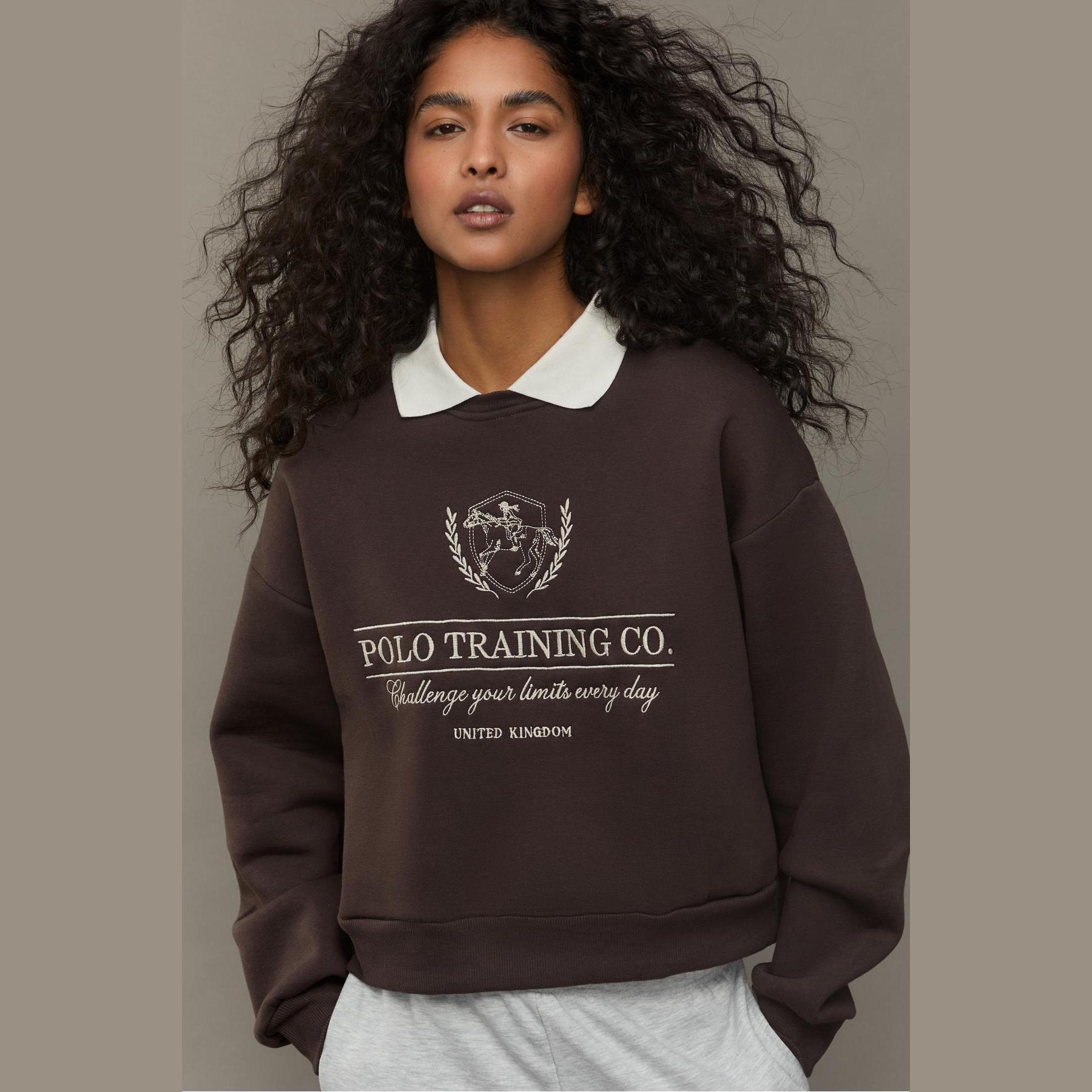 سويت شيرت بياقة بولو وتطريز أمامي – بني من Stradivarius