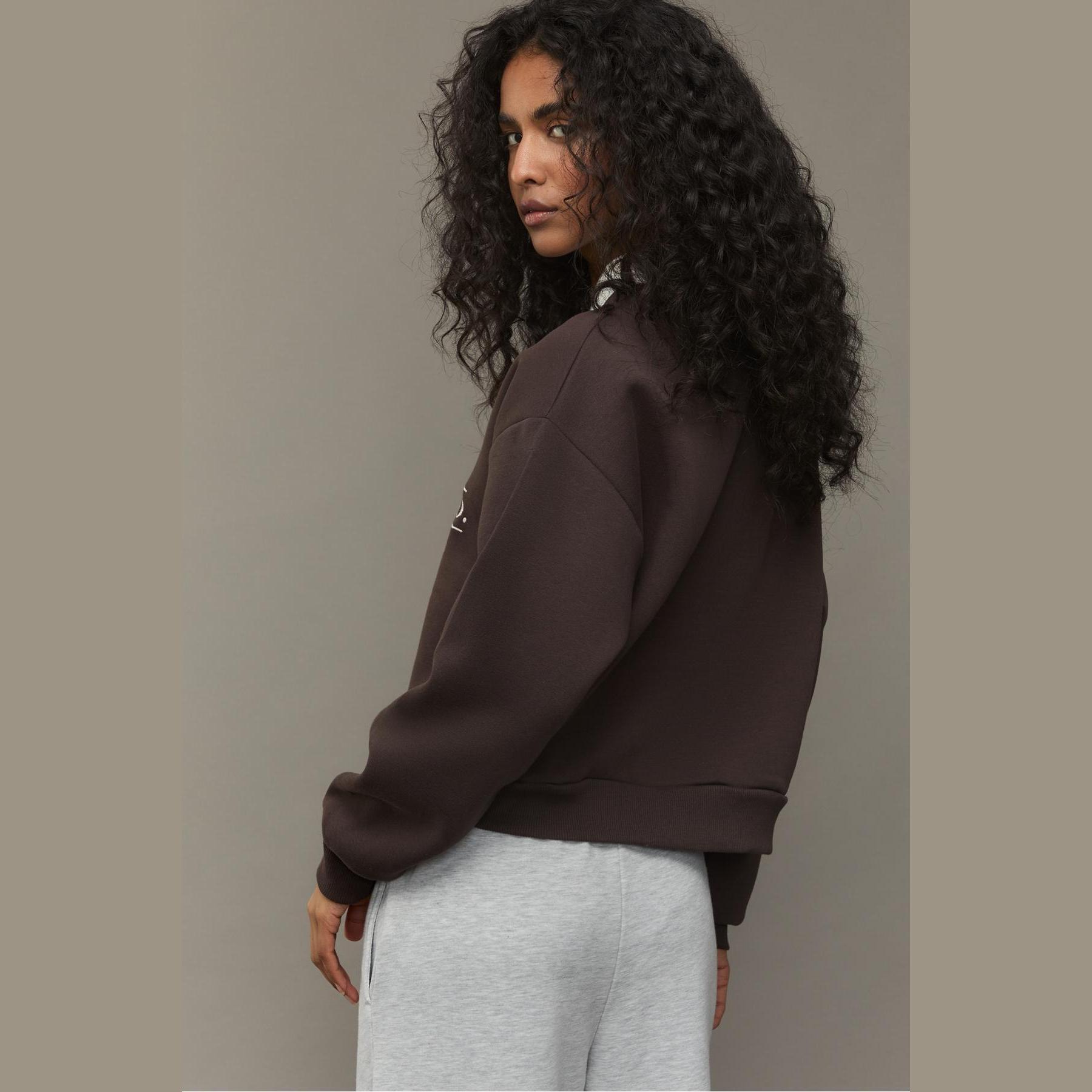 سويت شيرت أنيق من Stradivarius بلون بني، مصنوع من خامة ناعمة بتركيبة 65% قطن، 35% بوليستر، يتميز بقصة Regular مريحة وياقة بولو مطوية مع أزرار، أكمام طويلة، أطراف وأساور Ribana مرنة، تصميم مطرز على الجهة الأمامية، ملمس داخلي ناعم بدون شاردون، بدون جيوب، مثالي للتنسيق مع جينز أو بنطال قماشي لإطلالة كاجوال أنيقة.