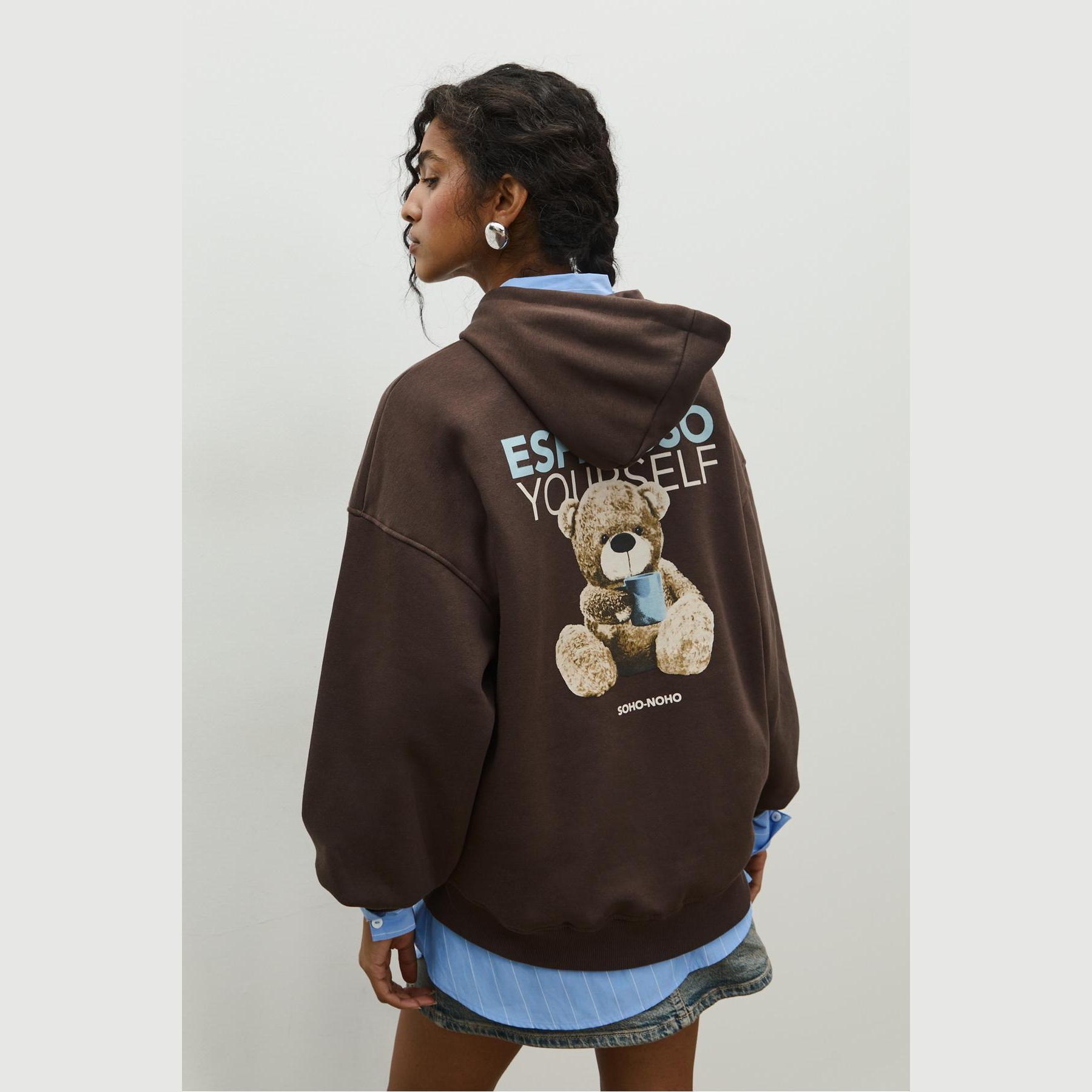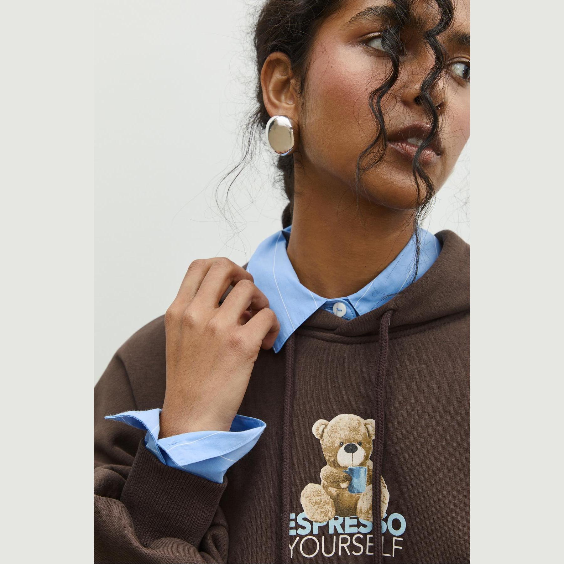 سويت شيرت بغطاء رأس وطبعة جرافيك – بني من Stradivarius