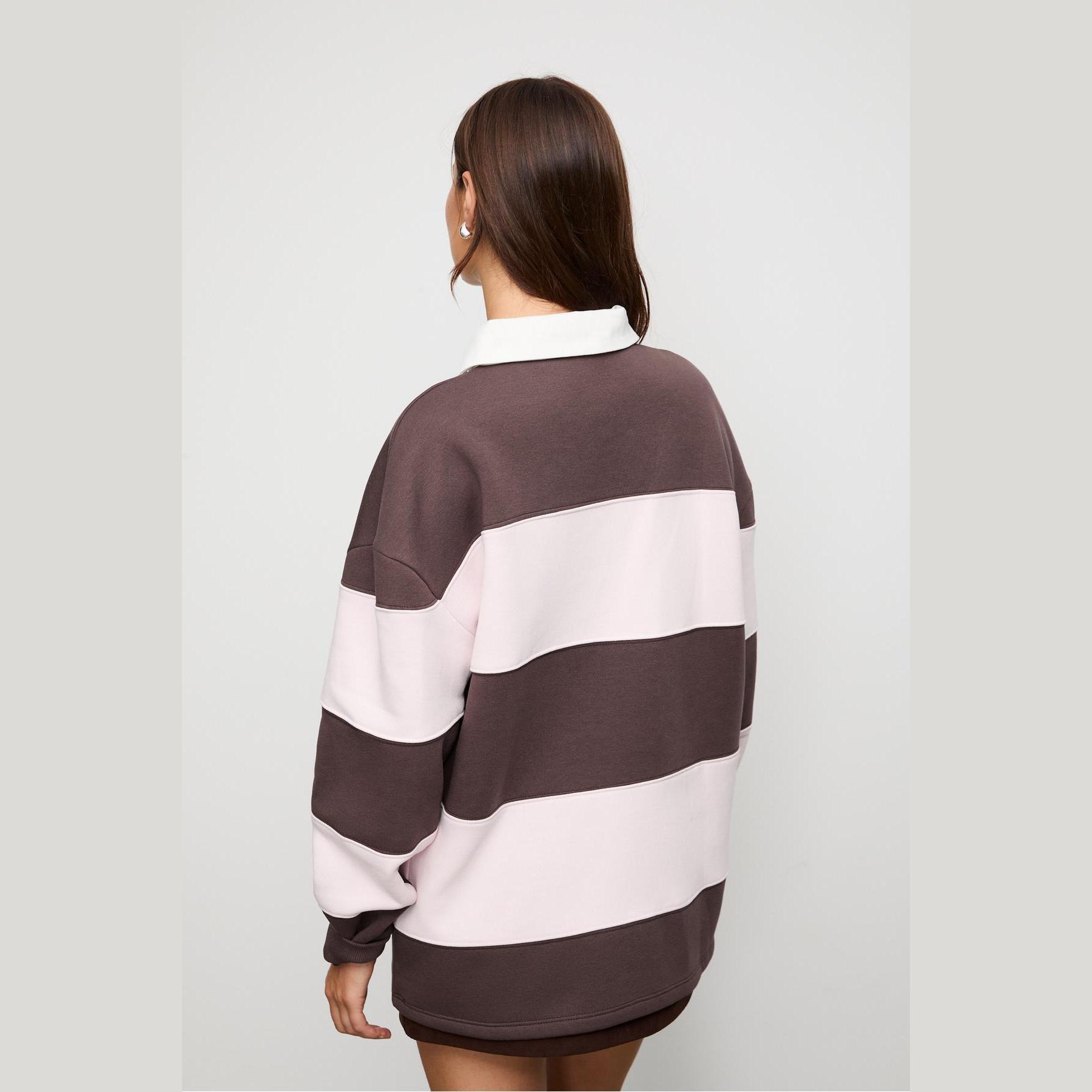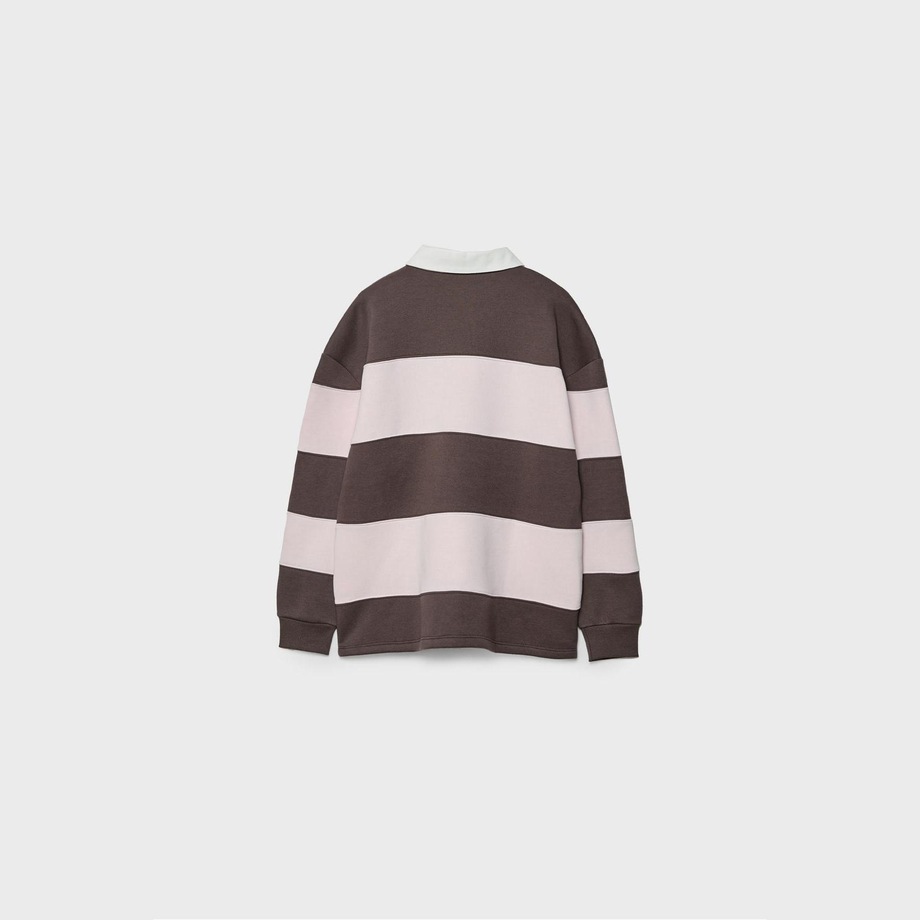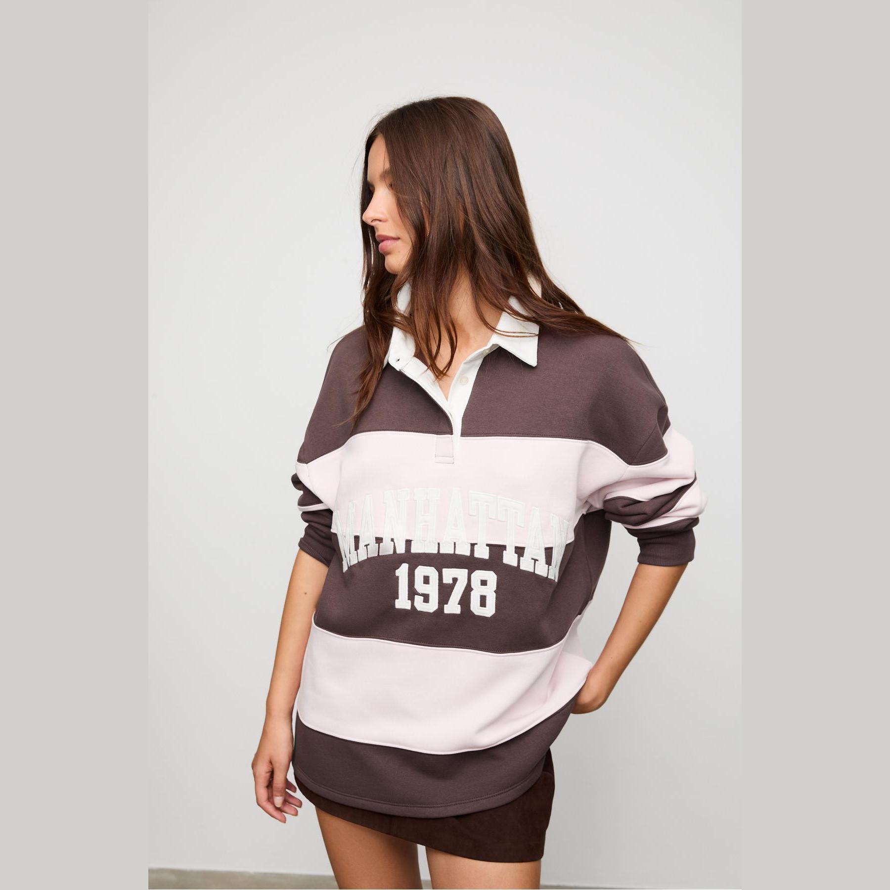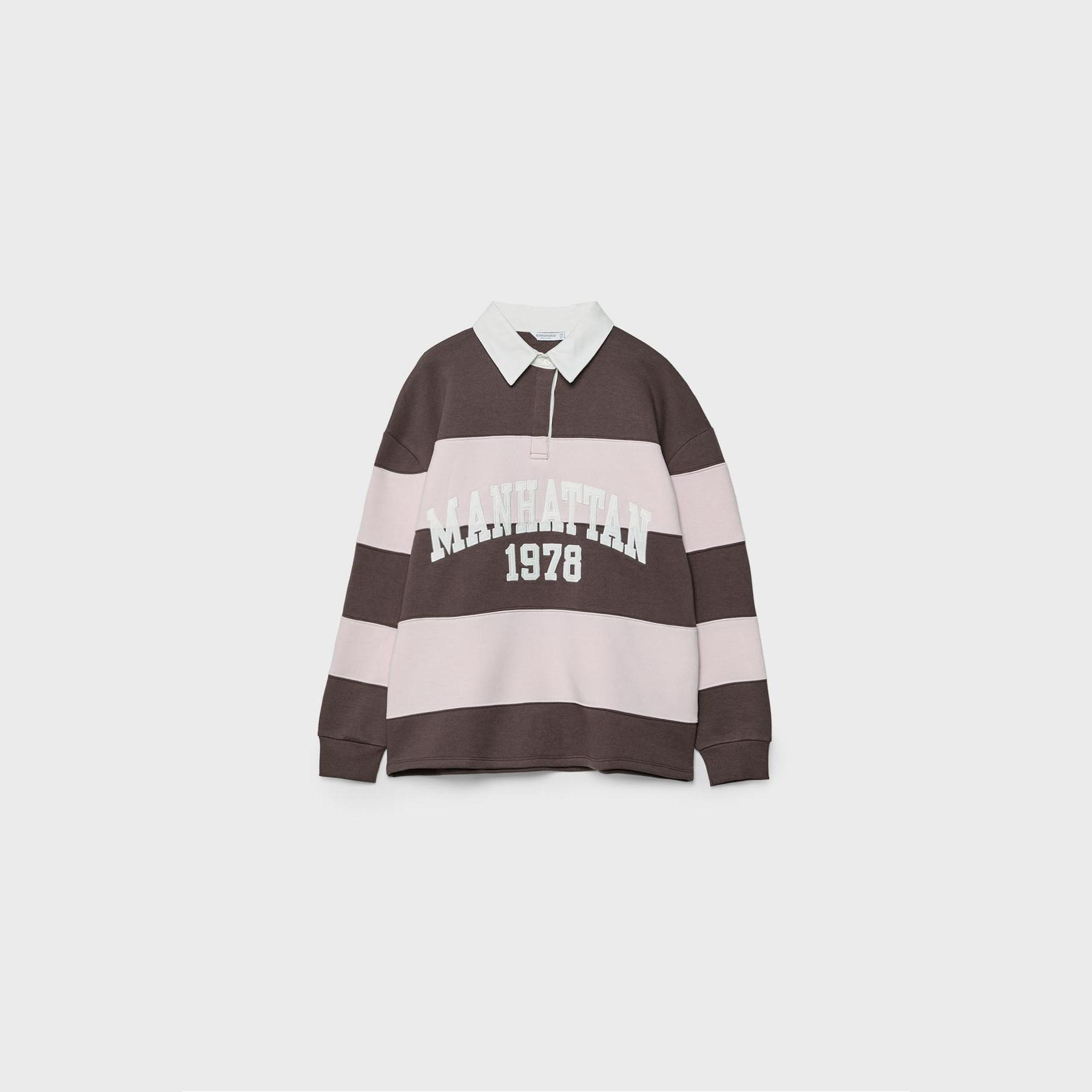 سويت شيرت بياقة بولو بطبعة خطوط وتطريز – بني من Stradivarius