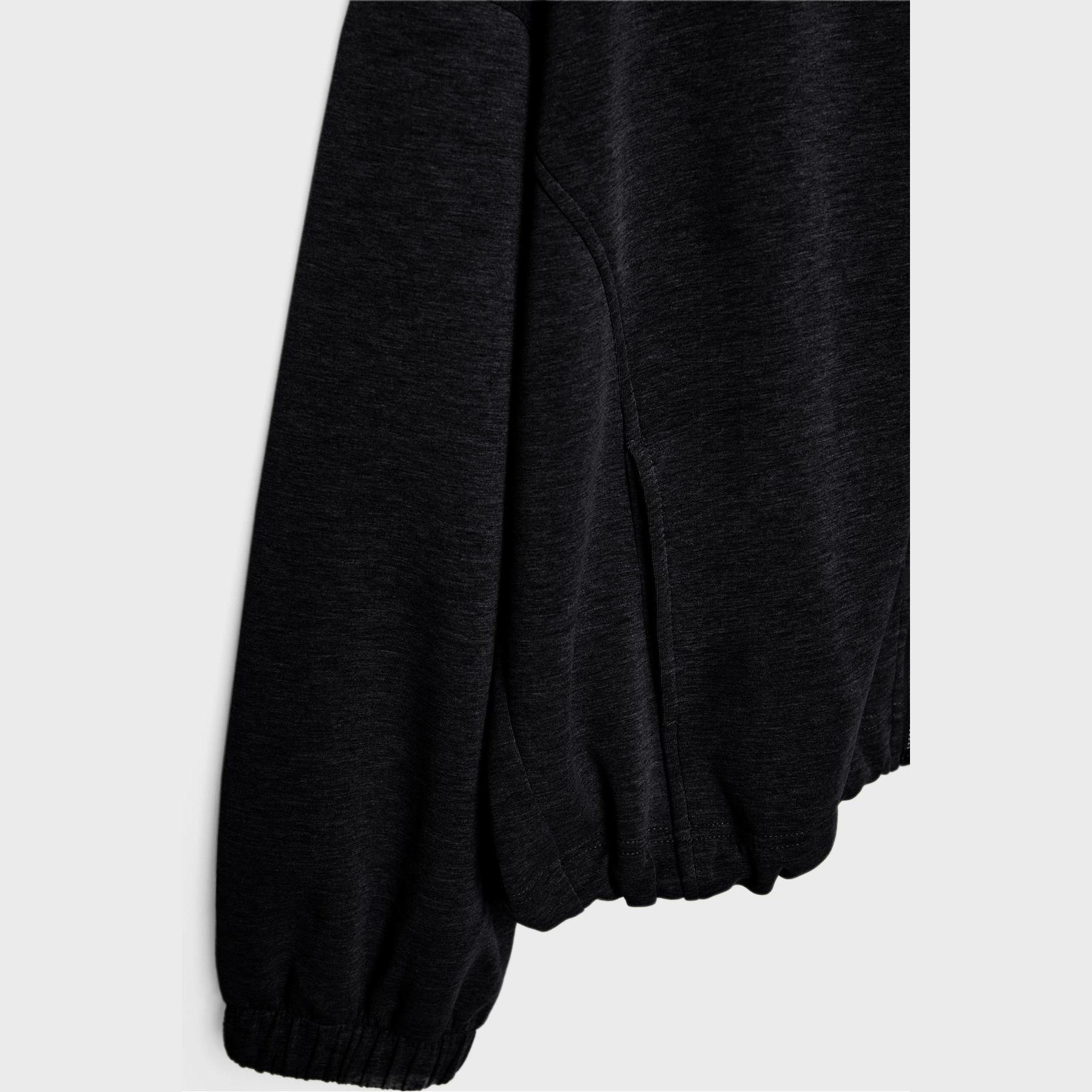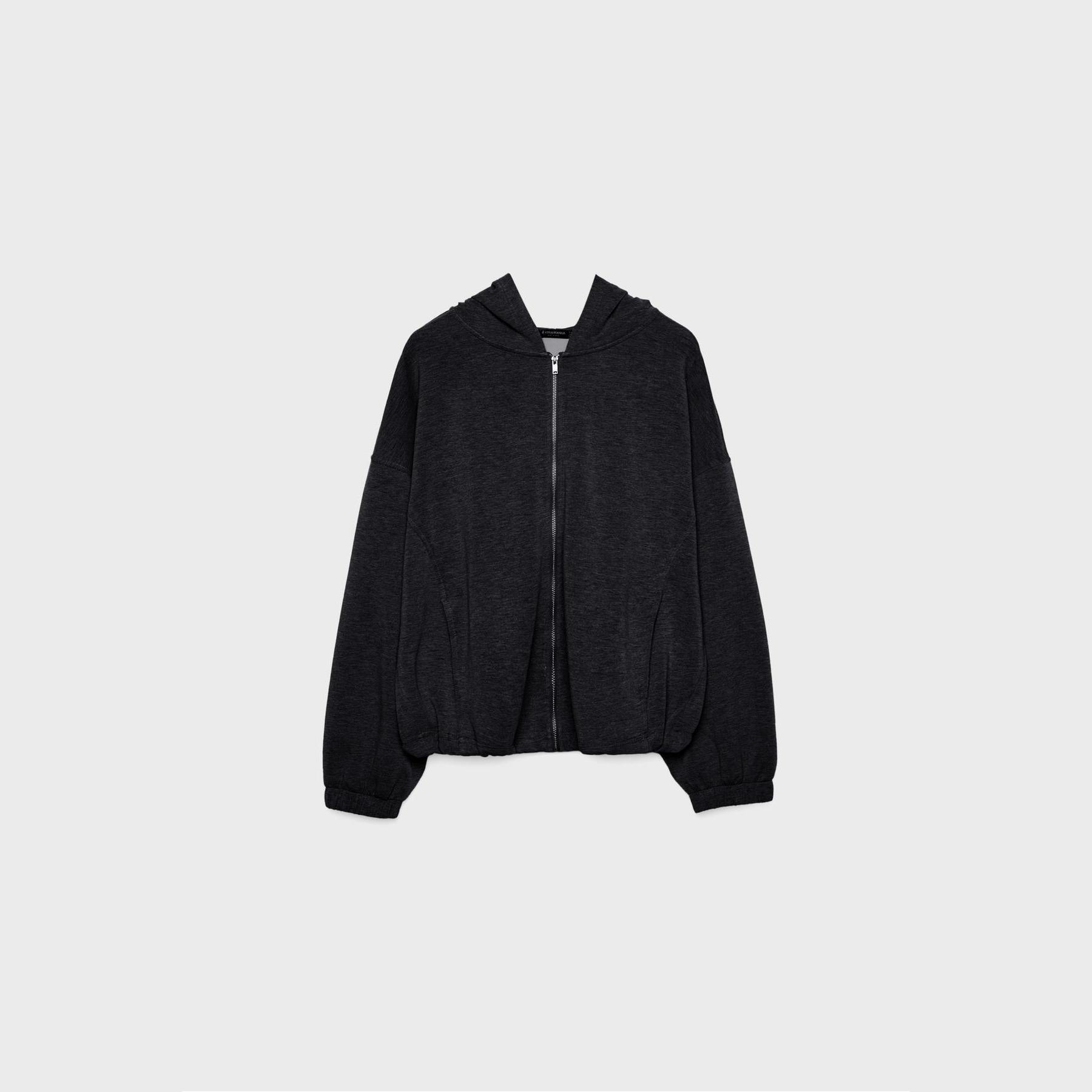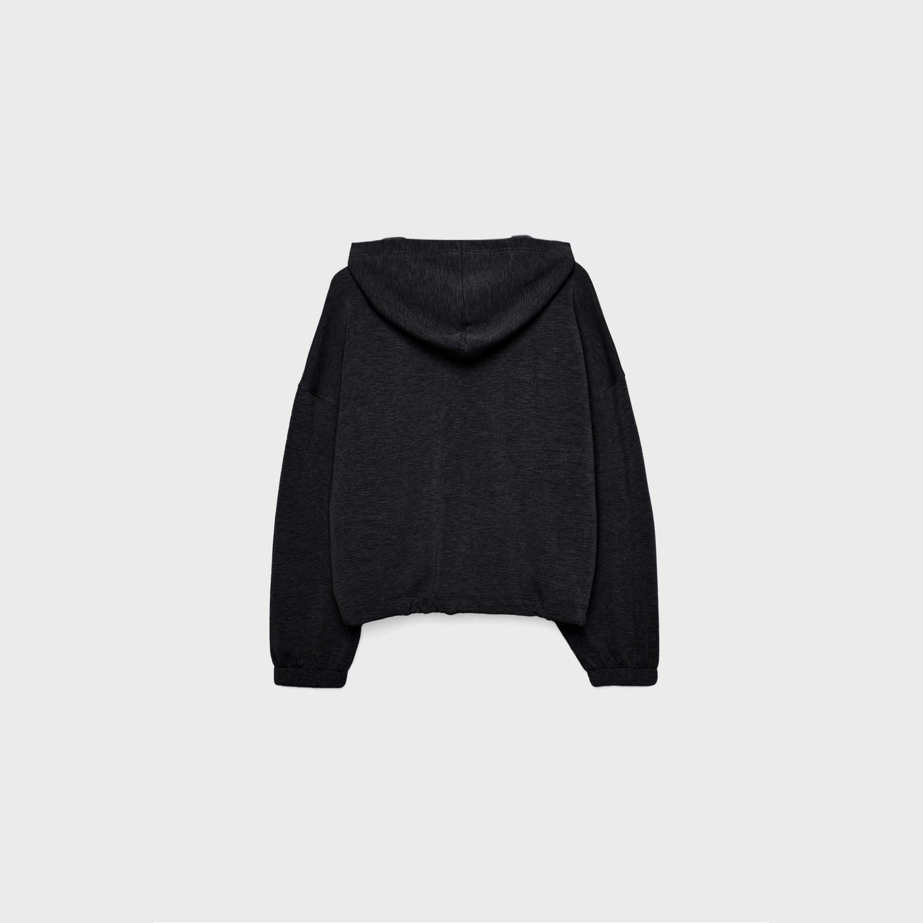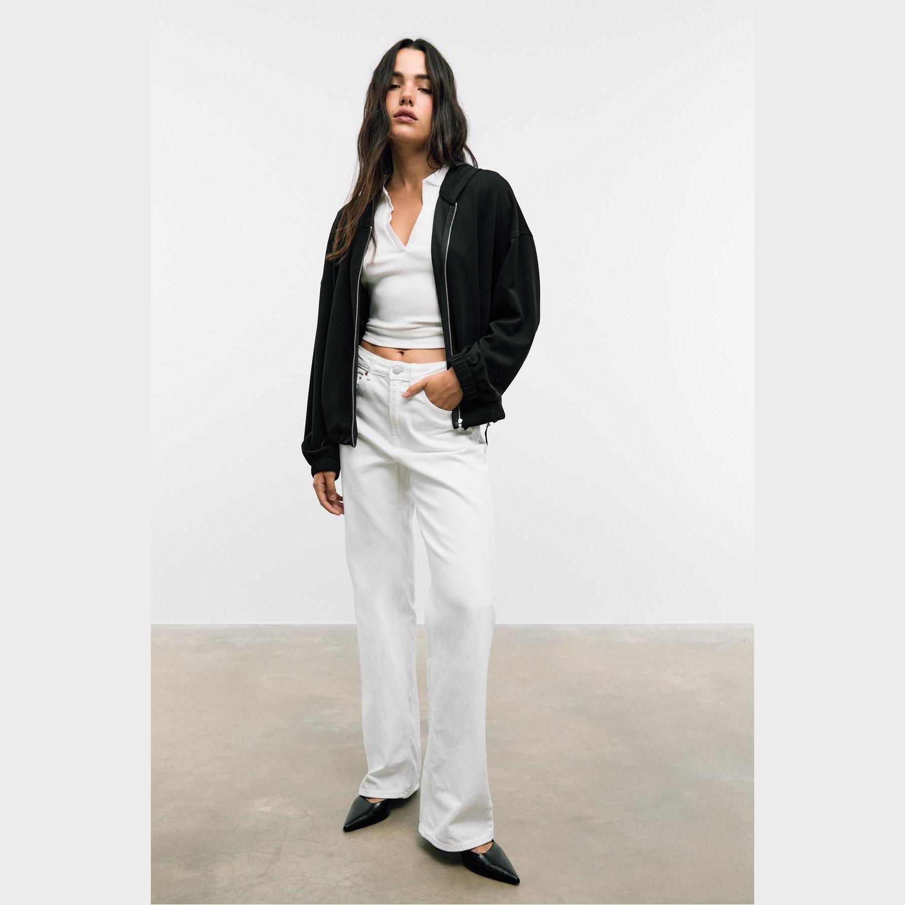 سويت شيرت عملي من Stradivarius بلون أسود، مصنوع من خامة فاخرة بتركيبة 49% مودال، 42% بوليستر، 9% إيلاستان، يتميز بقصة Comfort مريحة، غطاء رأس قابل للتعديل بخيوط وستوبر، سحاب أمامي كامل، أكمام طويلة مع أطراف وأساور Ribana مرنة، تصميم سادة بدون طبعات، مزود بجيبين جانبيين، نهاية سفلية منتفخة قابلة للتعديل، ملمس داخلي ناعم، مثالي للتنسيق مع جينز أو ليغينغ لإطلالة كاجوال يومية.