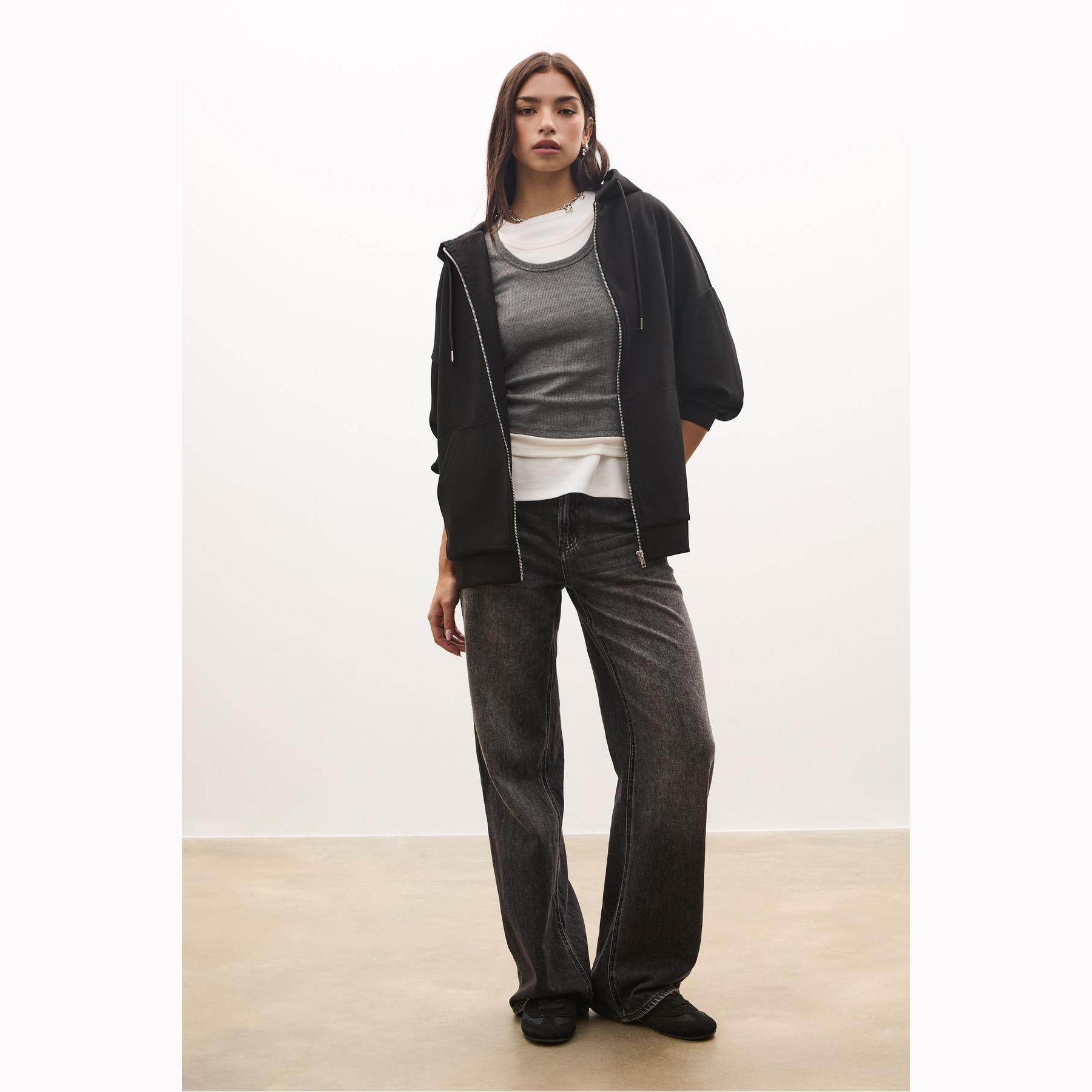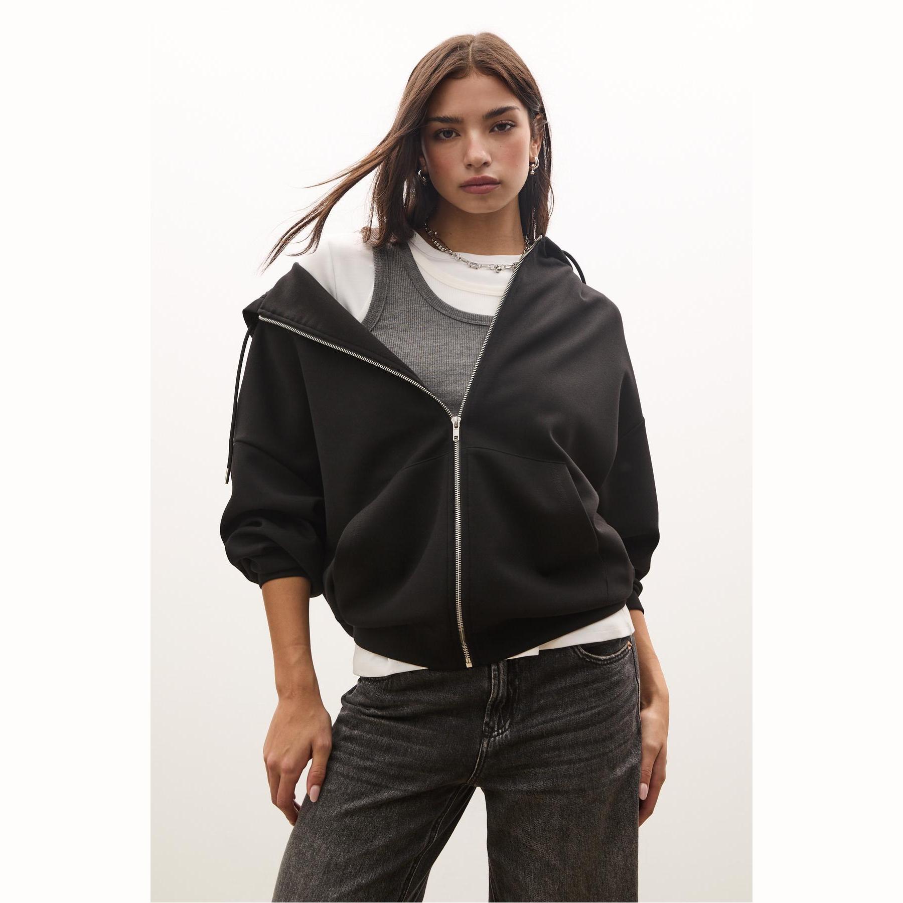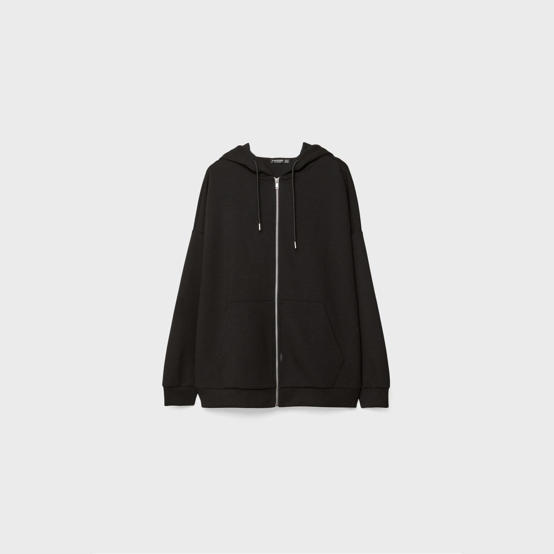 سويت شيرت واسع بغطاء رأس وسحاب أمامي – أسود من Stradivarius