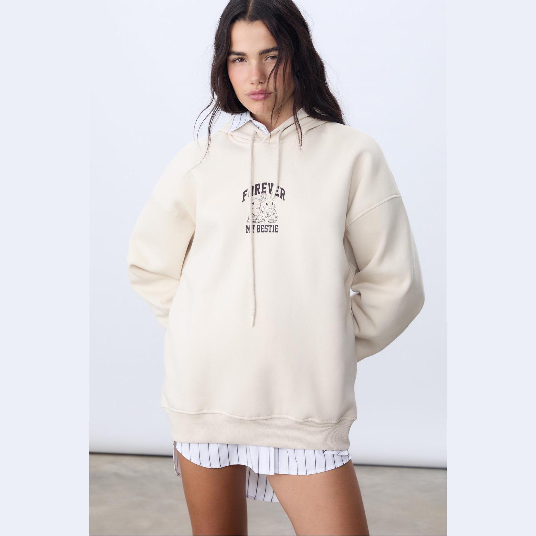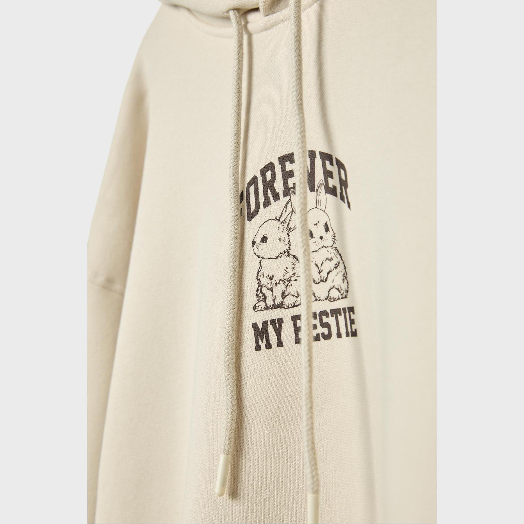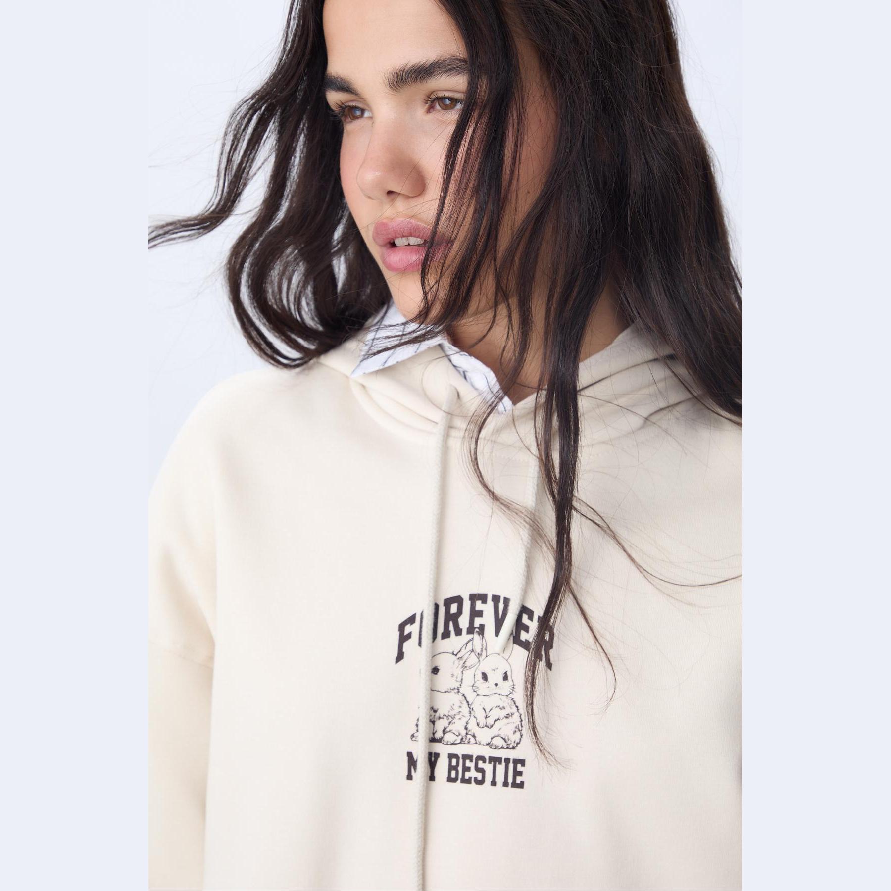 سويت شيرت بغطاء رأس وطبعة جرافيك – كريمي من Stradivarius