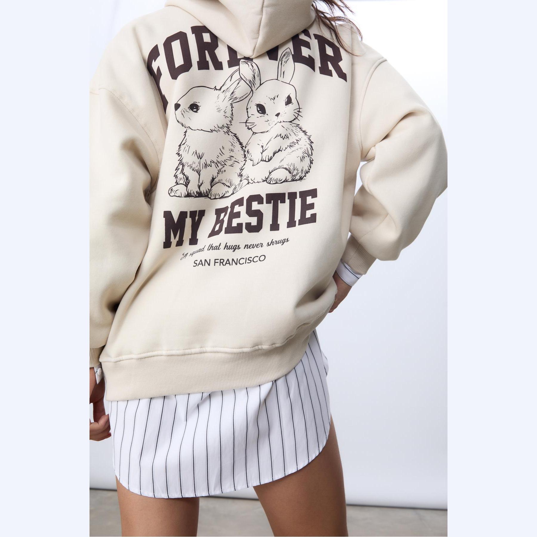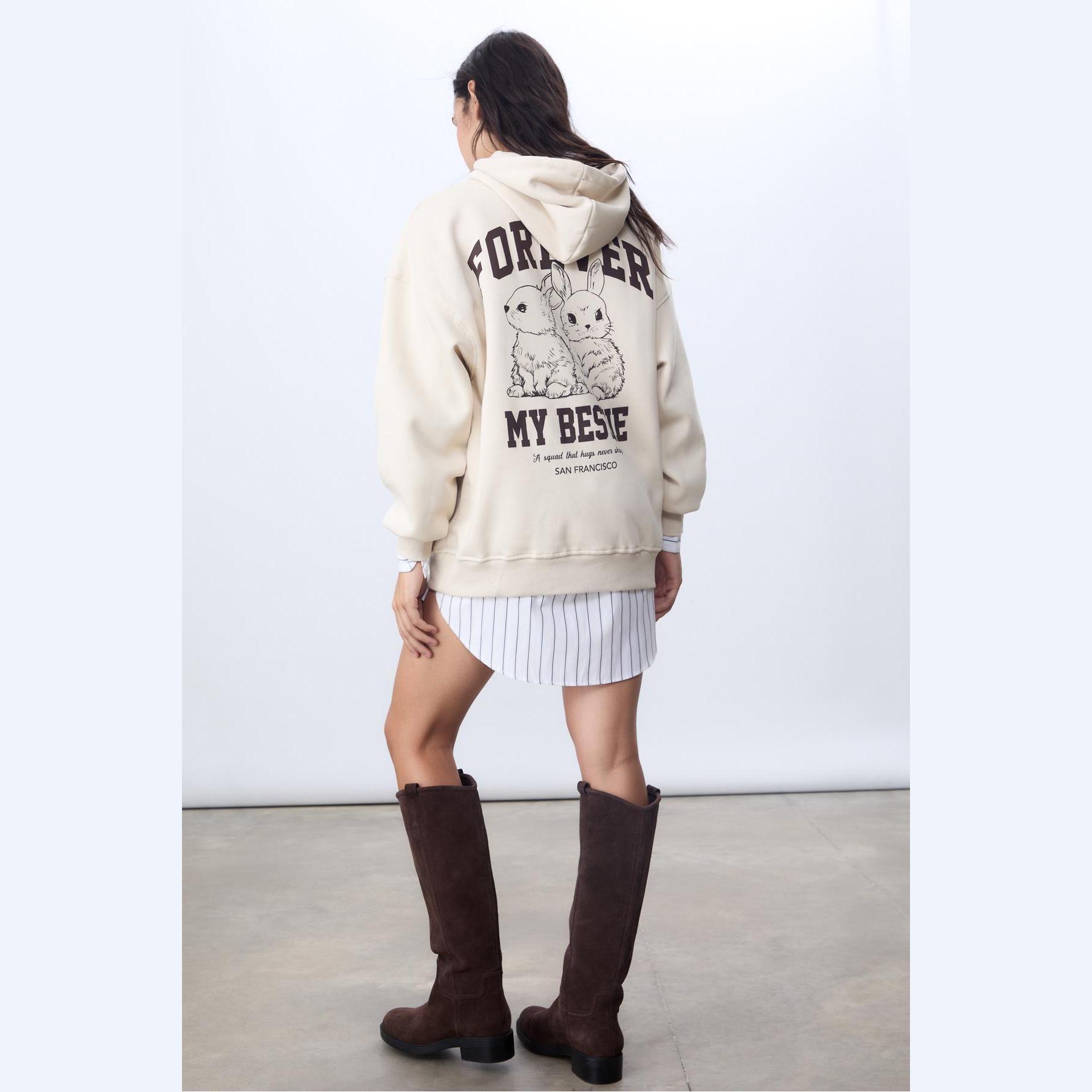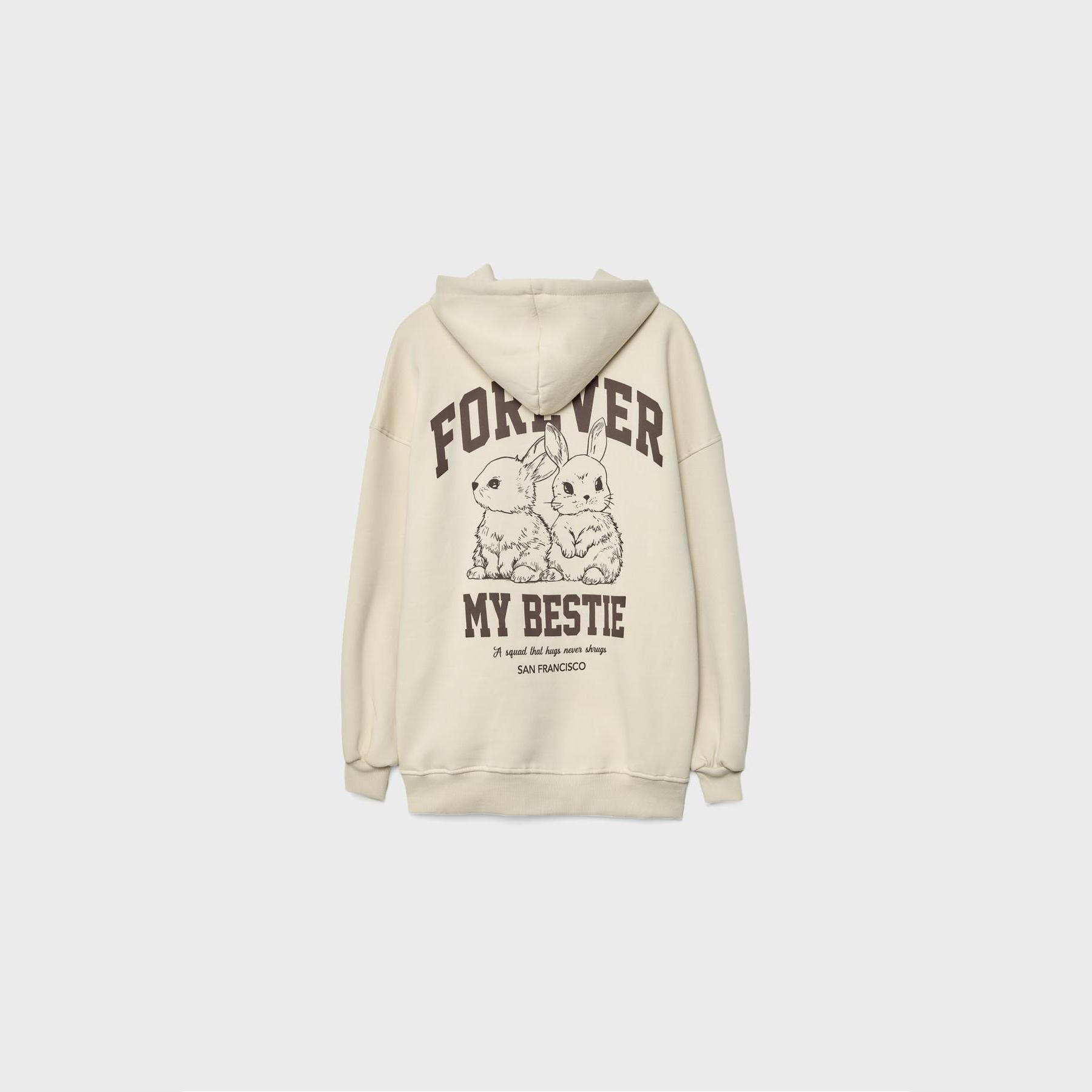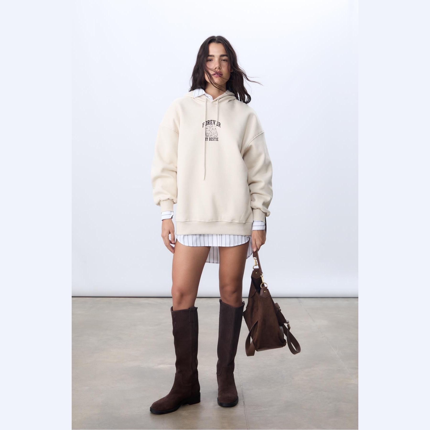 سويت شيرت بغطاء رأس وطبعة جرافيك – كريمي من Stradivarius