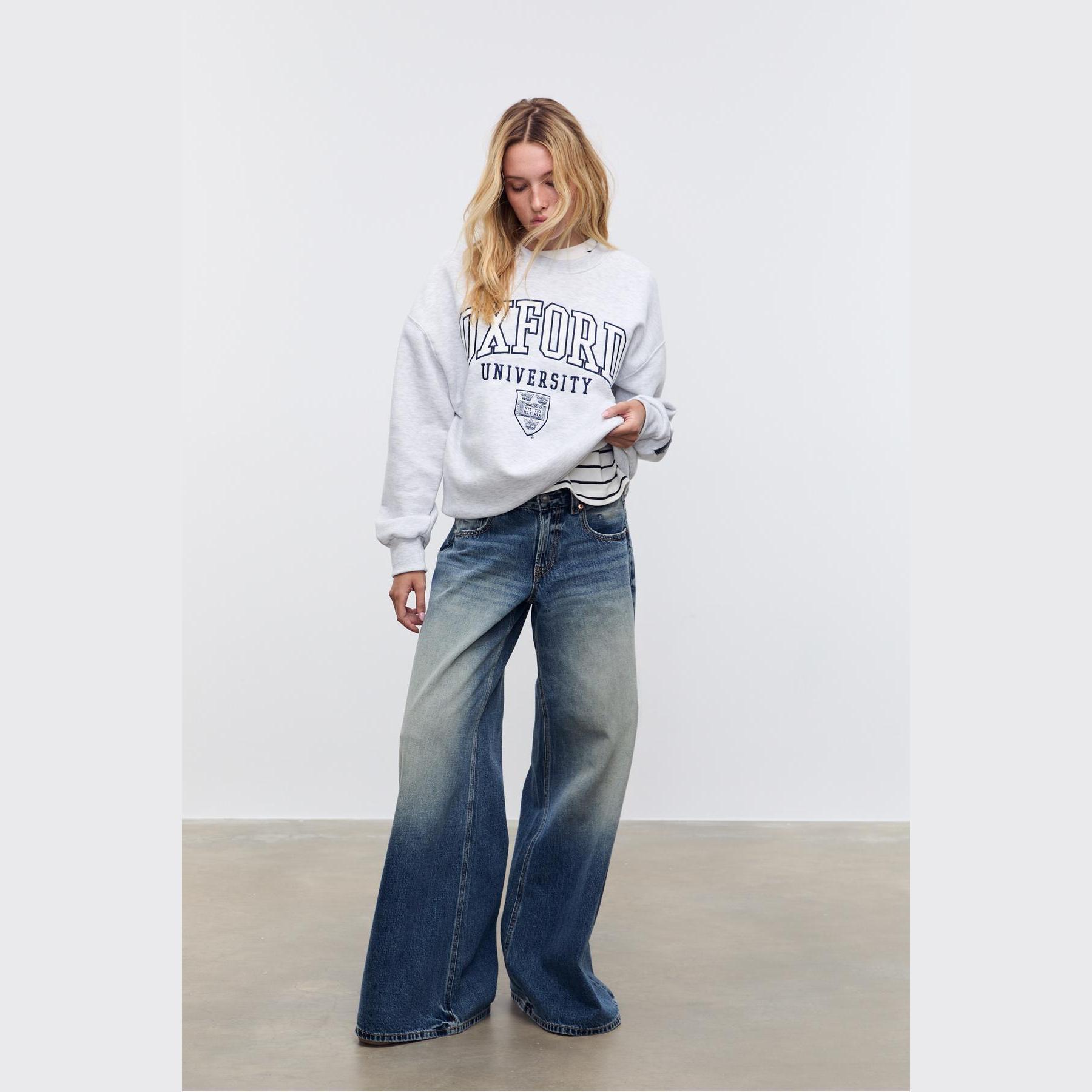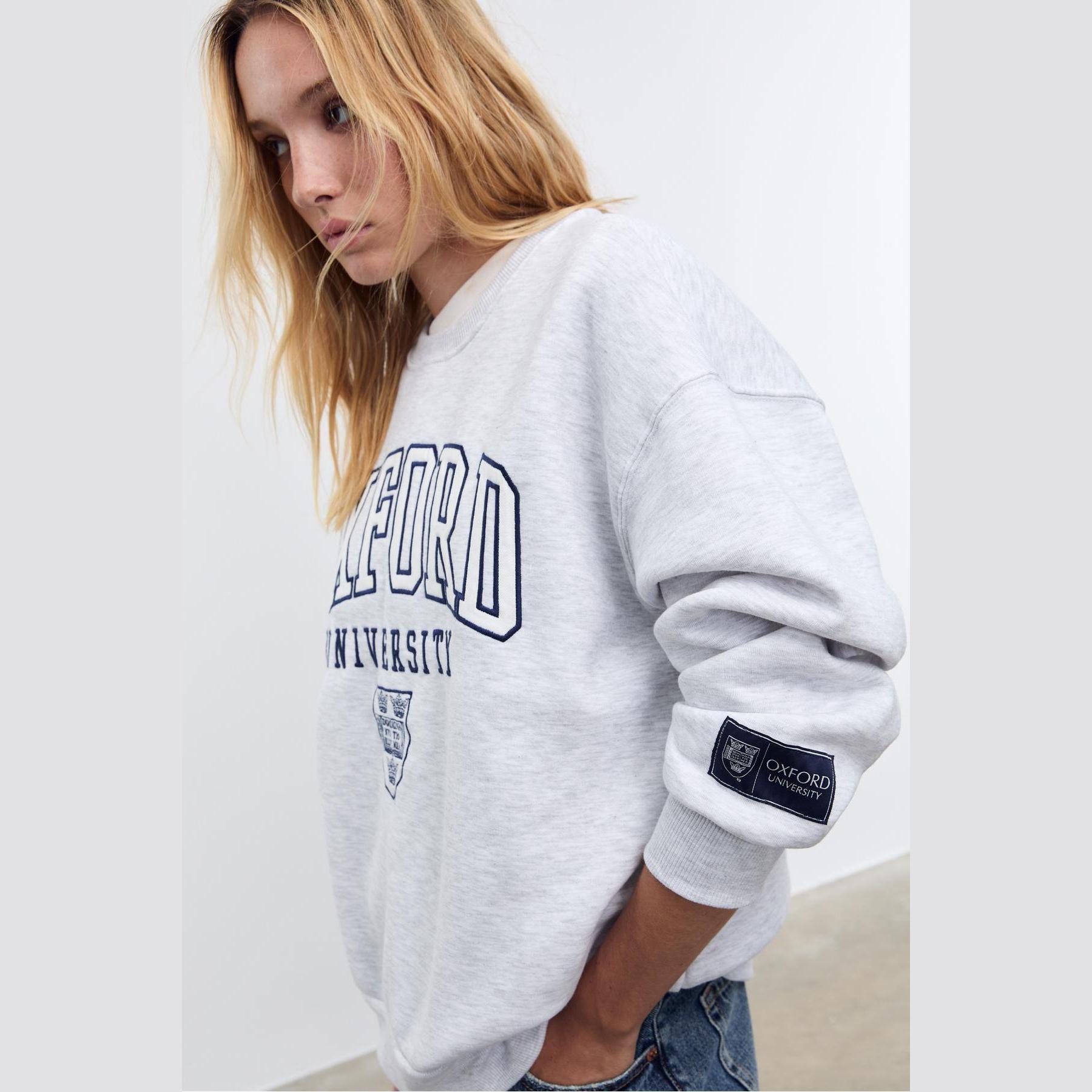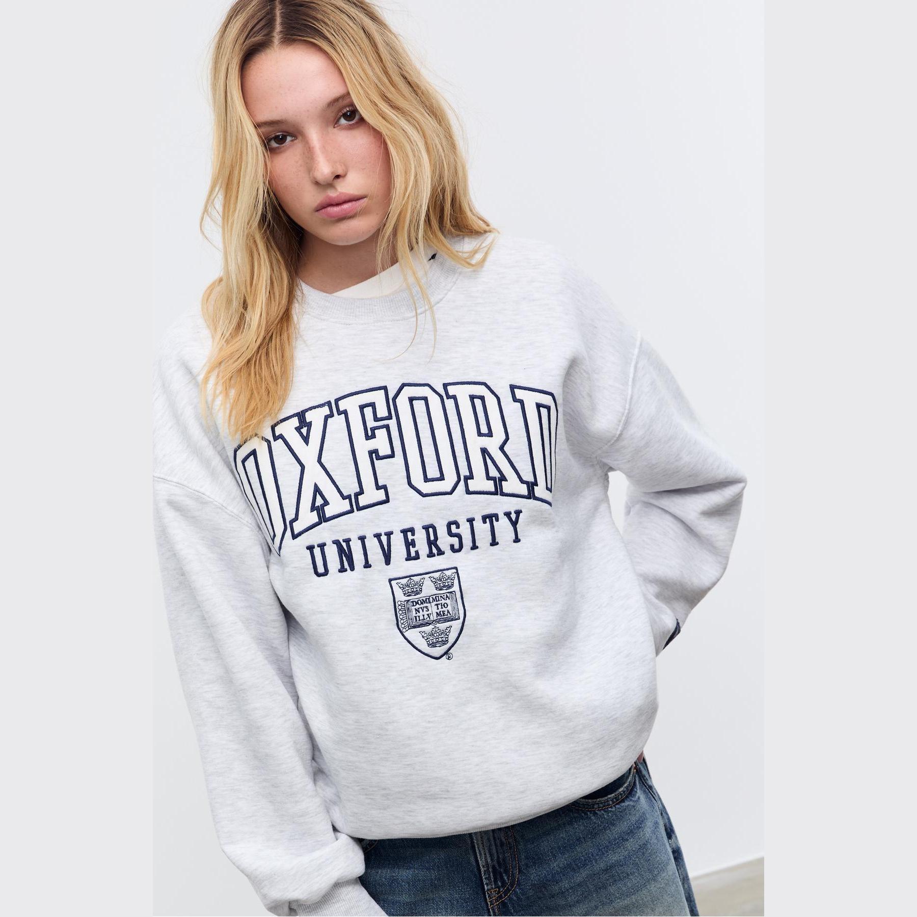سويت شيرت مطرّز بفتحة رقبة دائرية – رمادي فاتح من Stradivarius
