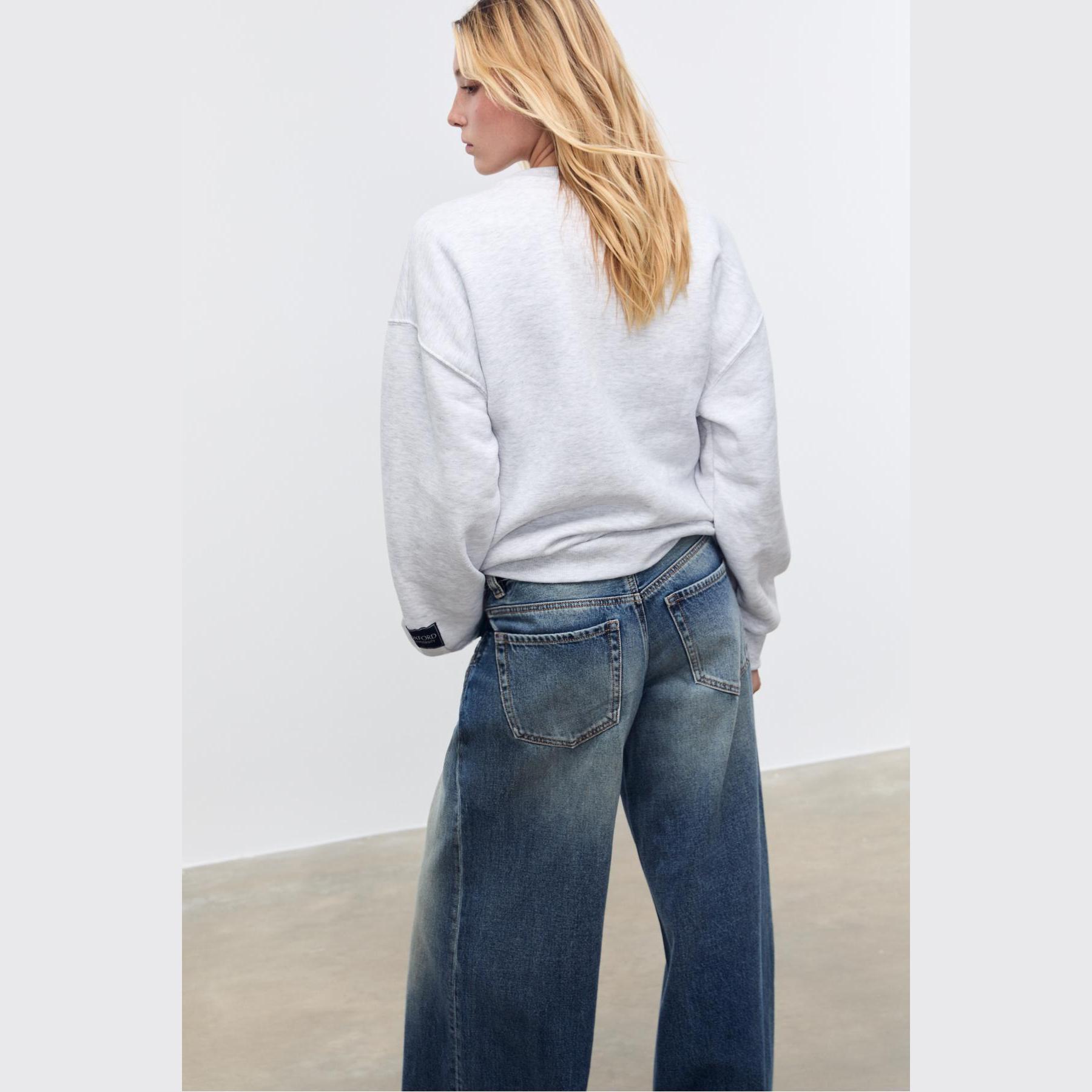 سويت شيرت عملي من Stradivarius بلون رمادي فاتح، مصنوع من خامة ناعمة بتركيبة 70% بوليستر، 30% قطن، يتميز بقصة Regular مريحة وفتحة رقبة دائرية (Bisiklet Yaka)، أكمام طويلة، أطراف وأساور Ribana مرنة، تصميم مطرّز على الجهة الأمامية مع شارة على الكم، ملمس داخلي ناعم، مزود بجيبين جانبيين، مثالي للتنسيق مع جينز أو ليغينغ لإطلالة كاجوال حضرية.