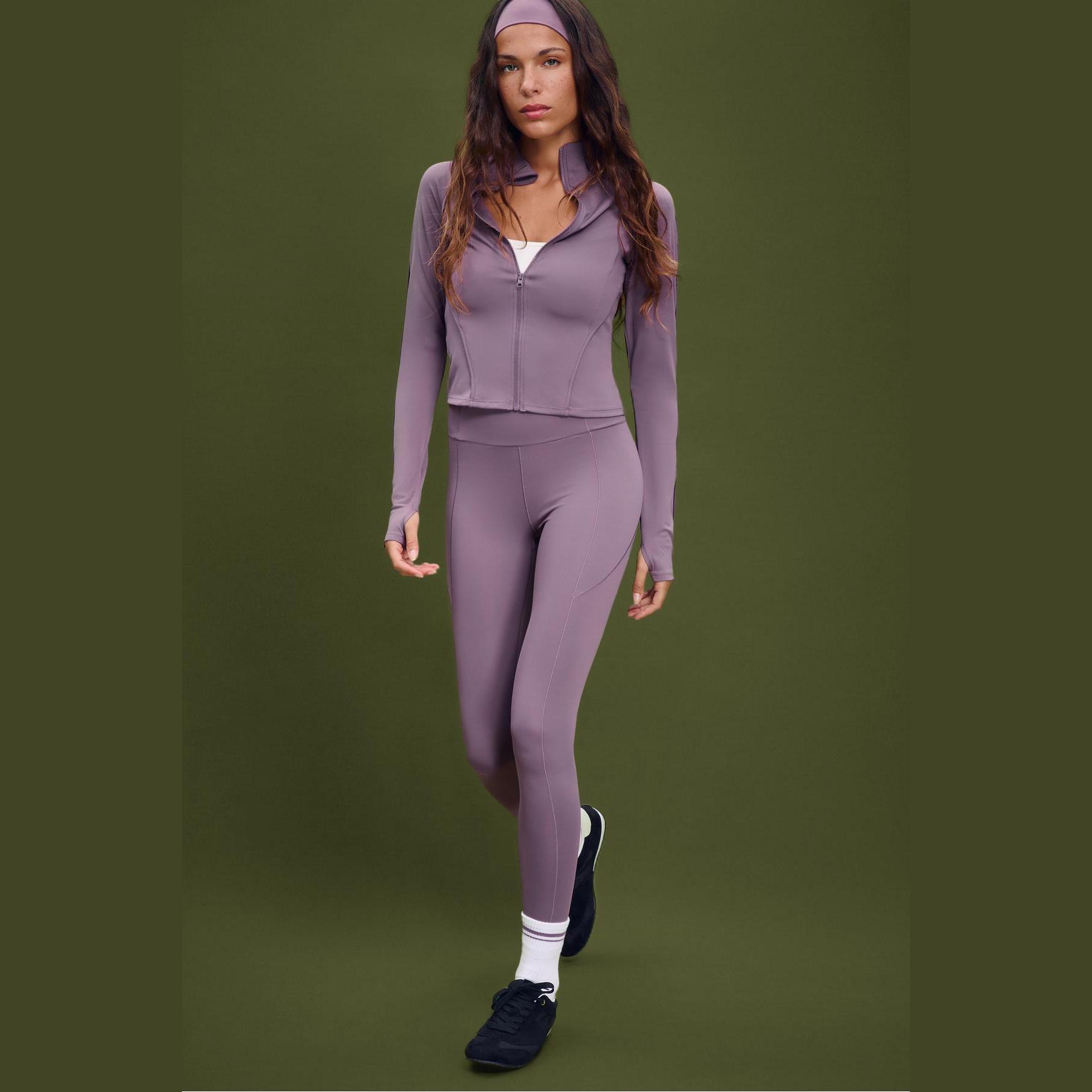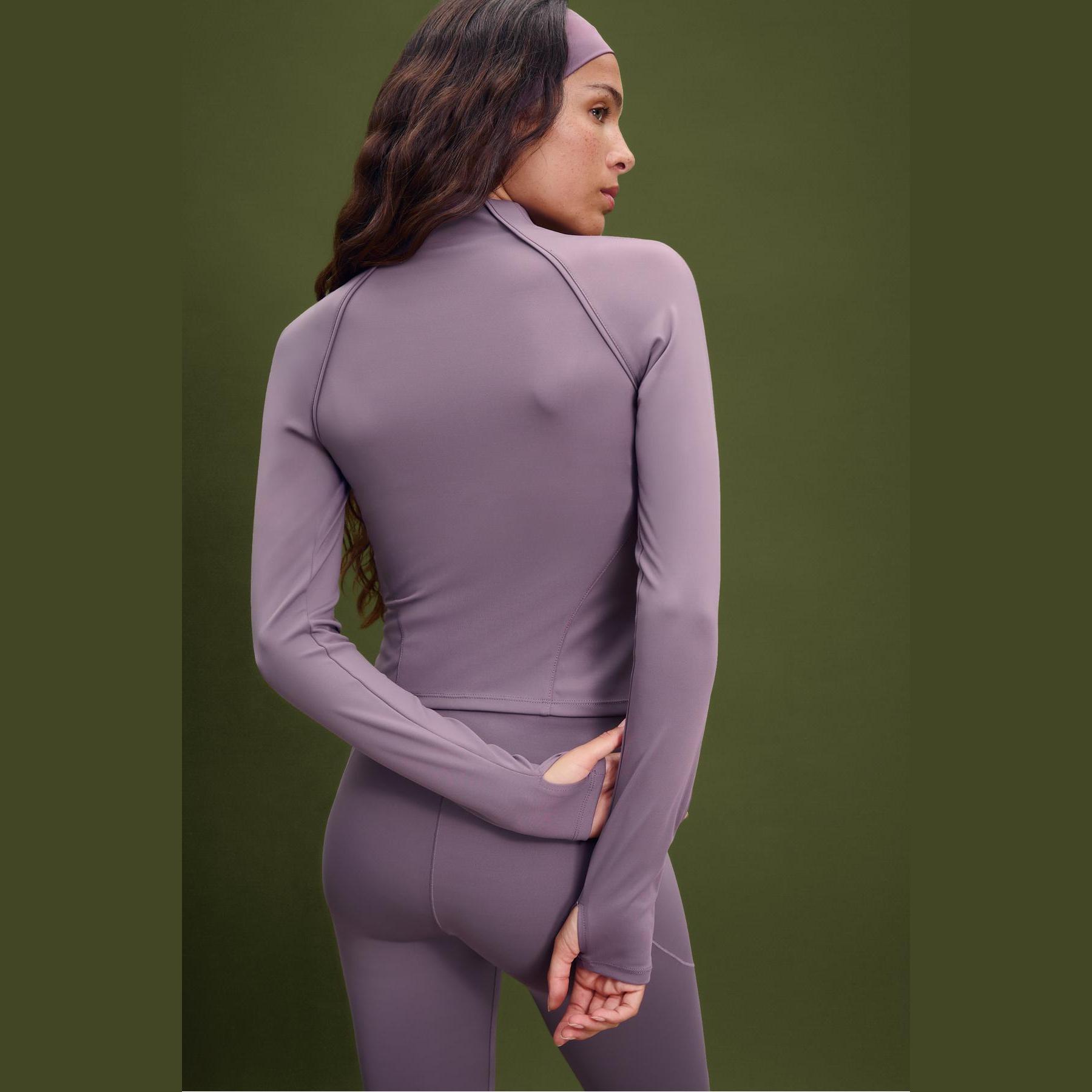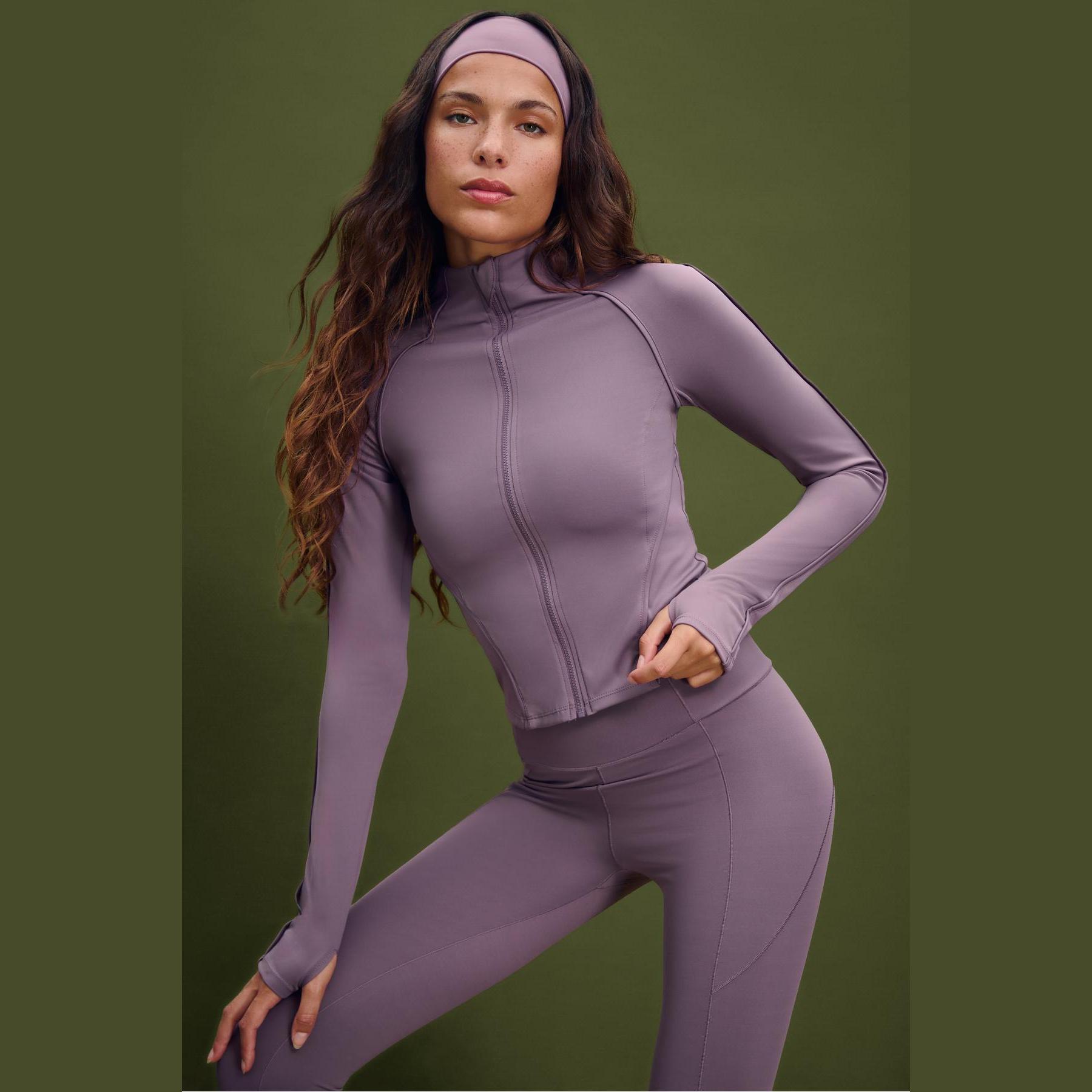 جاكيت عملي من Stradivarius بلون بنفسجي، مصنوع من خامة مرنة بتركيبة 78% بوليستر، 22% إيلاستان، يتميز بقصة ضيقة Slim Fit، ياقة دائرية، أكمام طويلة مزودة بفتحة لإدخال الإبهام، إغلاق أمامي بسحاب كامل، تصميم سادة بملمس ناعم، بدون بطانة، ملمس داخلي مريح، مثالي للتنسيق مع قطع رياضية أو كاجوال.